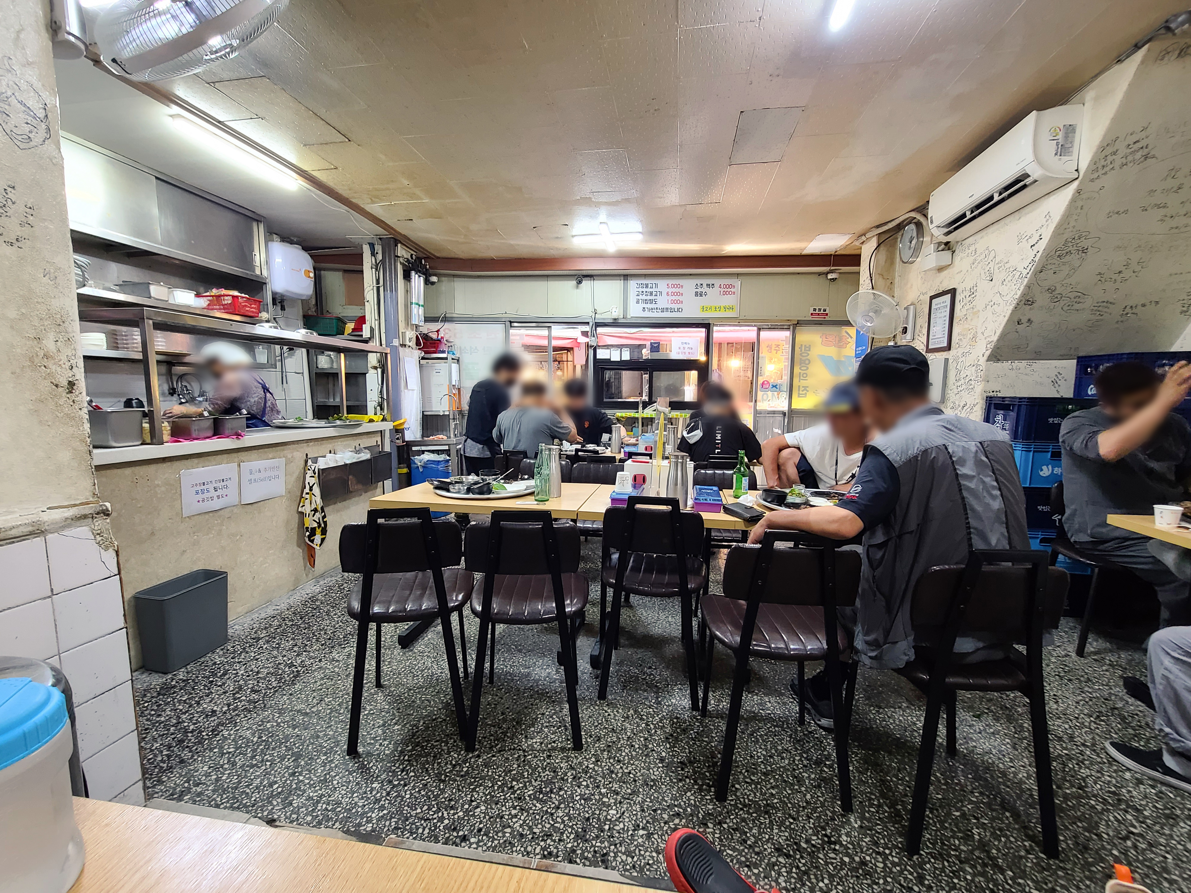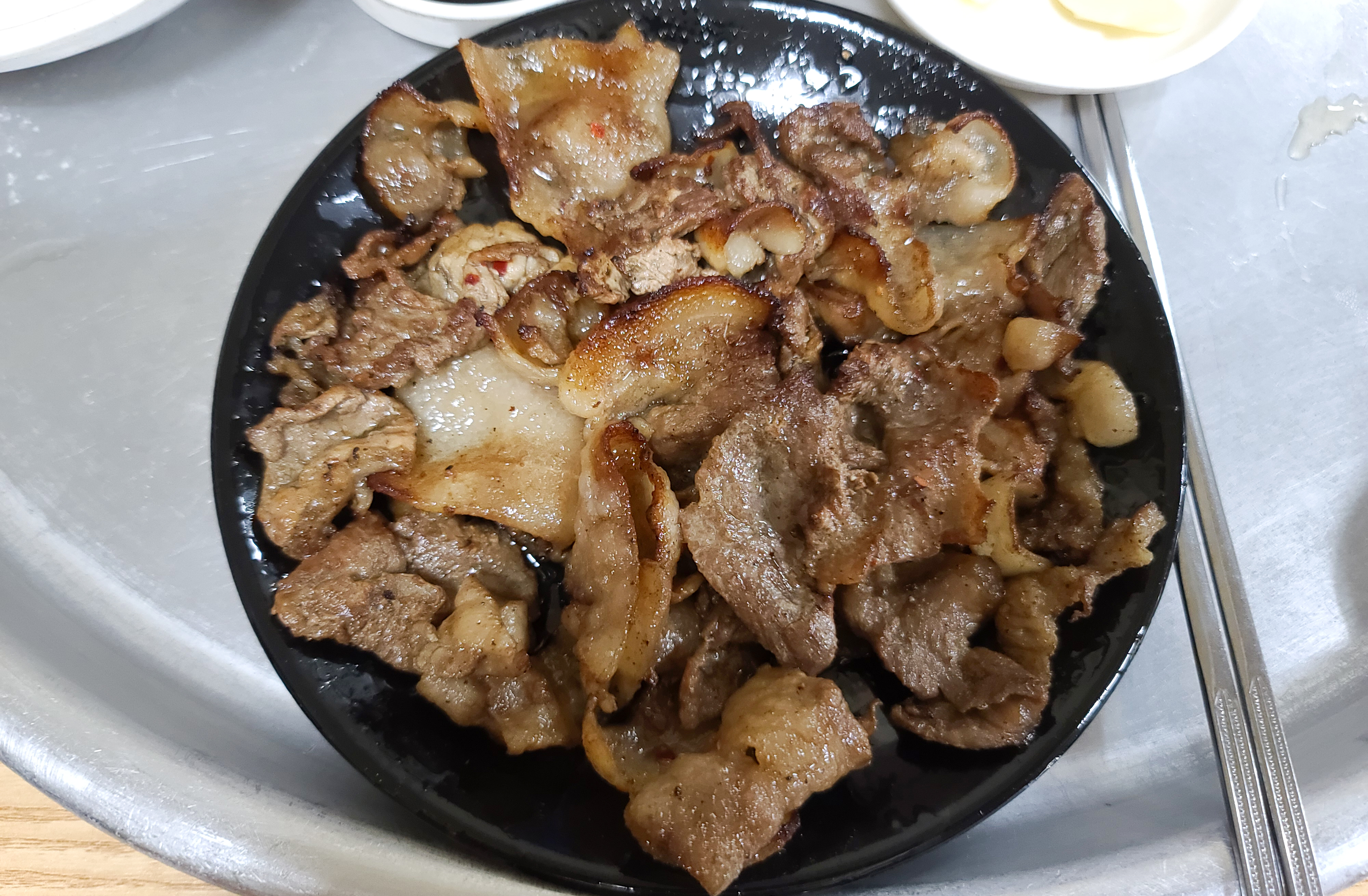 칠성시장 단골식당 내부는 위와 같이 생겼습니다. 낡고 허름한 시장 내 음식점이었는데, 유명세 때문인지 가게 안은 손님들로 북적였습니다. 제 주변에는 휴대폰을 들고 방송하면서 식사하는 크리에이터도 있더라고요.(ㅋㅋ) 가게의 메뉴는 간장불고기, 고추장불고기가 전부였고, 간장불고기 세트라는 메뉴로 6,000원 메뉴가 있었습니다. 저는 간장불고기 세트와 고추장불고기를 별도로 주문해서 먹었습니다. (1인분 식사금액이 6,000원이라니 가격이 참 착하죠??)