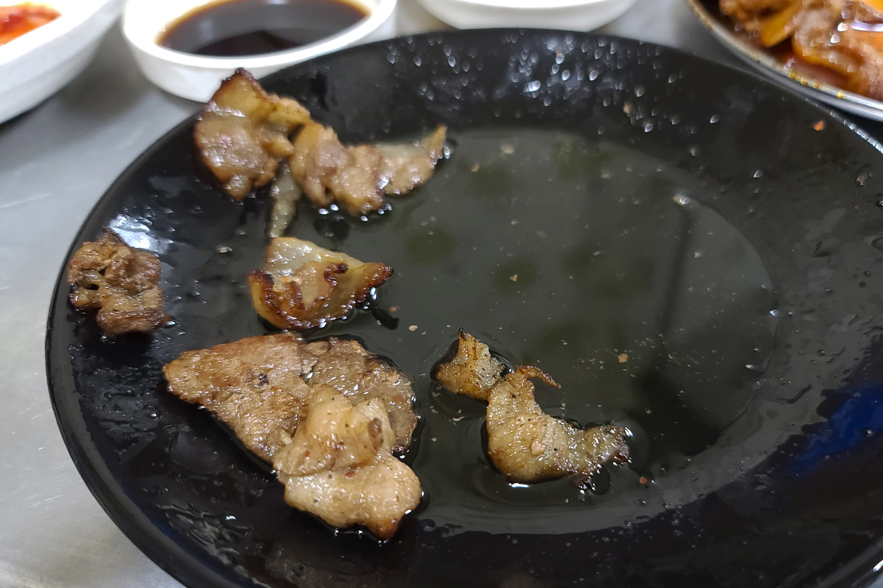 혼자서 두 접시를 비우고 나니 배가 꽤 불러오더라고요. 단골식당의 간장불고기세트와 고추장불고기의 총 금액은 12,000원이 나왔고, 나름 배부르게 맛있게 먹고 나왔습니다. 가격도 부담스럽지 않았고, 맛도 좋아서 소개해드리고 싶었고, 다만 불고기 다 먹을 즈음 접시 바닥에 기름이 많아서 고기가 느끼할 수 있다는 게 조금 아쉬운 부분이었습니다.