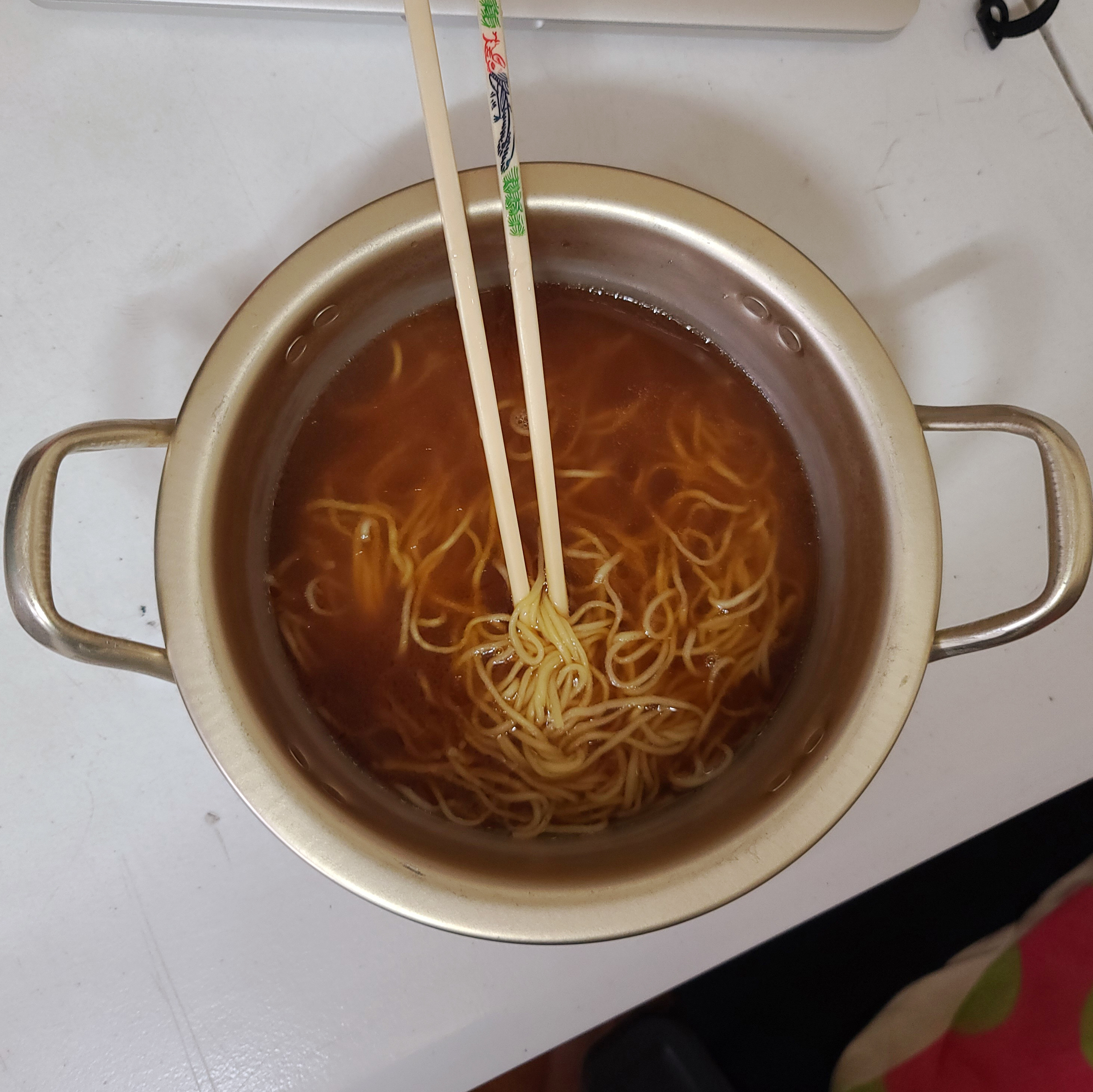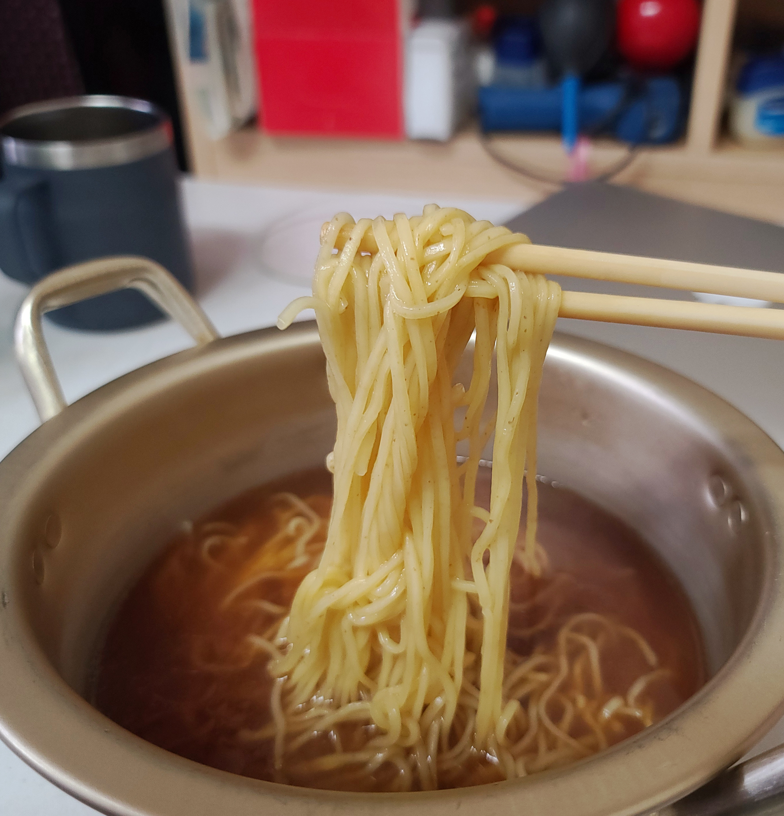 한국 라면은 면의 모습이 꼬불꼬불한 게 특징인데, 일본 라멘은 면이 구불거리지 않고 딱 떨어지는 모습을 하고 있었습니다. 이제 조리한 면을 방으로 가져와서 먹어봐야겠죠?
