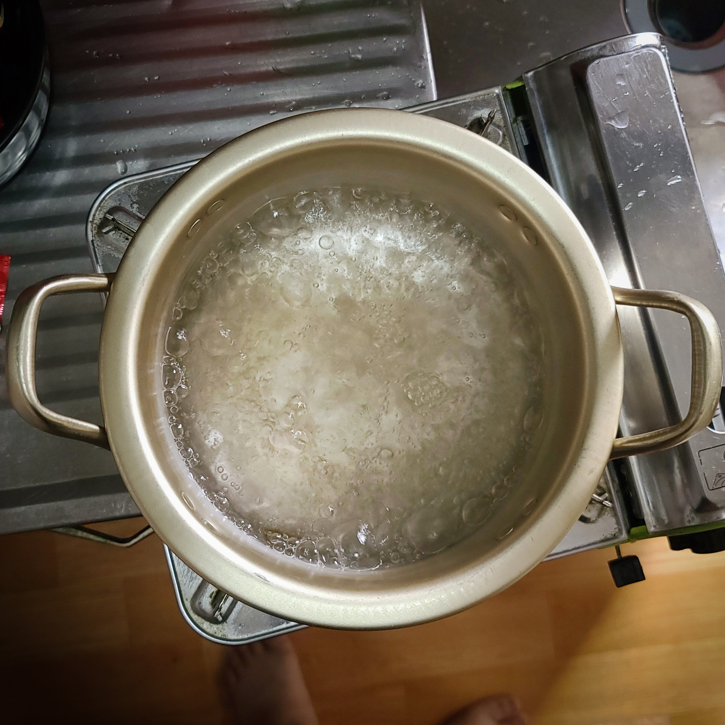 봉지로 된 닛신 라오 쇼유라멘의 구성은 단순했습니다. 면과 액상 수프 딱 두 가지가 들어있었습니다. 일본 라멘의 면은 한국 라면과 조금 다르게 생겼더라고요. 약간 생면 같은 느낌이랄까요? 이제 라면을 끓이기 위해 물을 올려주었고, 불을 켜서 물을 끓이기 시작했습니다.