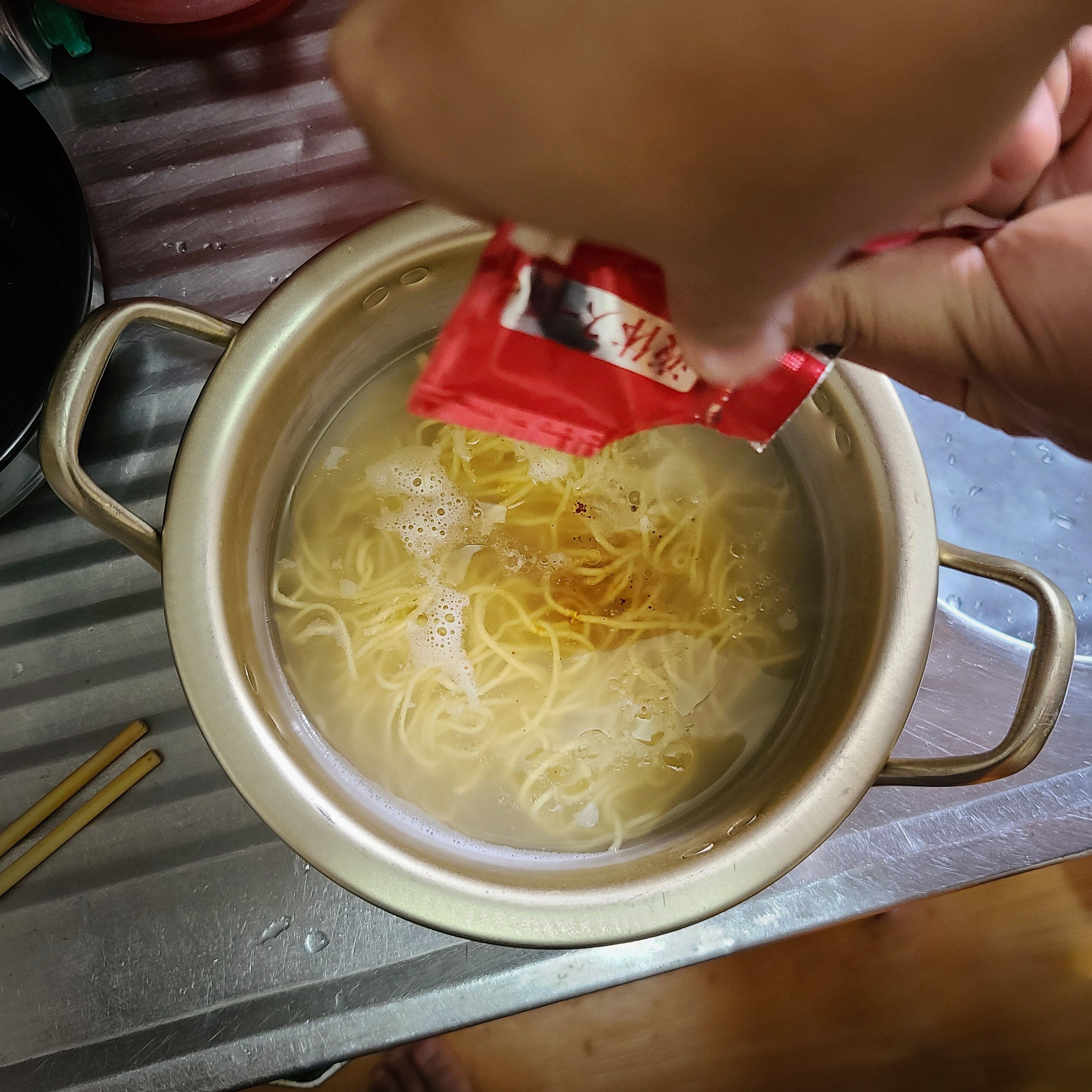 라면 물이 끓으면 면을 넣고 약 3분간 보글보글 끓여줍니다. 앞서 말씀드린 것처럼 면은 일본 라멘집에서 보는 것 같은 풀어지는 생면 느낌의 면이었습니다.