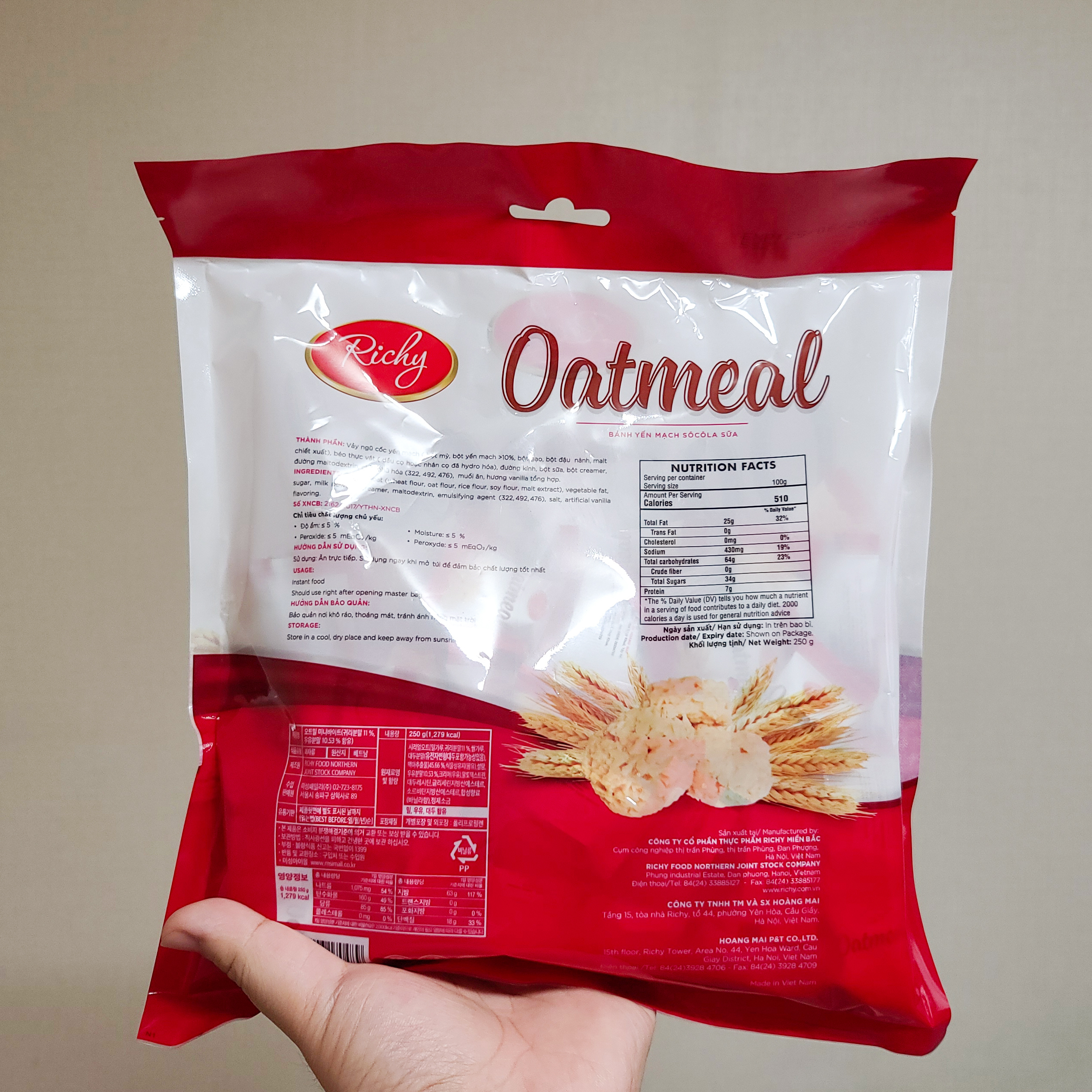 제가 구입한 리치 오트밀 미니바이트는 250g 짜리였으며, 한 봉지에 꽤 많은 양의 오트밀 미니 바이트가 들어있었습니다. 인터넷에서 '다이어트 간식', '인간사료' 등으로 알려지면서 코스트코나 트레이더스에서 1kg 단위로 구입해서 드시는 분들도 계신 것 같더라고요.