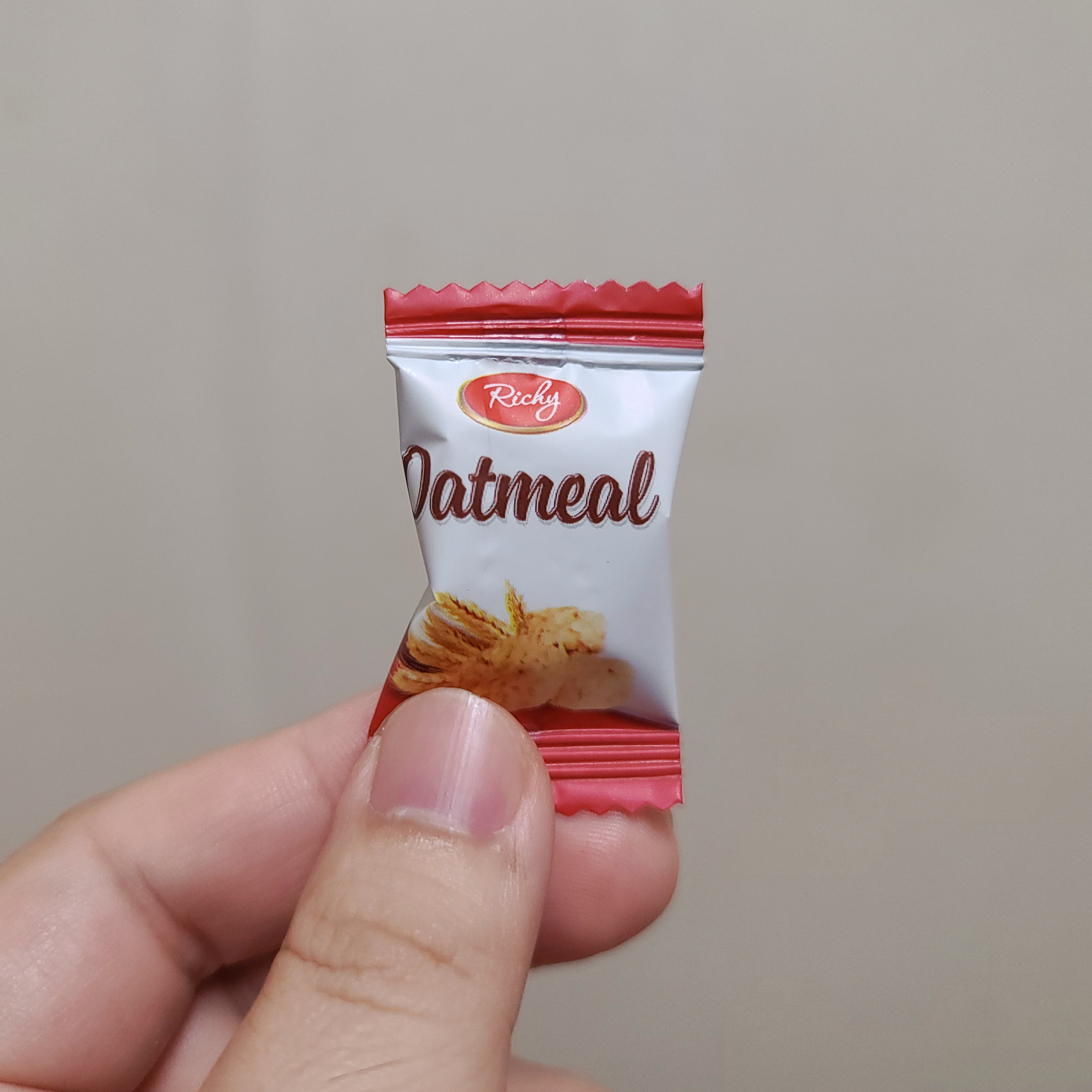 리치 오트밀 미니바이트의 모습은 이렇게 생겼습니다. 캔디처럼 낱개로 포장되어 있어서 간편하게 먹기 좋았고, 제품 겉면에는 오트밀 미니바이트의 모습이 그려 있었습니다. 한 번 먹을때 한 줌씩은 먹어줘야죠~(ㅋㅋ)