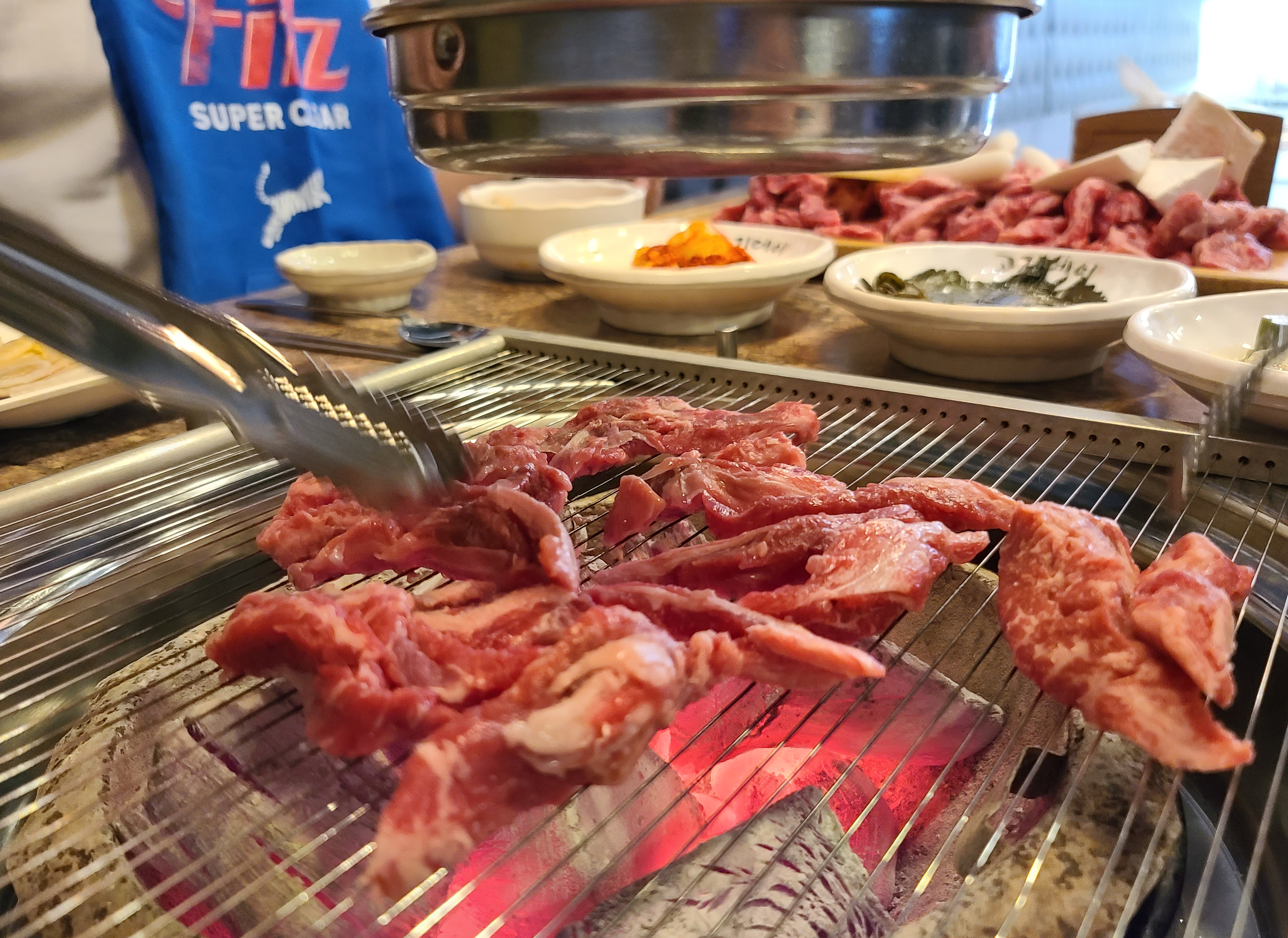잘 달궈진 불판 위에 소고기를 얹어 굽기 시작했습니다. USA Choice 등급의 소고기를 사용하는 고기데이는 양념을 안 한 갈빗살을 구워도 충분히 맛있었습니다. 또, 한우에 비하면 합리적인 가격에 소고기를 양껏 먹을 수 있는 것도 만족스러웠습니다.