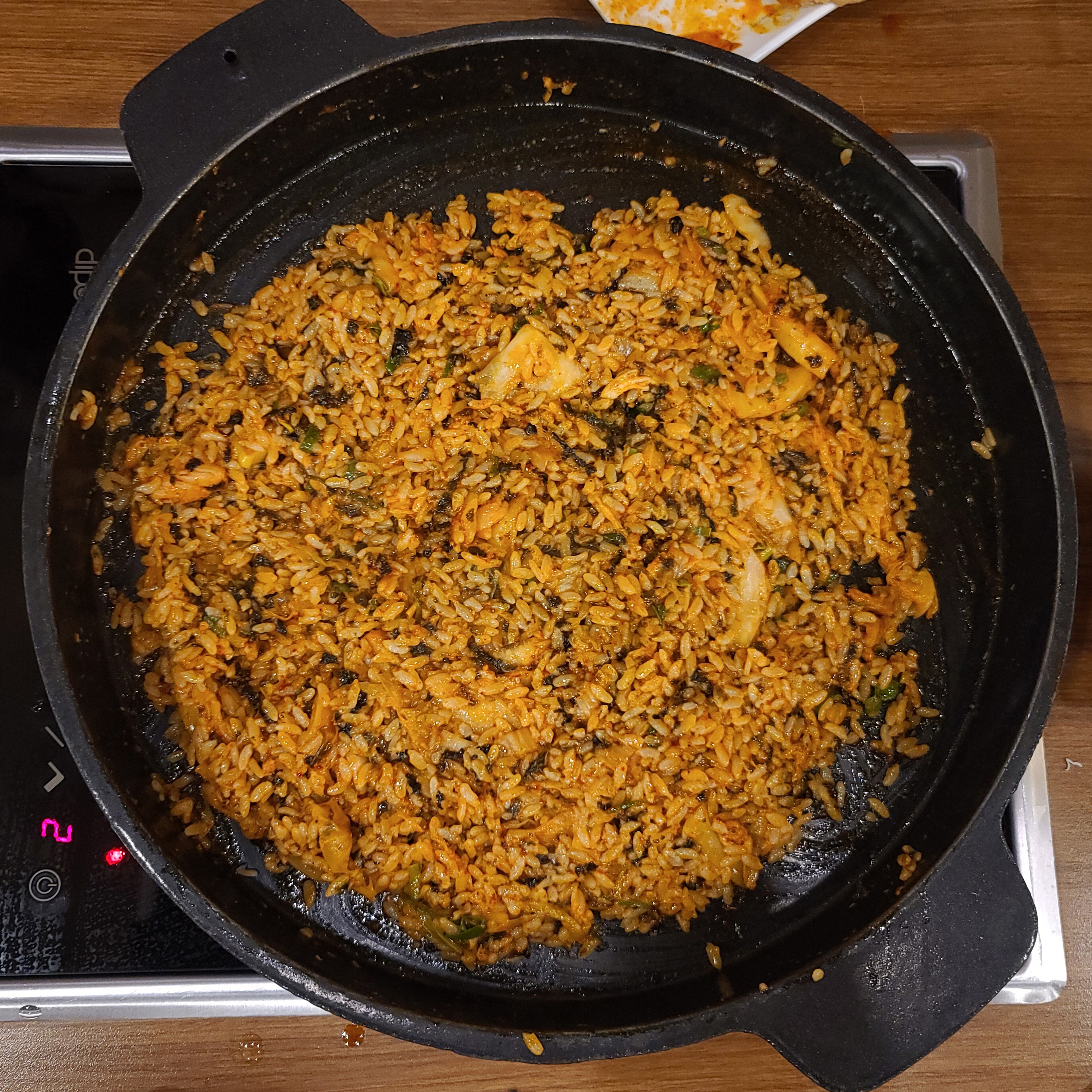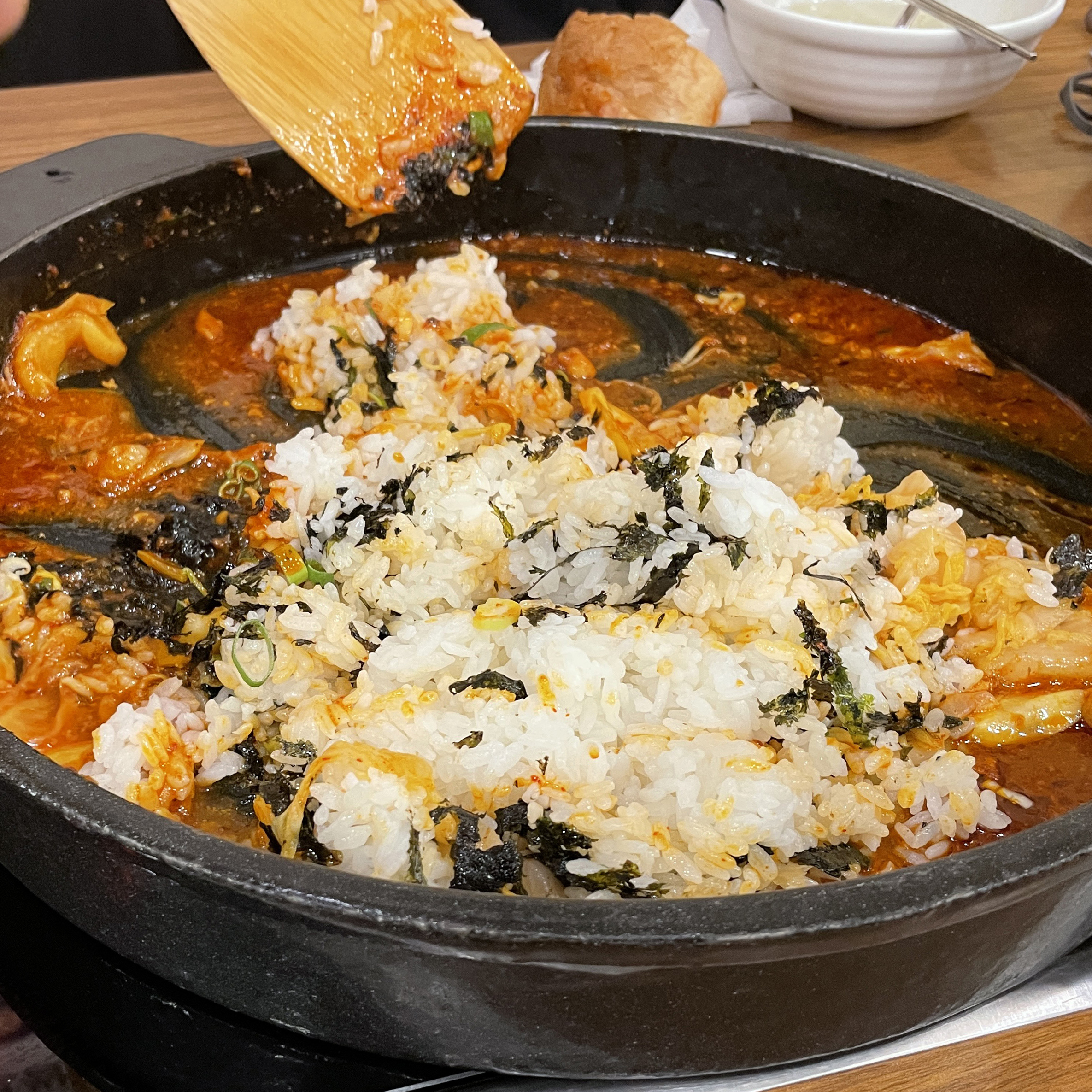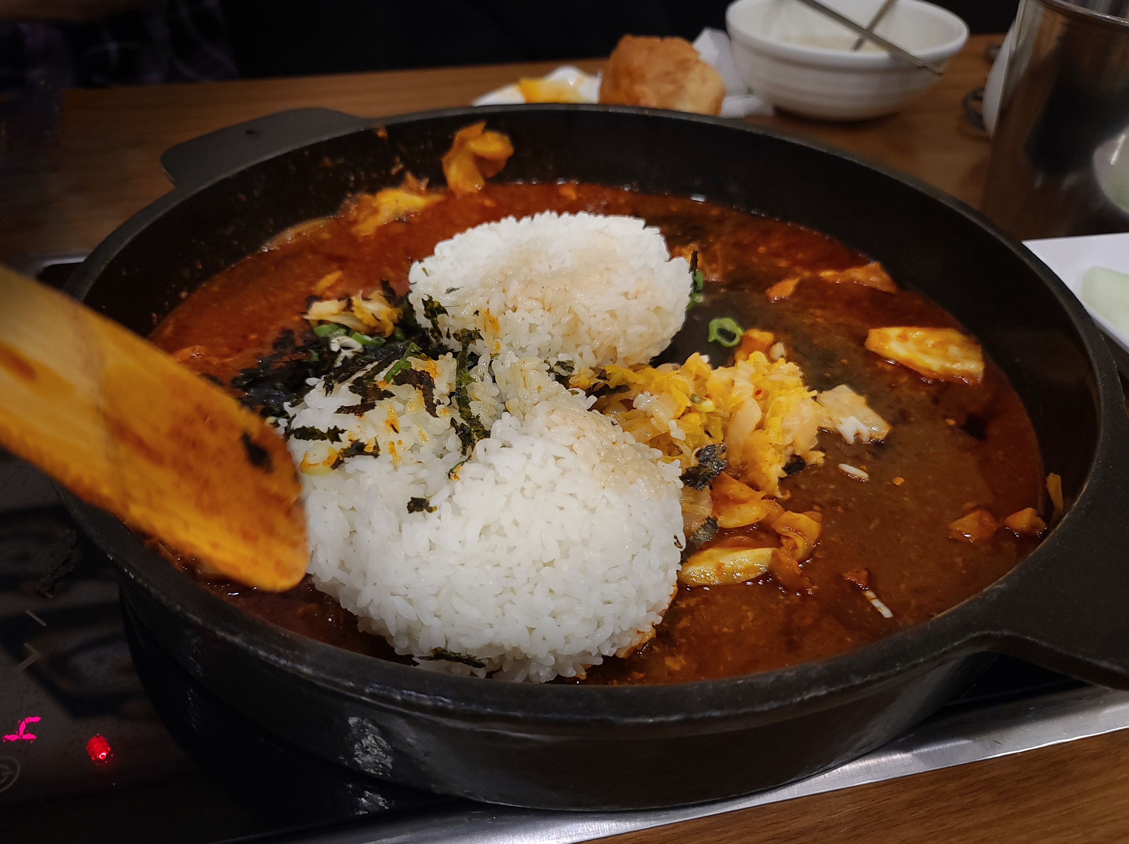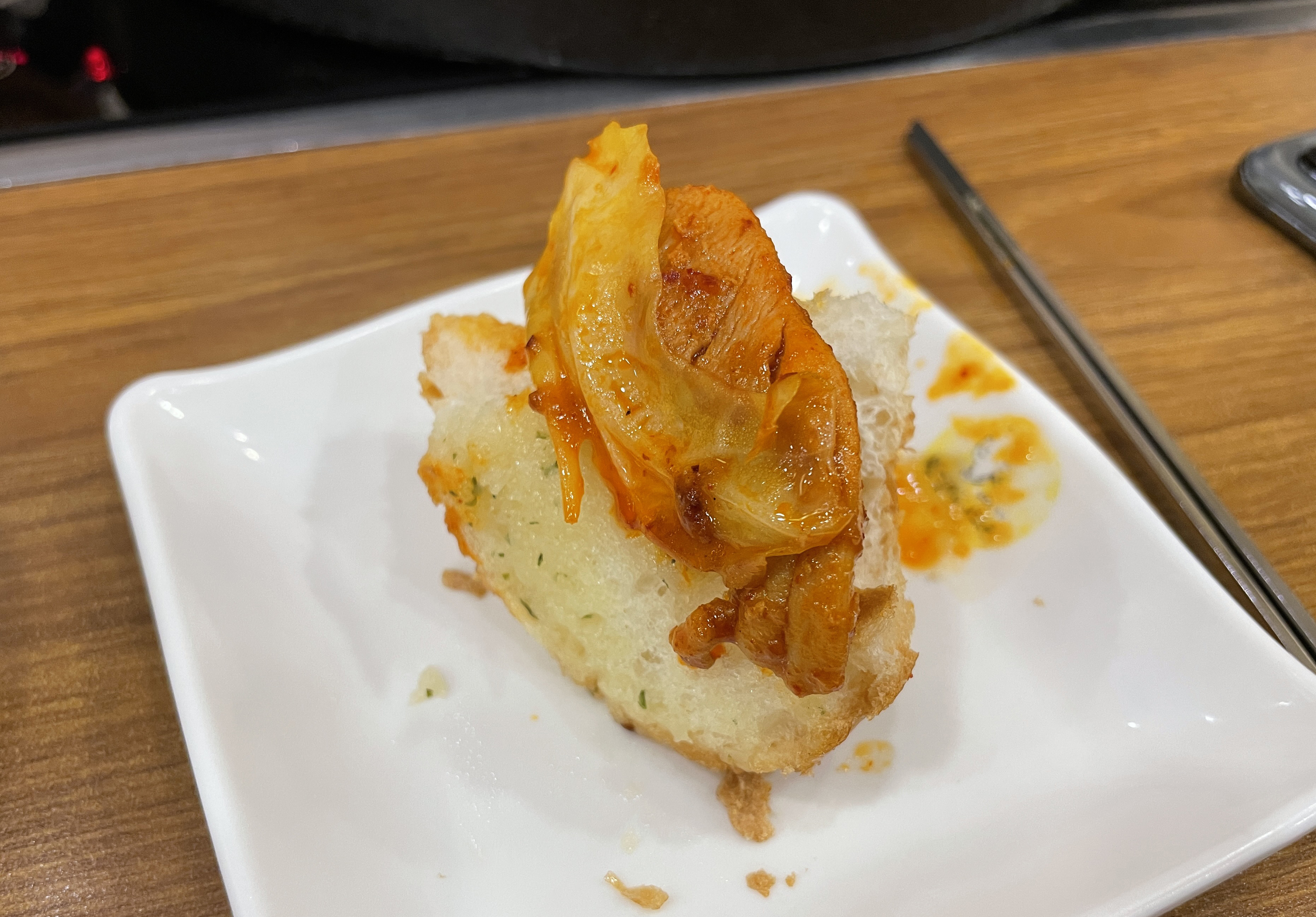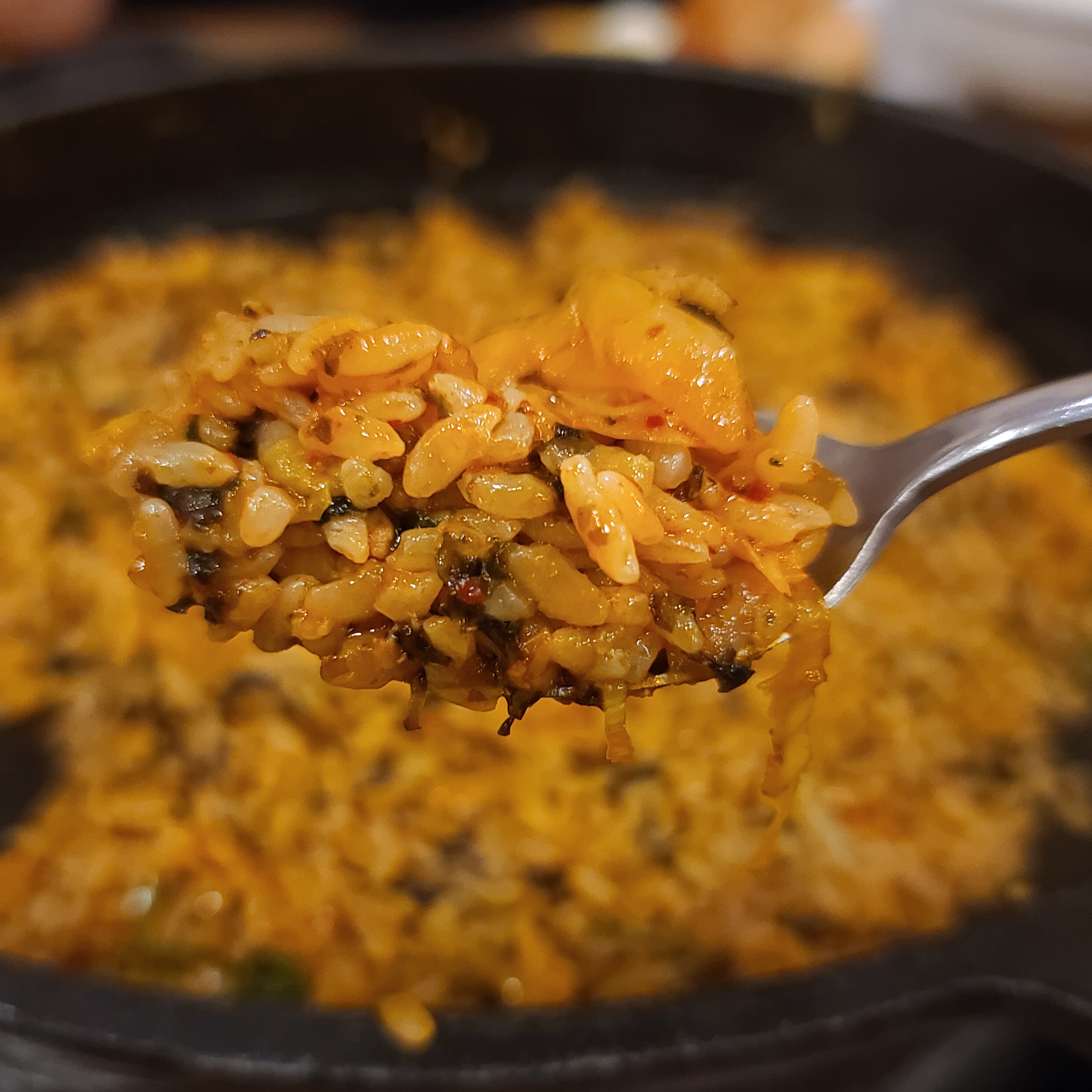 박가부대의 닭갈비는 아쉽지만 제가 좋아하는 스타일의 닭갈비는 아니었습니다. 왜냐하면 닭갈비의 닭고기가 큼직큼직하게 한 입 크기로 잘려있는 게 아니라 너무 잘게 잘라져서 먹기가 더 불편하더라고요. 그래도 추천하는 방법대로 마늘빵과 함께 곁들여서 먹으니 맛은 괜찮더라고요. 3명이서 식사했기 때문에 3인분의 닭갈비를 주문했는데, 허기져서 그런 건진 몰라도 양이 한참은 부족하더라고요. 그래서 볶음밥도 추가했습니다.