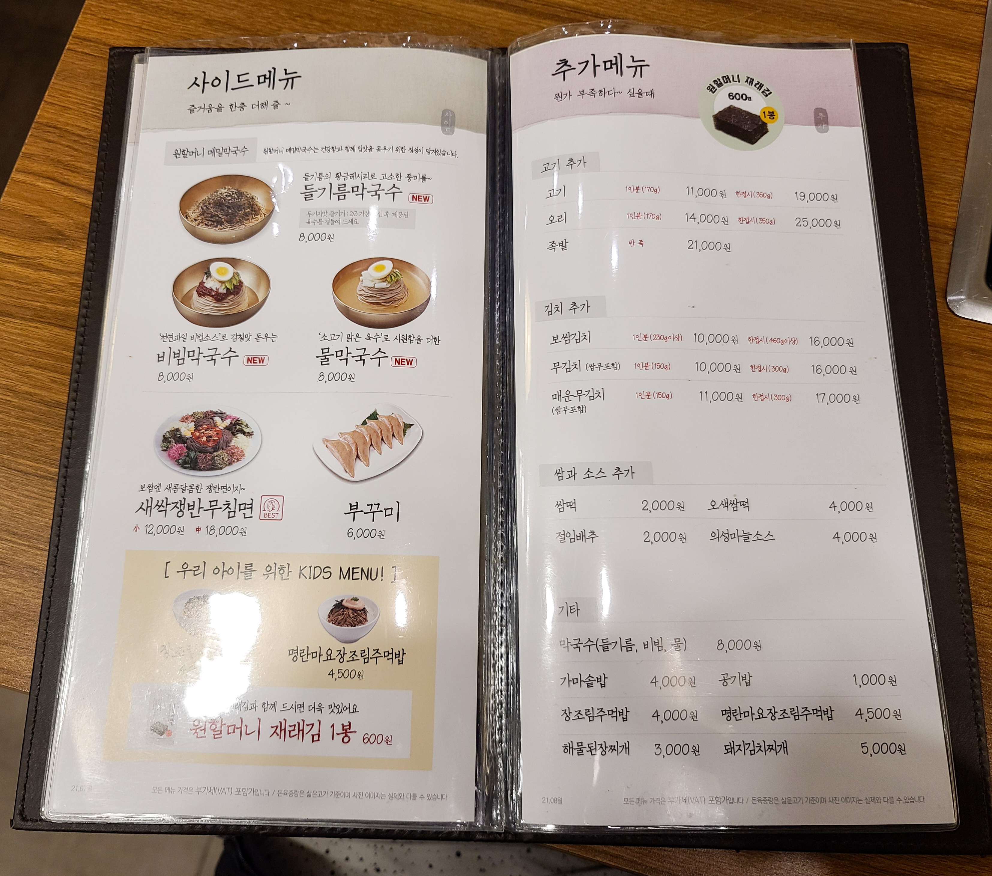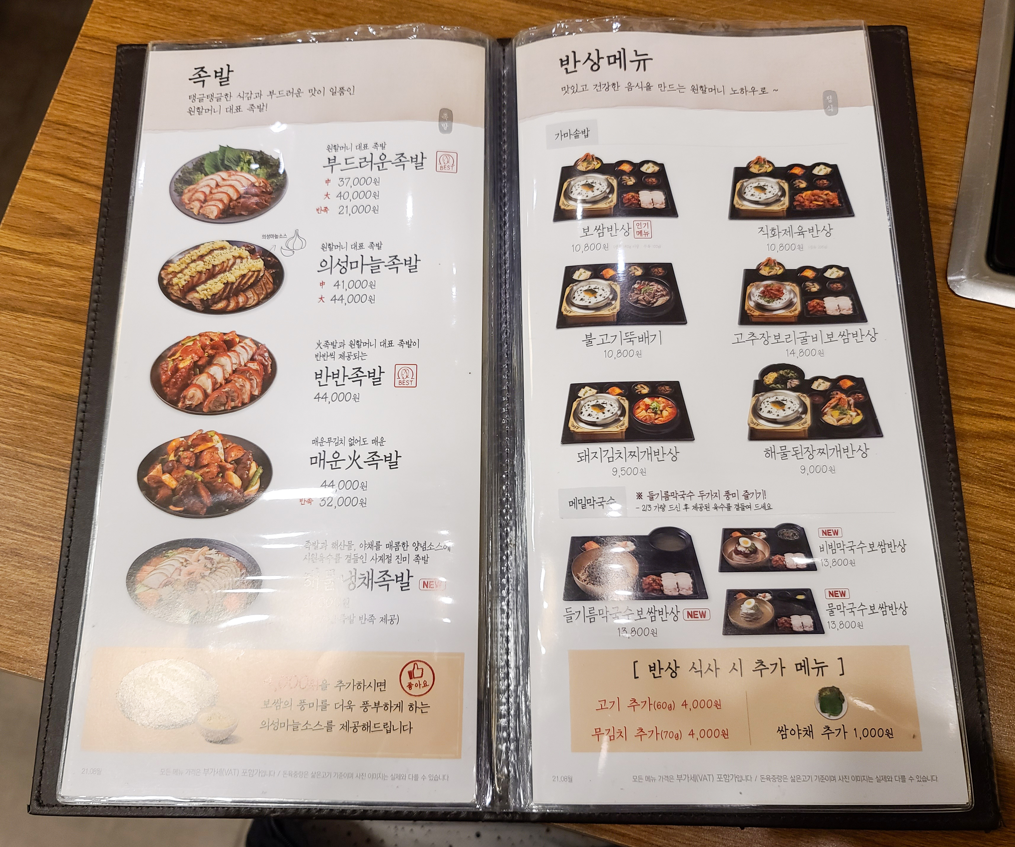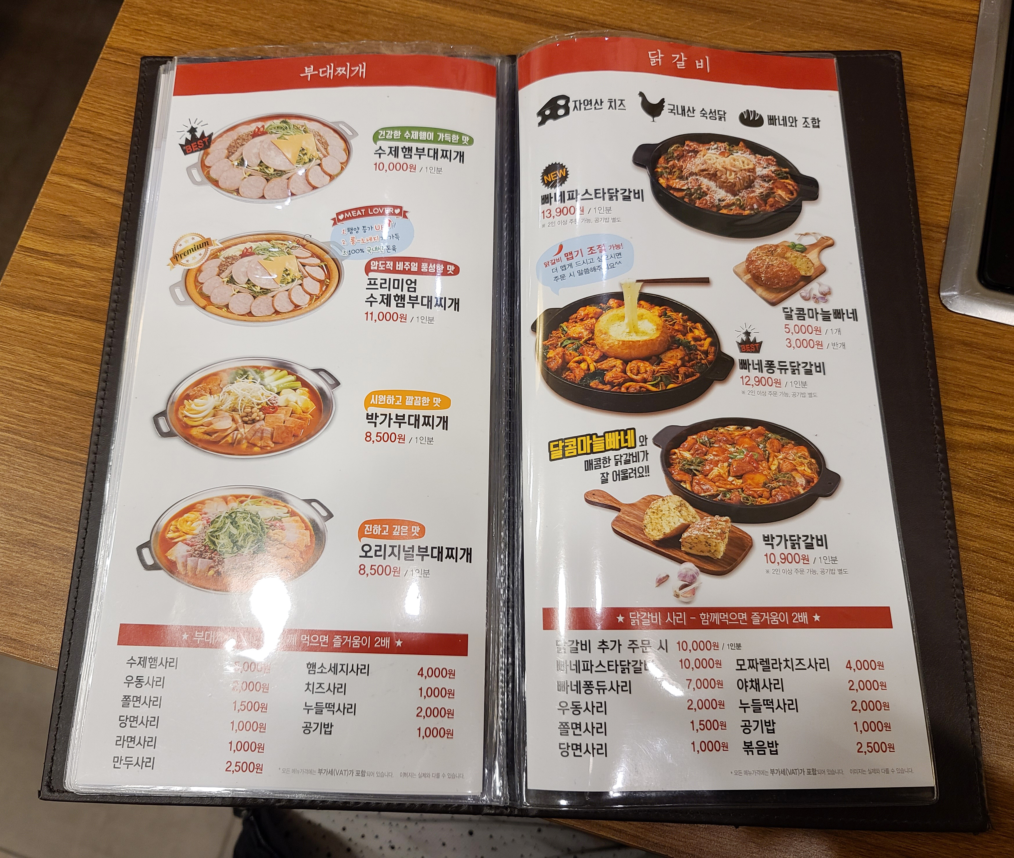 거여동 박가부대・원할머니보쌈 가게의 모습니다. 가게 내부는 깔끔했으며 가족단위 손님들이 많이 찾는 것 같더라고요. 이 가게는 독특하게도 부대찌개, 닭갈비, 족발・ 보쌈까지 판매하는 것 같더라고요. 우선 메뉴를 함께 살펴보시죠.