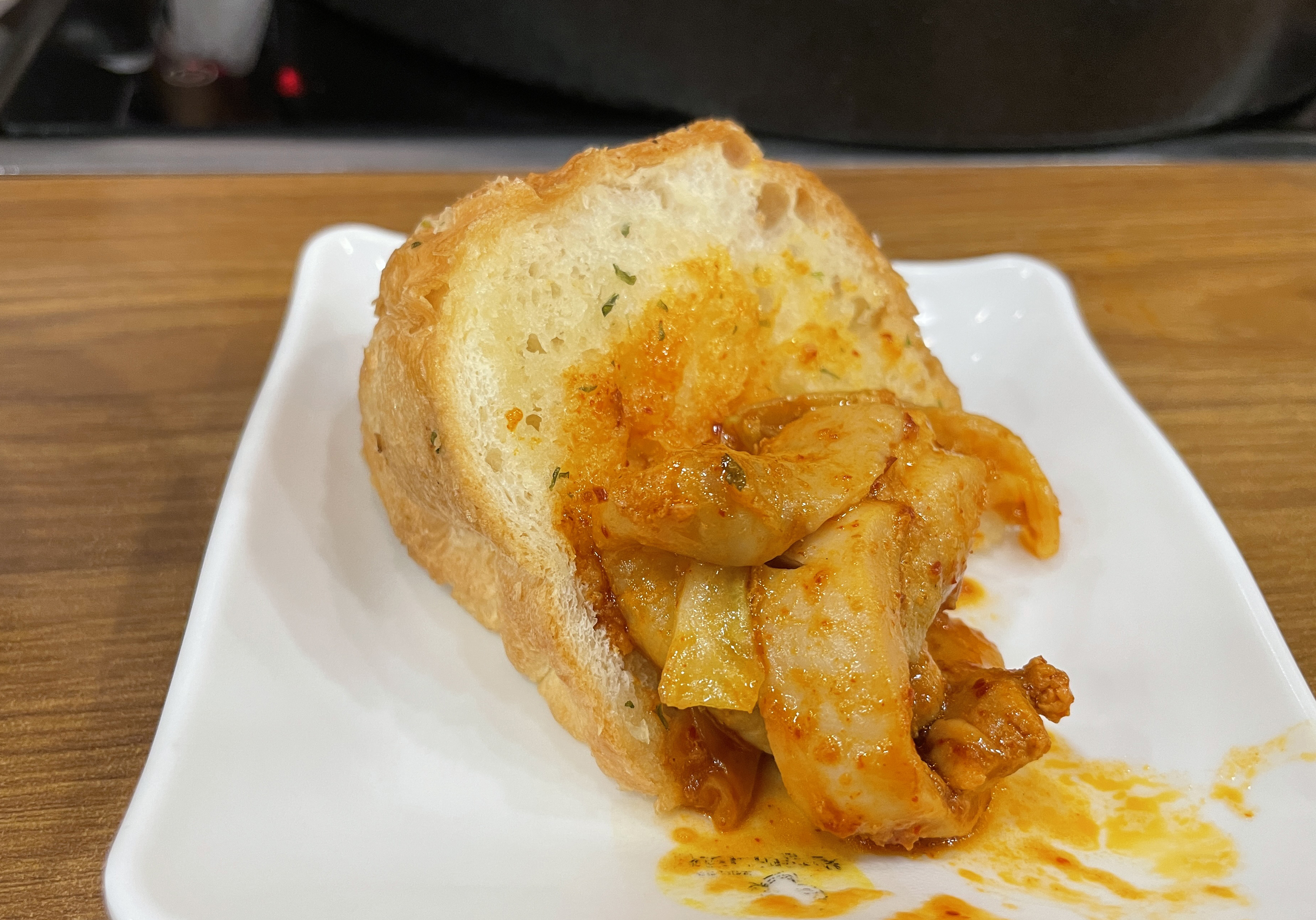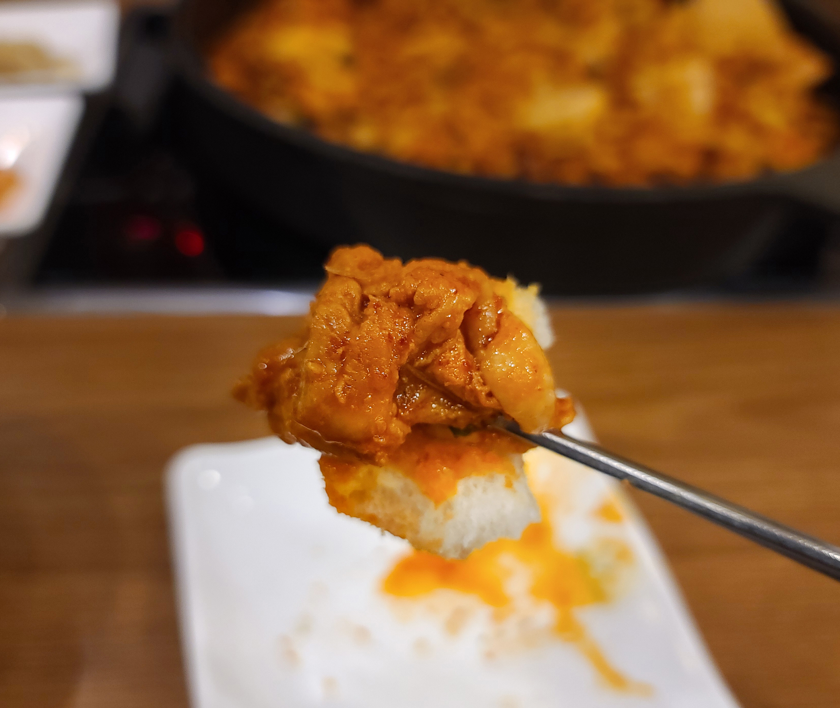 닭갈비는 조리되어 나와서 그런지 시간이 조금 소요되었고, 특이한 게 '달콤마늘빠네'라는 마늘빵과 함께 제공되었습니다. 마늘빵은 갓 구워서 그런지 그냥 먹어도 따뜻하고 맛있더라고요.