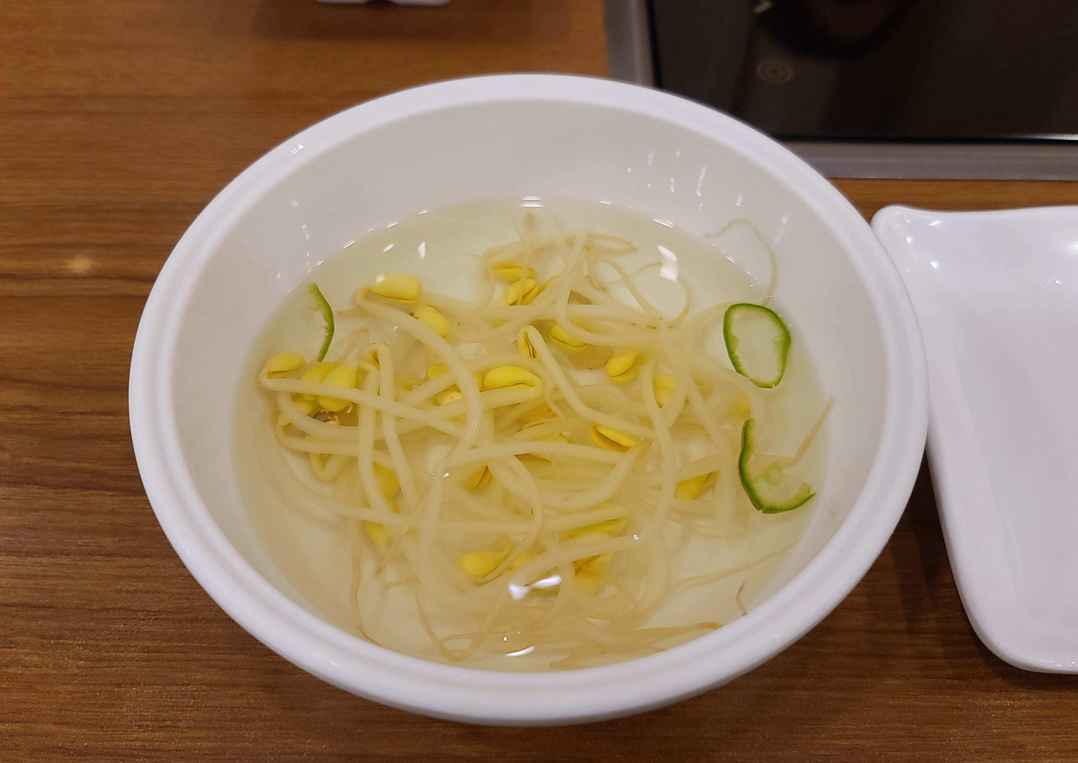 박가부대의 기본 반찬은 위와 같습니다. 콩나물국과 양파장아찌, 쌈무, 양배추샐러드, 배추김치가 있었습니다. 콩나물국은 너무 밍밍해서 그냥 맹물을 마시는 것 같더라고요. 다른 반찬들은 그래도 먹을만했습니다.
