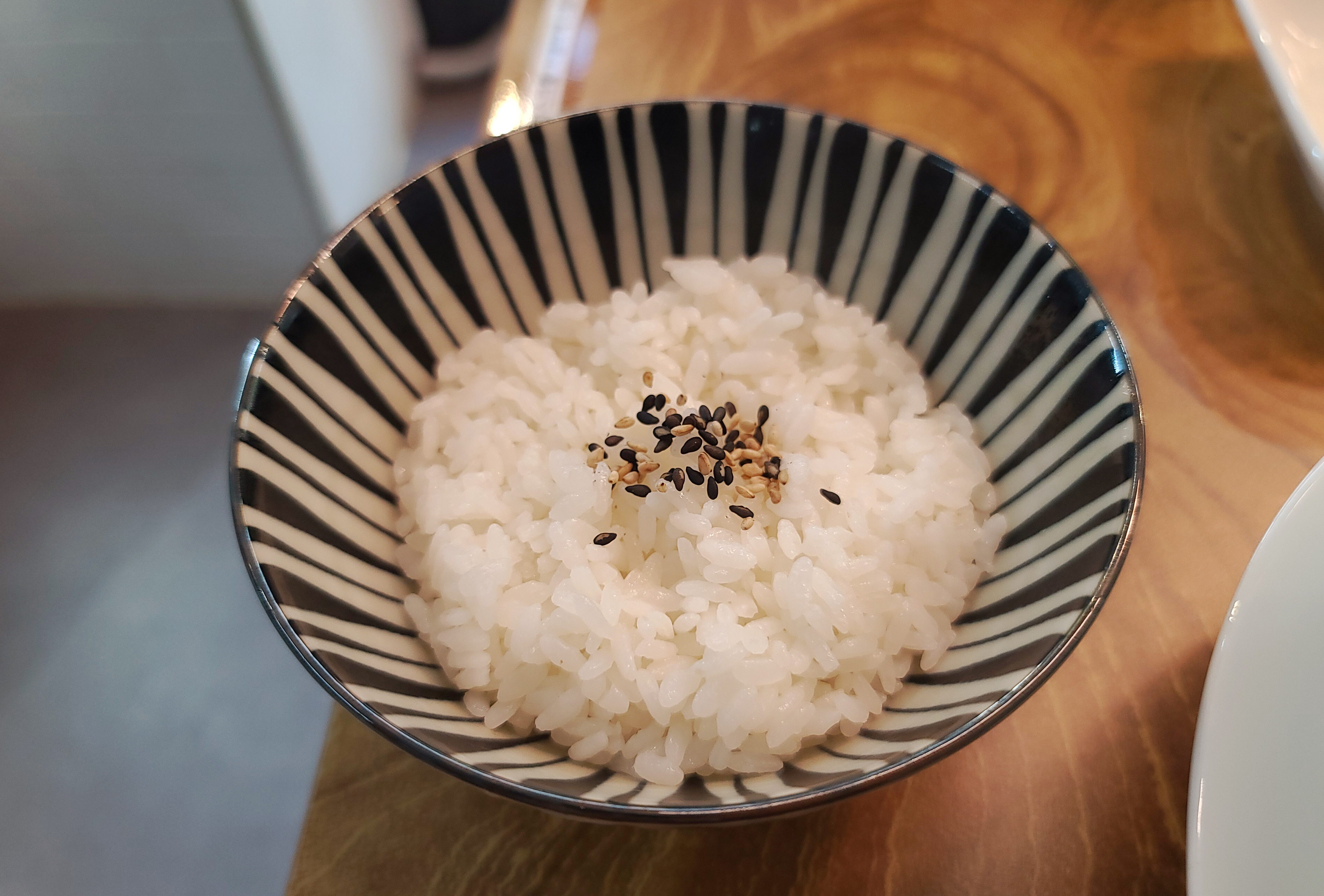 밥은 밥솥에서 그때그때 꺼내어 쓰지 않고 플라스틱 용기에 담아두는 것 같더라고요. 밥이 좀 식었지만 고두밥이라 국물이랑 잘 어울려서 맛있었습니다.