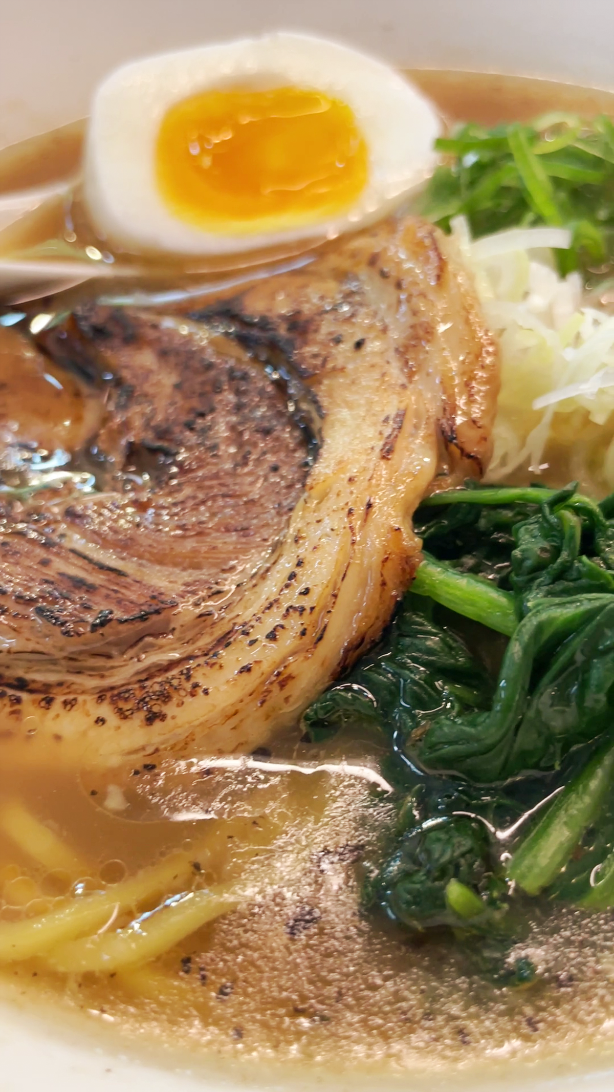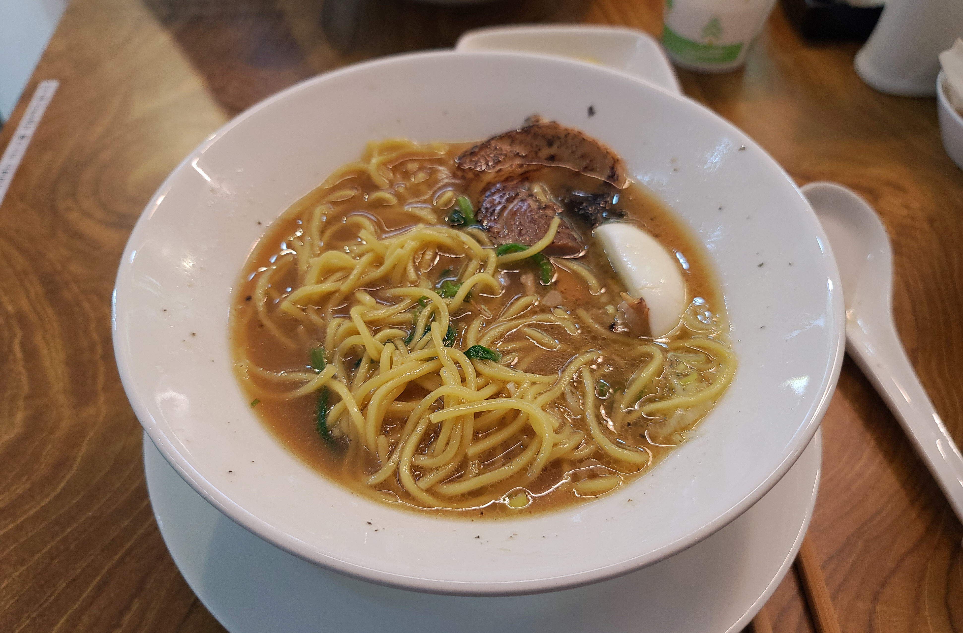 얹다의 더블 수프 블렌딩 라멘은 돈코츠 라멘 수프와 쇼유 소스 그리고 진단 닭 육수까지 블렌딩 한 깊고 진한 국물의 라멘이었습니다. 저는 일본 라멘 하면 걸쭉하다는 느낌이 들 정도로 진한 국물을 좋아하는데 얹다는 제가 좋아하는 맛의 국물을 사용하고 있어 입맛에 맞았습니다. 불맛을 입힌 차슈도 큼직하고 부드러워 맛있었습니다.