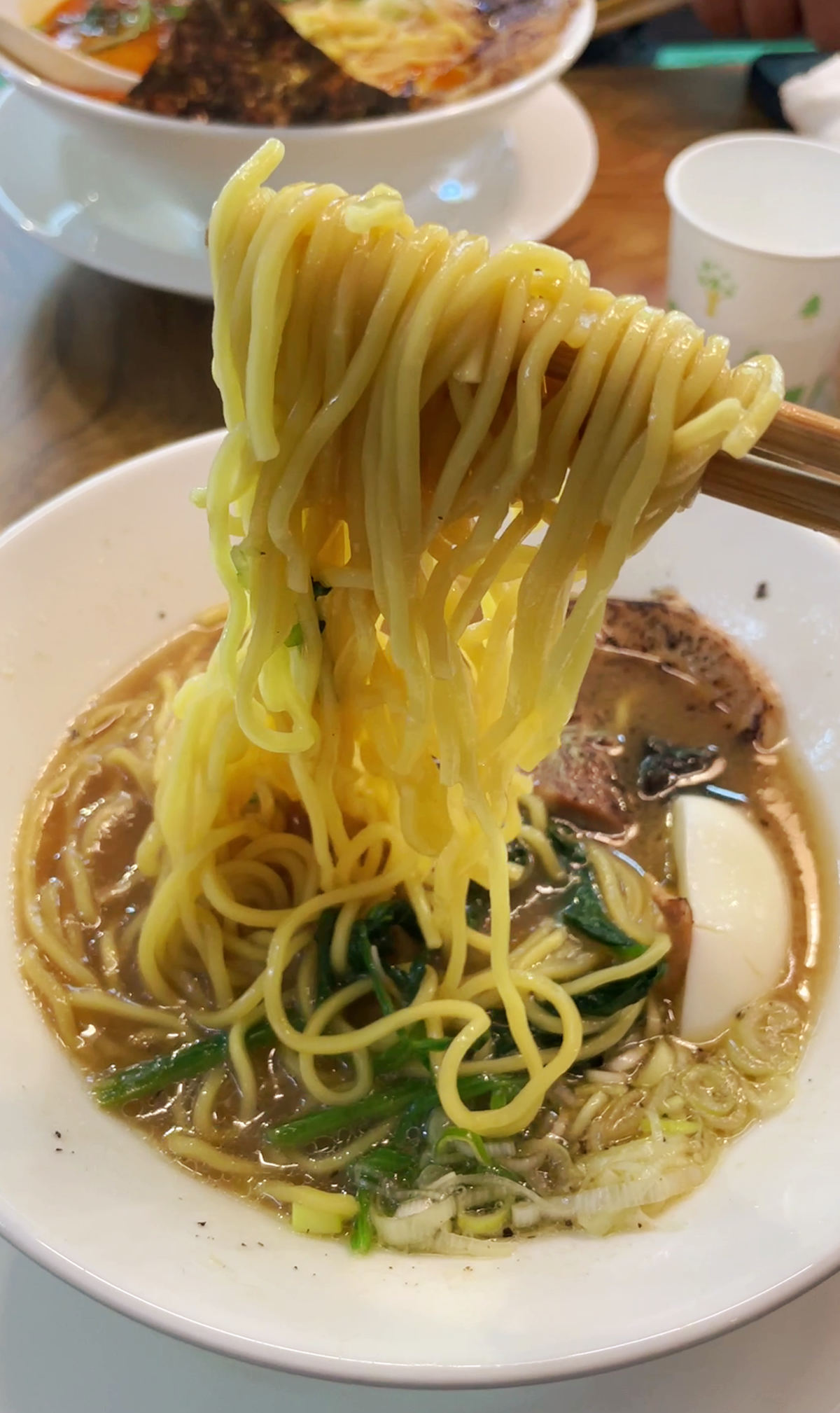 제가 주문한 더블 수프 블렌딩 라멘과 탄탄멘이 나왔습니다. 밥은 사장님한테 말하면 별도의 비용을 받지 않고 서비스로 제공해주고 있었으며, 반찬으로 유자향이 나는 단무지를 직접 담아올 수 있었습니다.