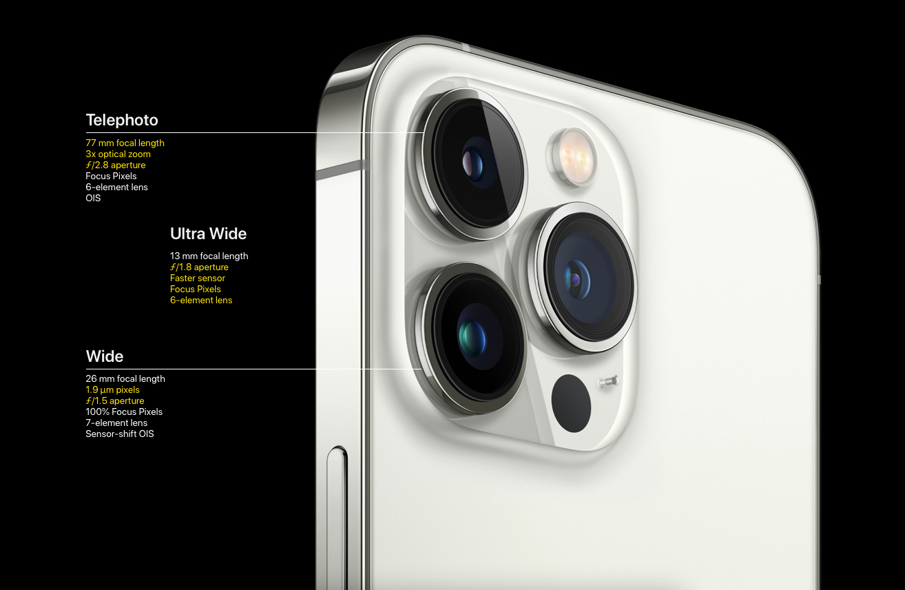 아이폰 프로 하면 카메라 기능을 빠뜨릴 수 없죠. 신형 아이폰 13 프로는 매크로 촬영이 가능해졌으며, 더 강력해진 야간 촬영 모드가 지원됩니다. 3 배율 광학줌으로 더 클래식한 인물사진 촬영이 가능해졌고, 앞서 아이폰 13에서 소개한 시네마틱 모드의 추가로 더 영화 같은 촬영이 가능해졌습니다. 스마트 HDR 4 는 피부톤을 더 완벽하게 잡아내고, 모든 픽셀에서 다중 노출이 가능해져 더 심도 있는 사진 표현이 가능해졌습니다.