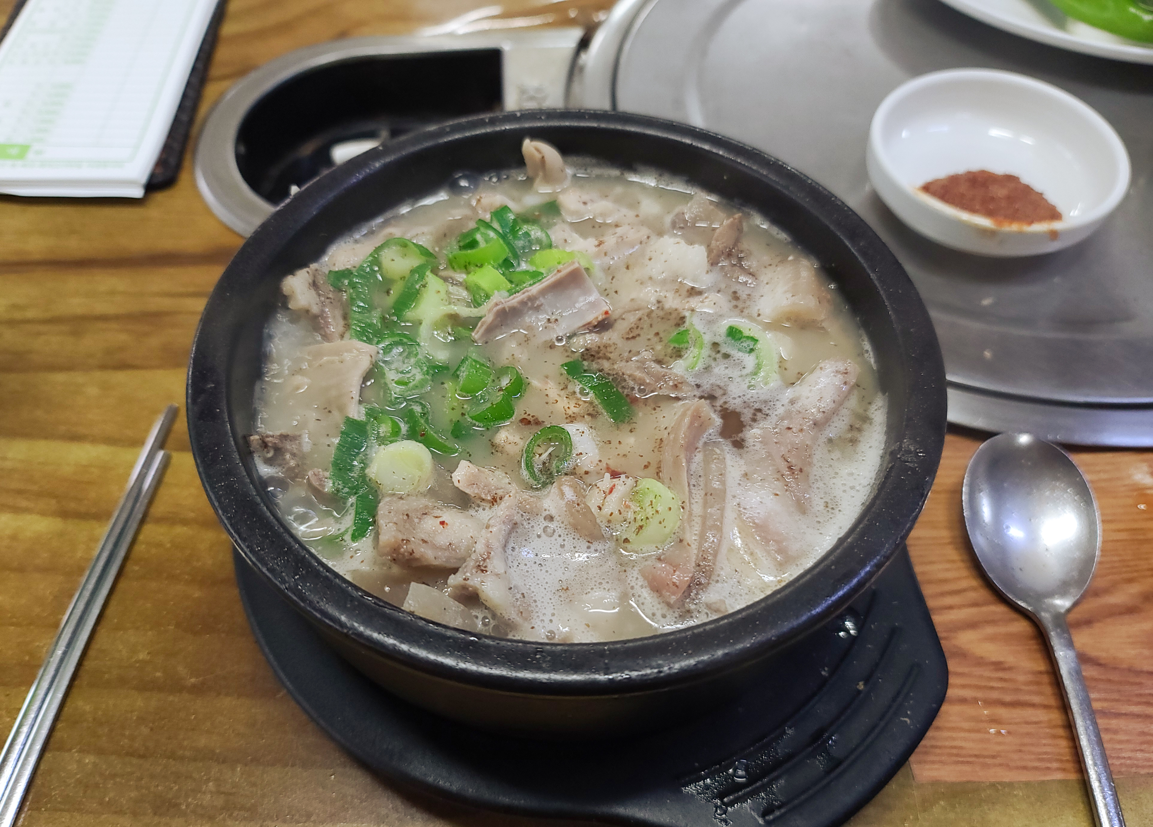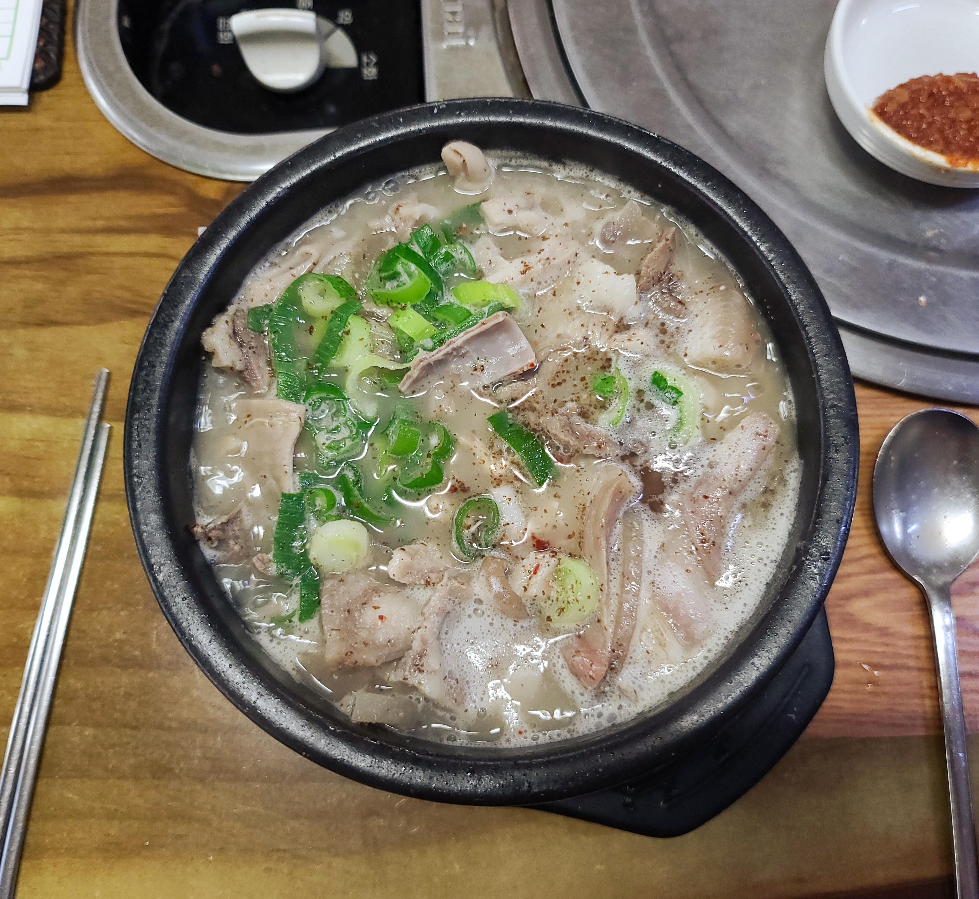 순대국 맛집 '서일순대국'은 농심 본사가 있는 신대방에 위치해 있습니다. 하루는 혼자서 이용하고, 하루는 이곳을 소개해준 지인과 함께 방문하였습니다. 저는 순대국의 순대를 안 먹기 때문에 순대 없이 고기만 담은 국밥을 주문했습니다.