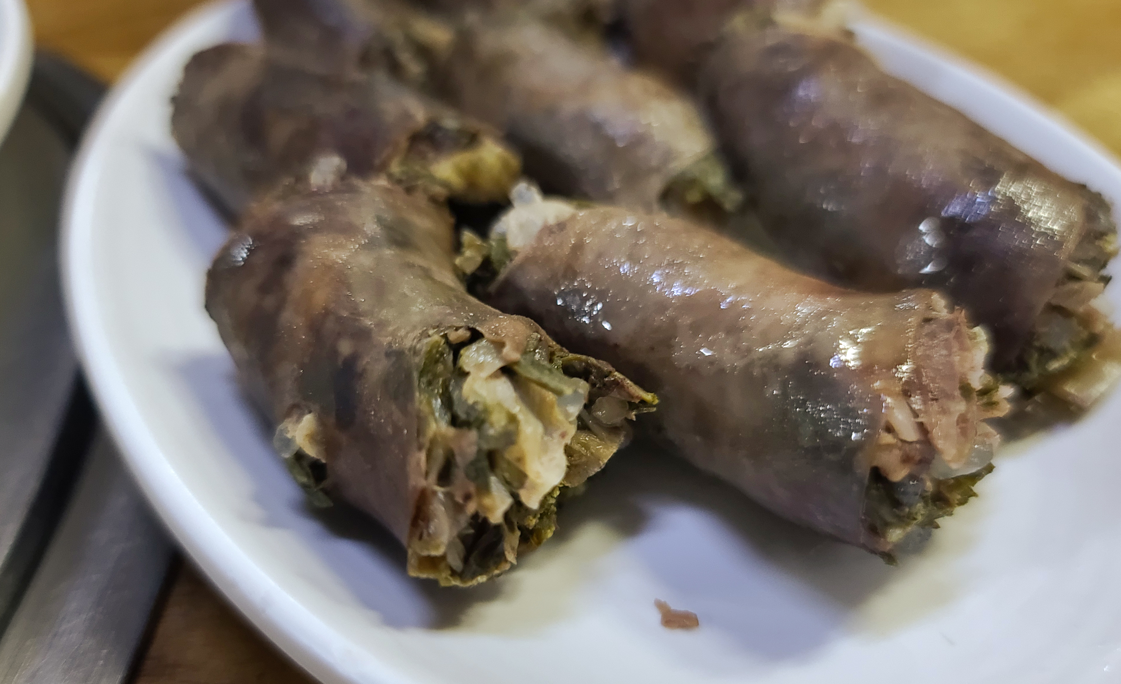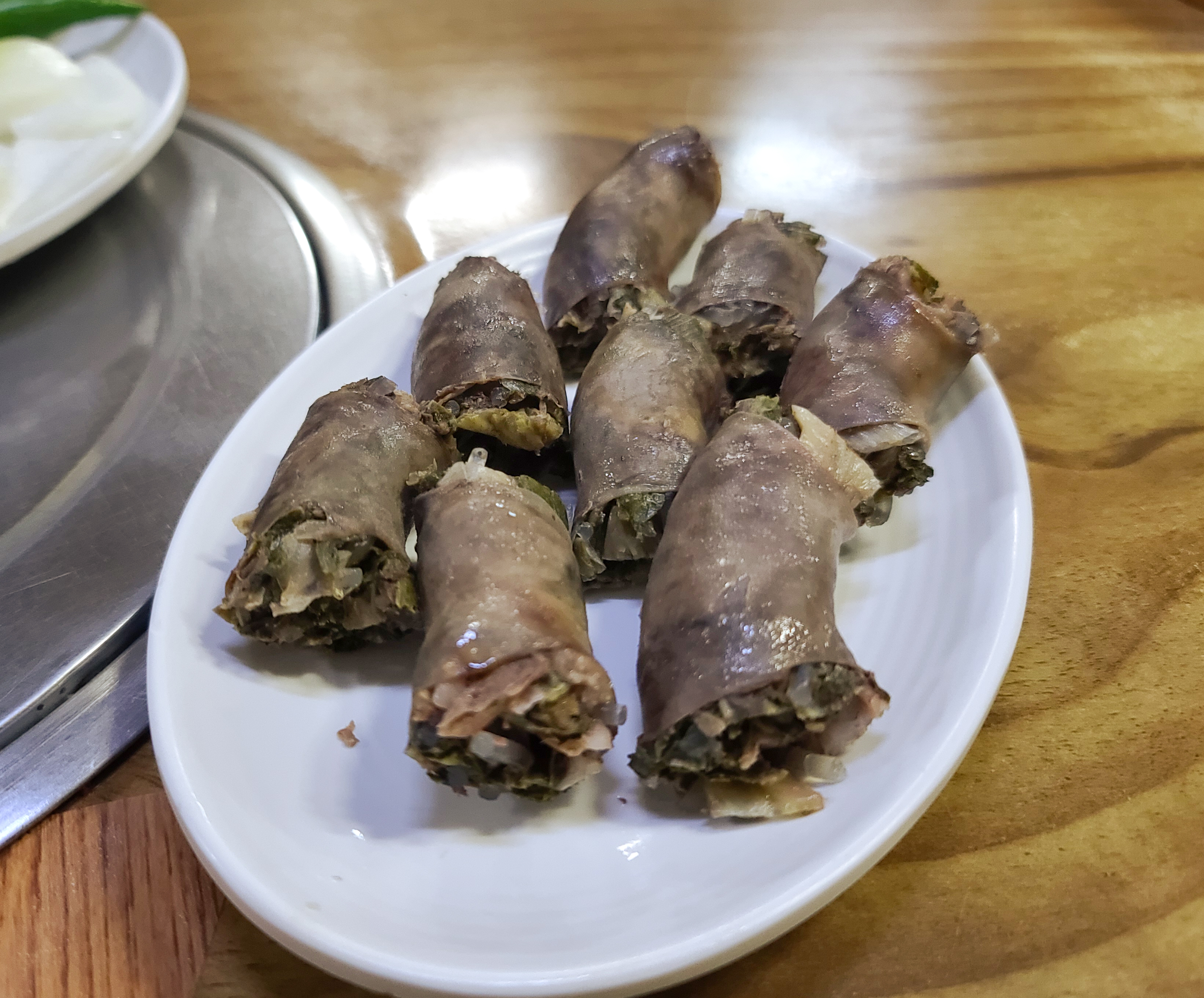 순대국에 기호에 맞게 들깨가루와 양념장을 첨가하여 얼큰하게 먹었고, 같이 간 지인의 순대는 사진으로 찍어만 두었습니다. 순대 속에 시래기도 들어있어 내용물은 알차 보이더라고요.