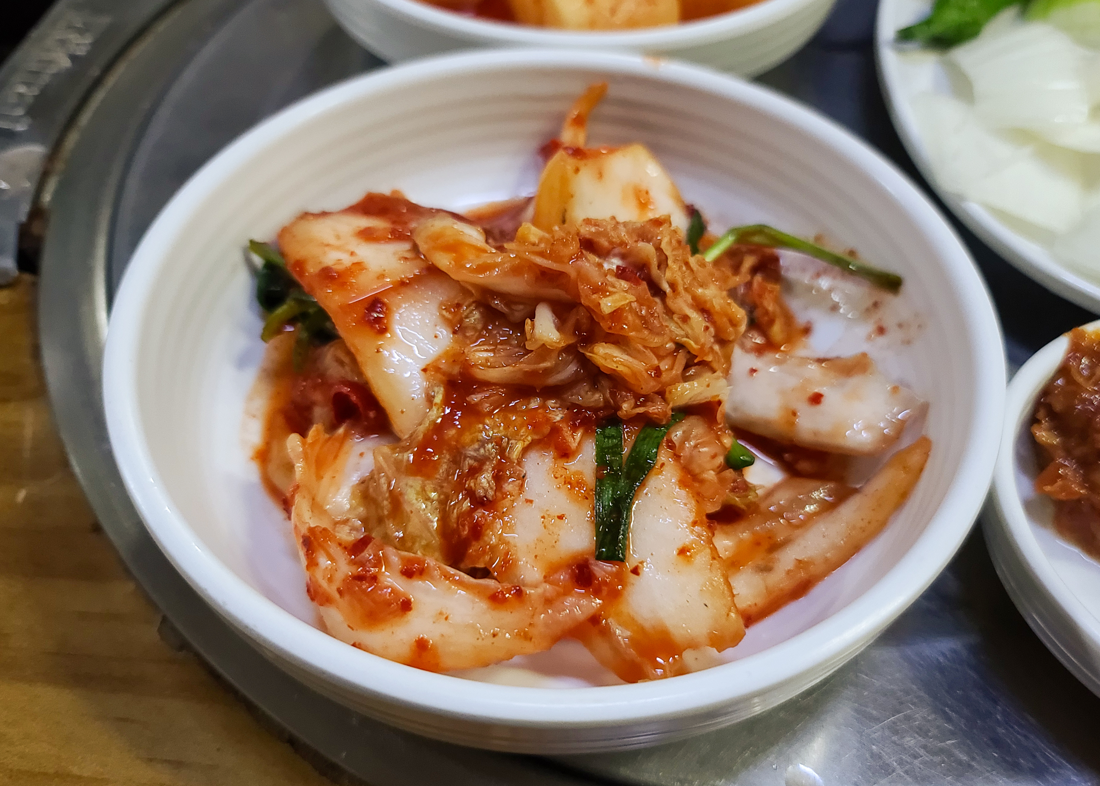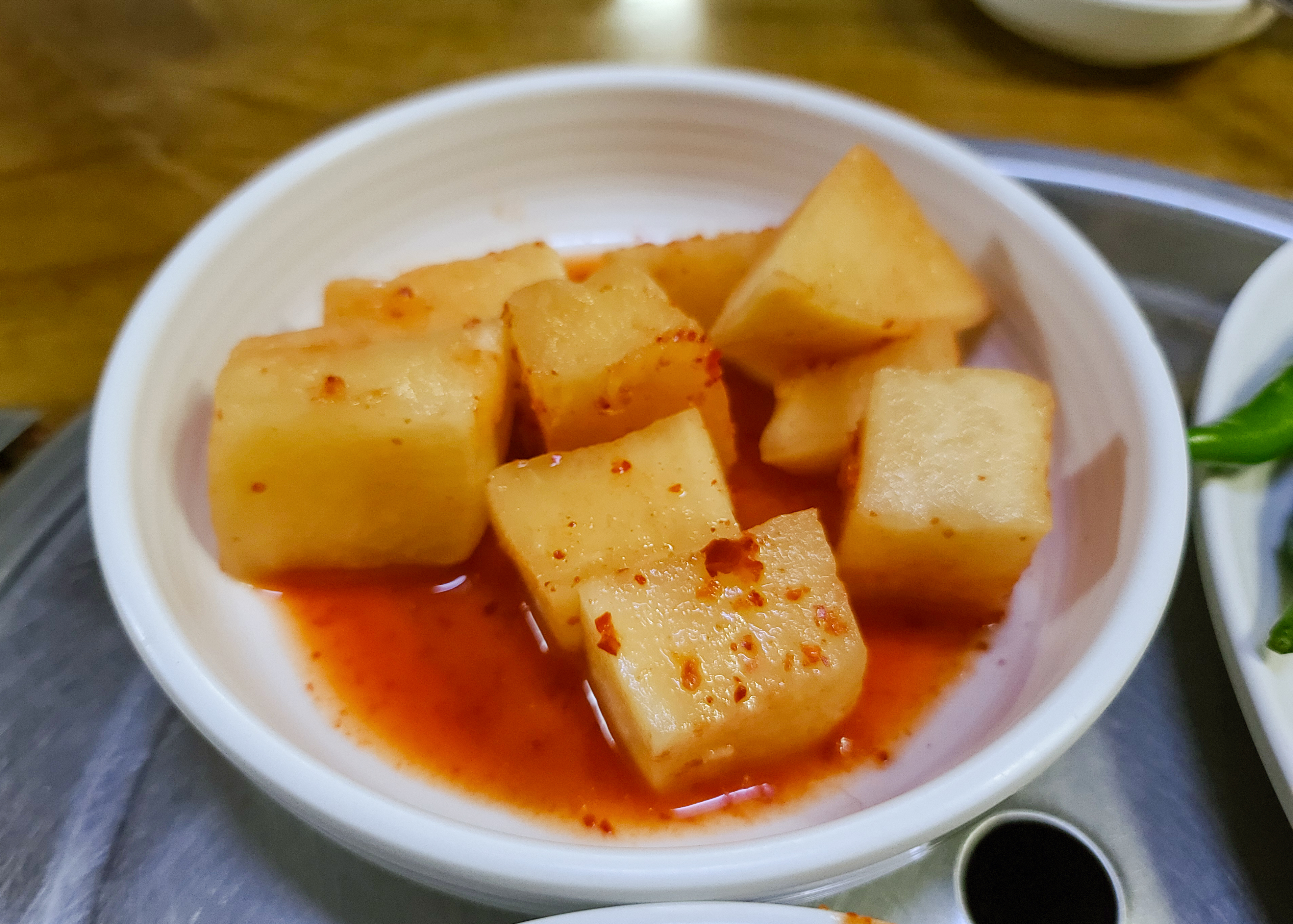 순대국은 손님이 많아서 그런지 약 5분쯤 기다리니 나오더라고요, 그밖에 배추김치와 무김치는 반찬통에서 직접 덜어먹을 수 있게 되어있었고, 양념장과 소금, 후추등을 기호에 따라 먹기좋게 테이블에 마련되어 있었습니다.