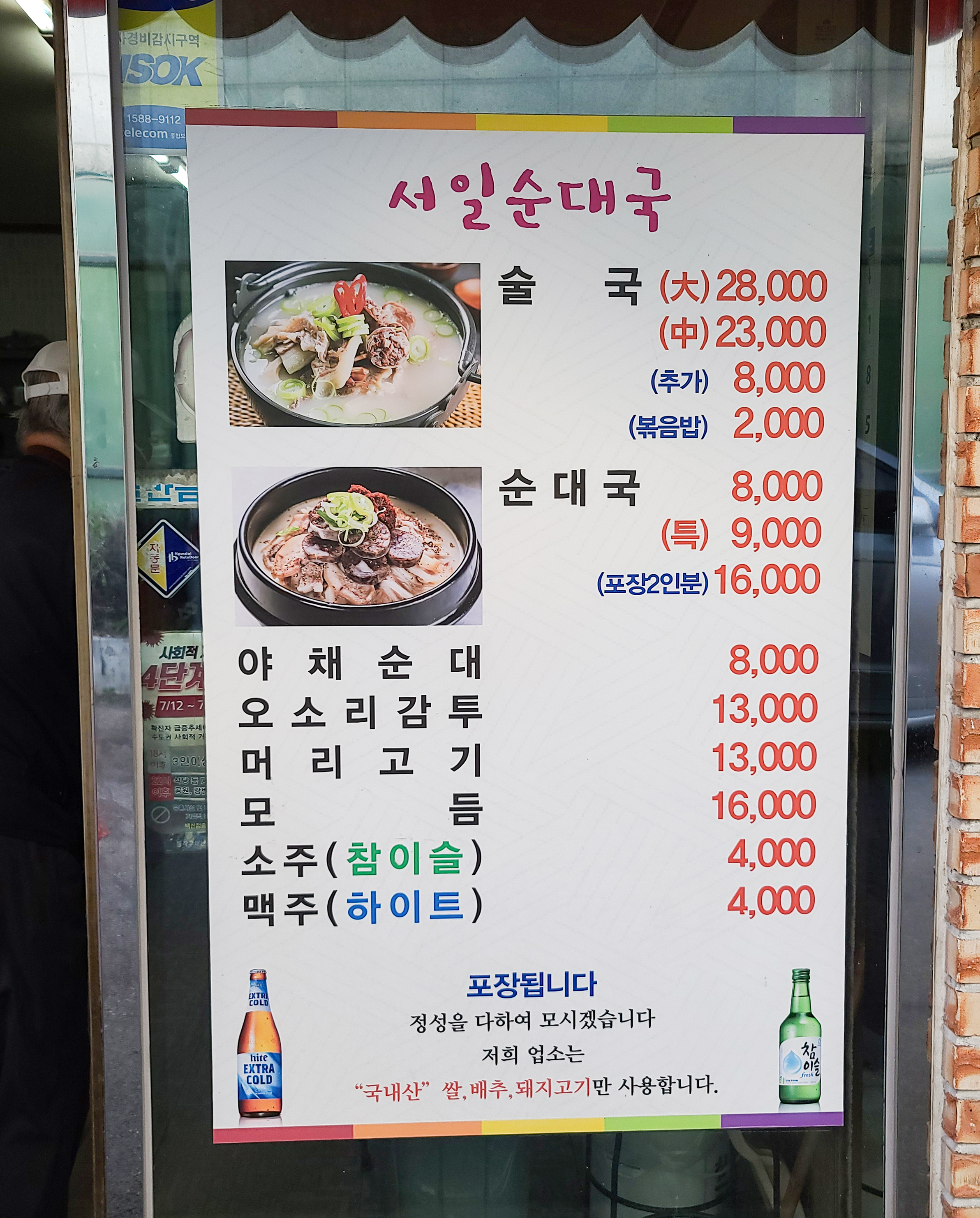서일순대국의 메뉴부터 살펴보실까요?
