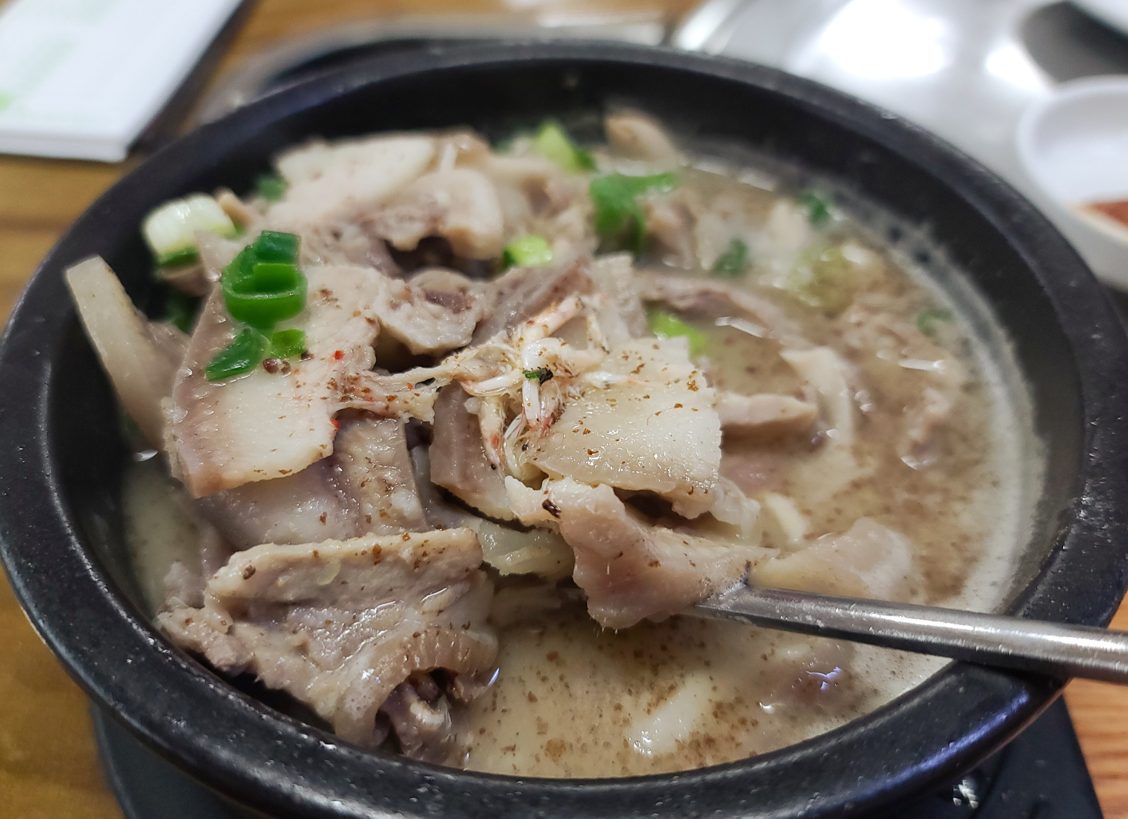서일순대국의 메뉴는 술국, 순대국, 야채순대, 오소리감투, 머리고기, 모듬이 있었습니다. 저는 순대국 (특)을 주문했고, 앞서 설명한 것처럼 순대국의 순대를 빼고 고기만 달라고 하여 주문하였습니다. 같이 간 지인은 원래 순대국으로 받았습니다.