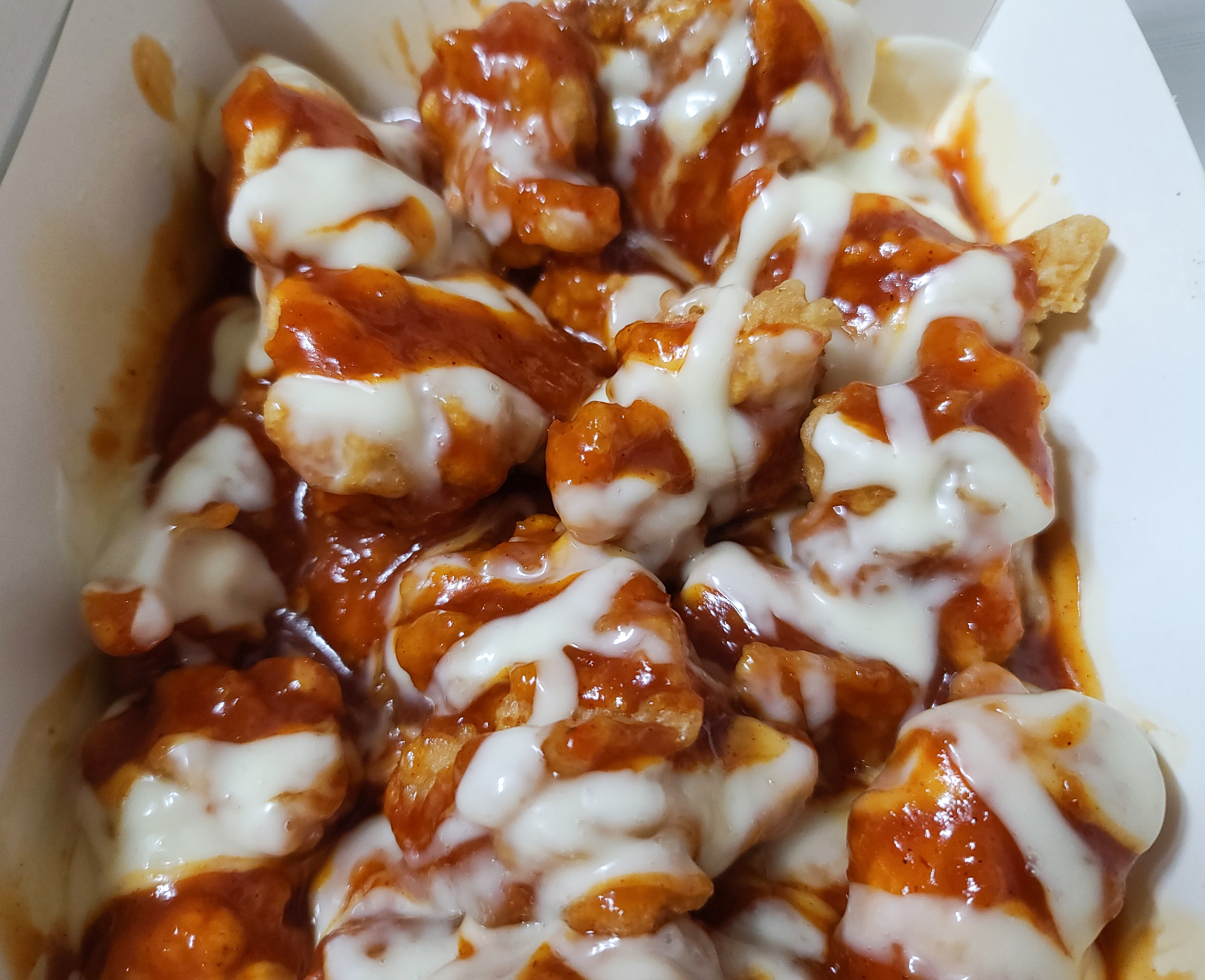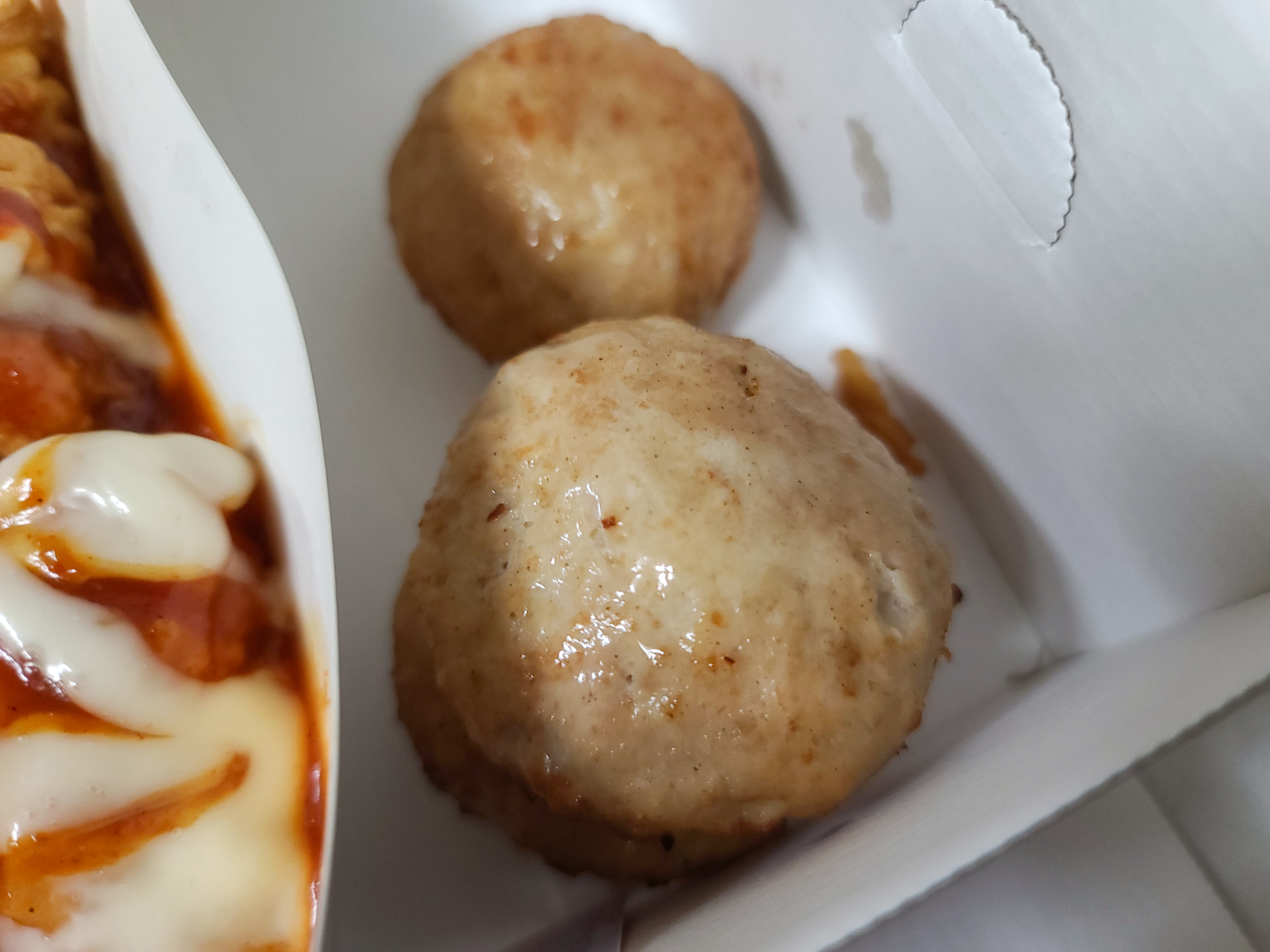 치킨 치즈볼은 동그랑땡 비슷한 모습인데, 냉동상태의 메뉴를 전자레인지에 돌려서 주는 것 같더라고요. 솔직히 이 메뉴는 별로 추천하고 싶지는 않습니다. 술안주로는 괜찮을지 모르겠지만 개당 2,000원인데 가성비는 썩 좋아 보이지 않더라고요. 그래도 처돌이 치킨을 위해 이 정도 희생쯤이야..(ㅋㅋ)