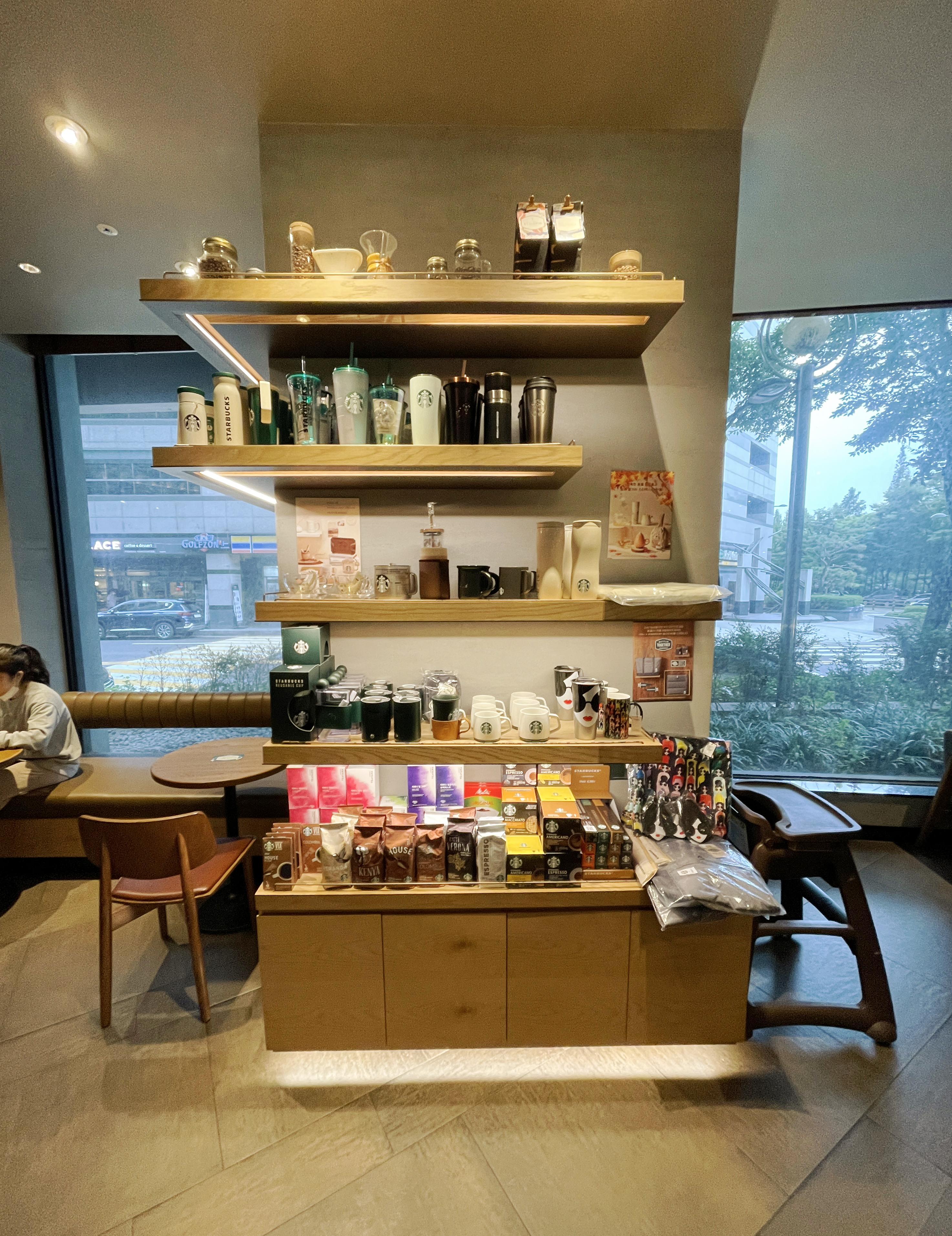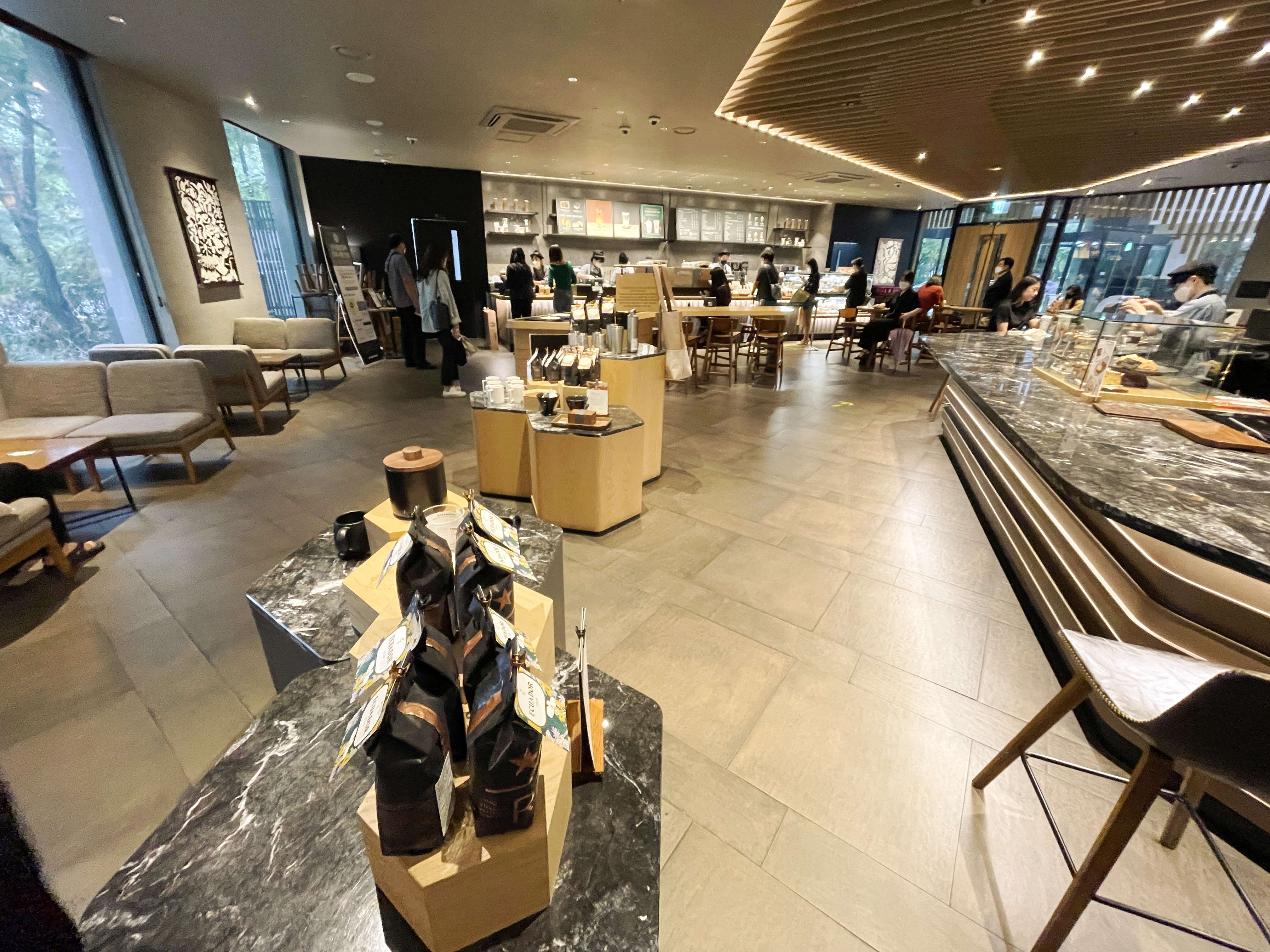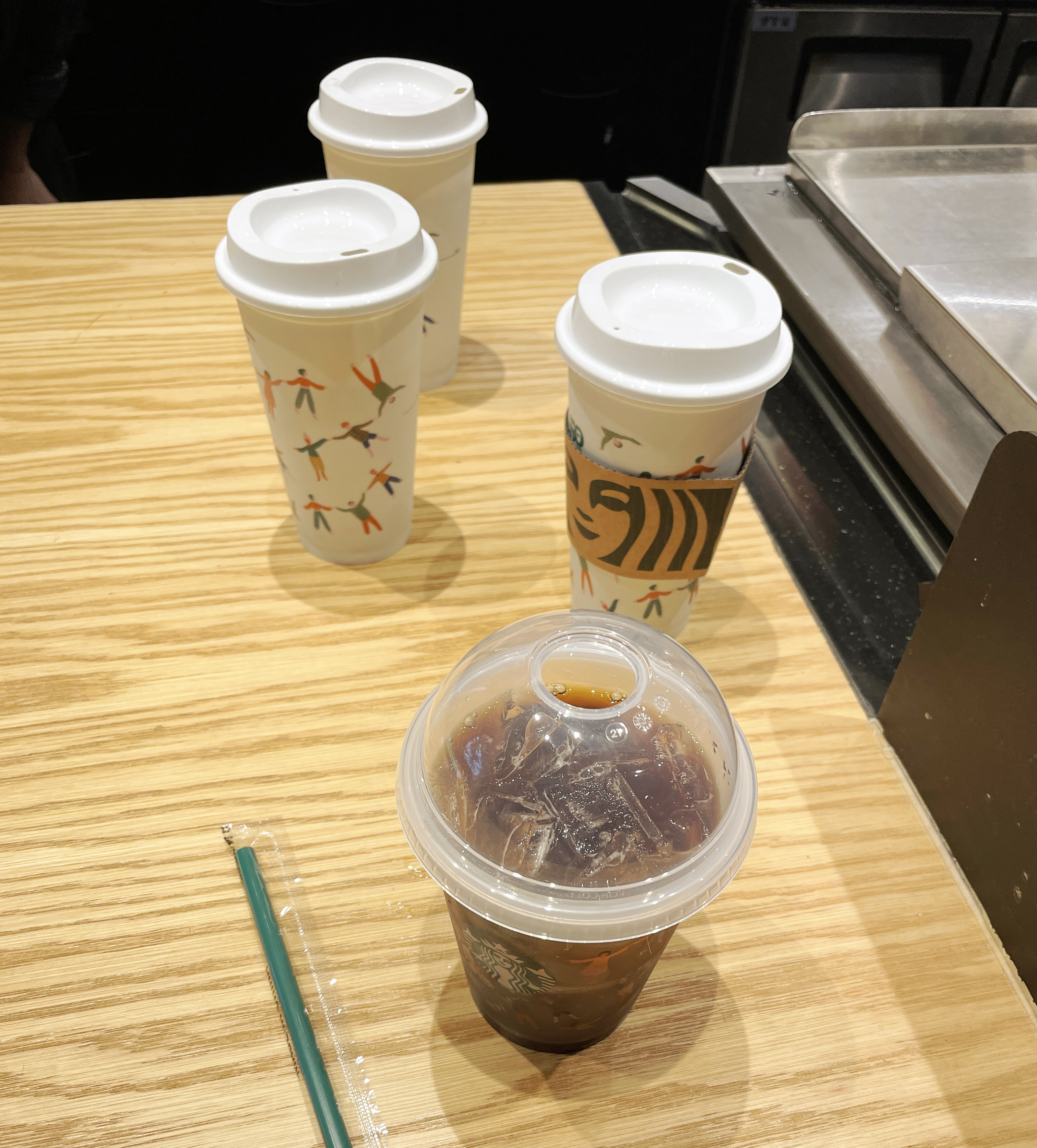 스타벅스 매장을 둘러보고 있는데, 곧이어 제가 주문한 음료가 나왔습니다. 리유저블컵은 스타벅스 공홈의 이미지 컷과 동일한 형태로 제공되었고, 뜨거운 음료를 담는 컵에는 리드를 차가운 음료를 담는 컵에는 다회용 플라스틱 빨대가 제공되었습니다.