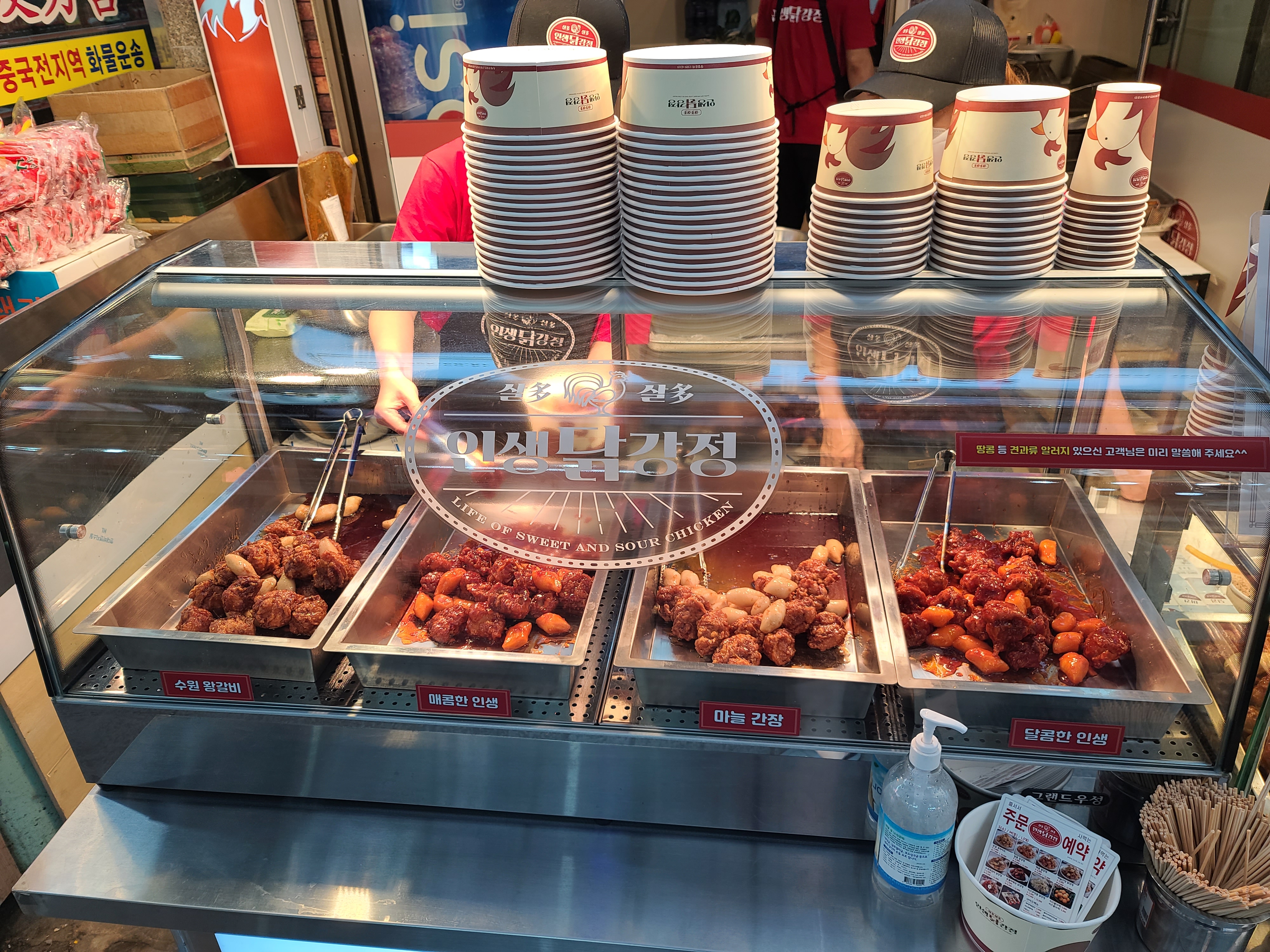 이 가게는 시장에 식재료를 사러 갔다가 돌아오는 길에 방문하게 된 곳입니다. 인생닭강정은 여러 가지 맛의 닭강정을 판매하는 전문점으로 용량도 혼자 먹기에 좋은 작은 크기부터 큰 크기까지 다양했습니다.