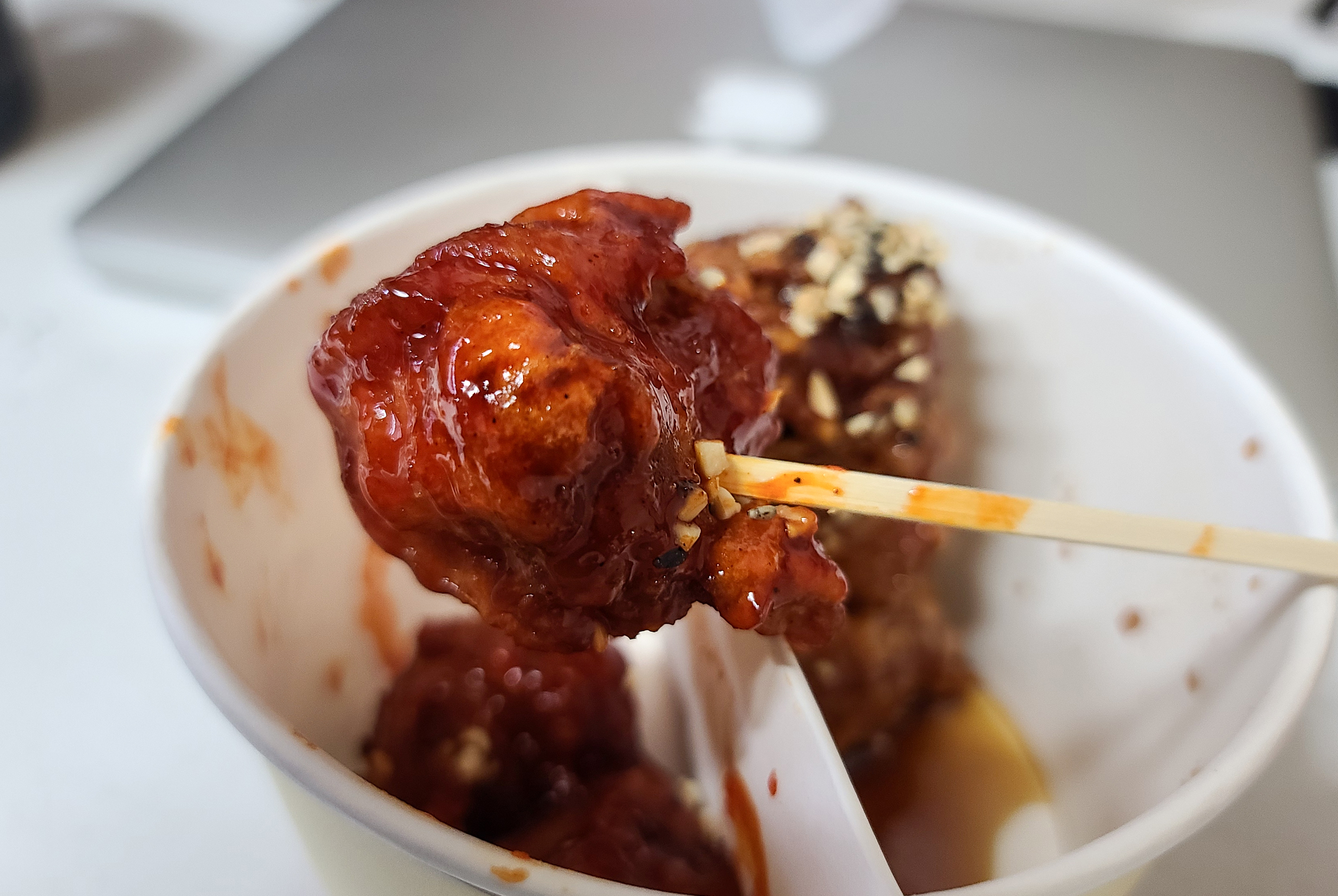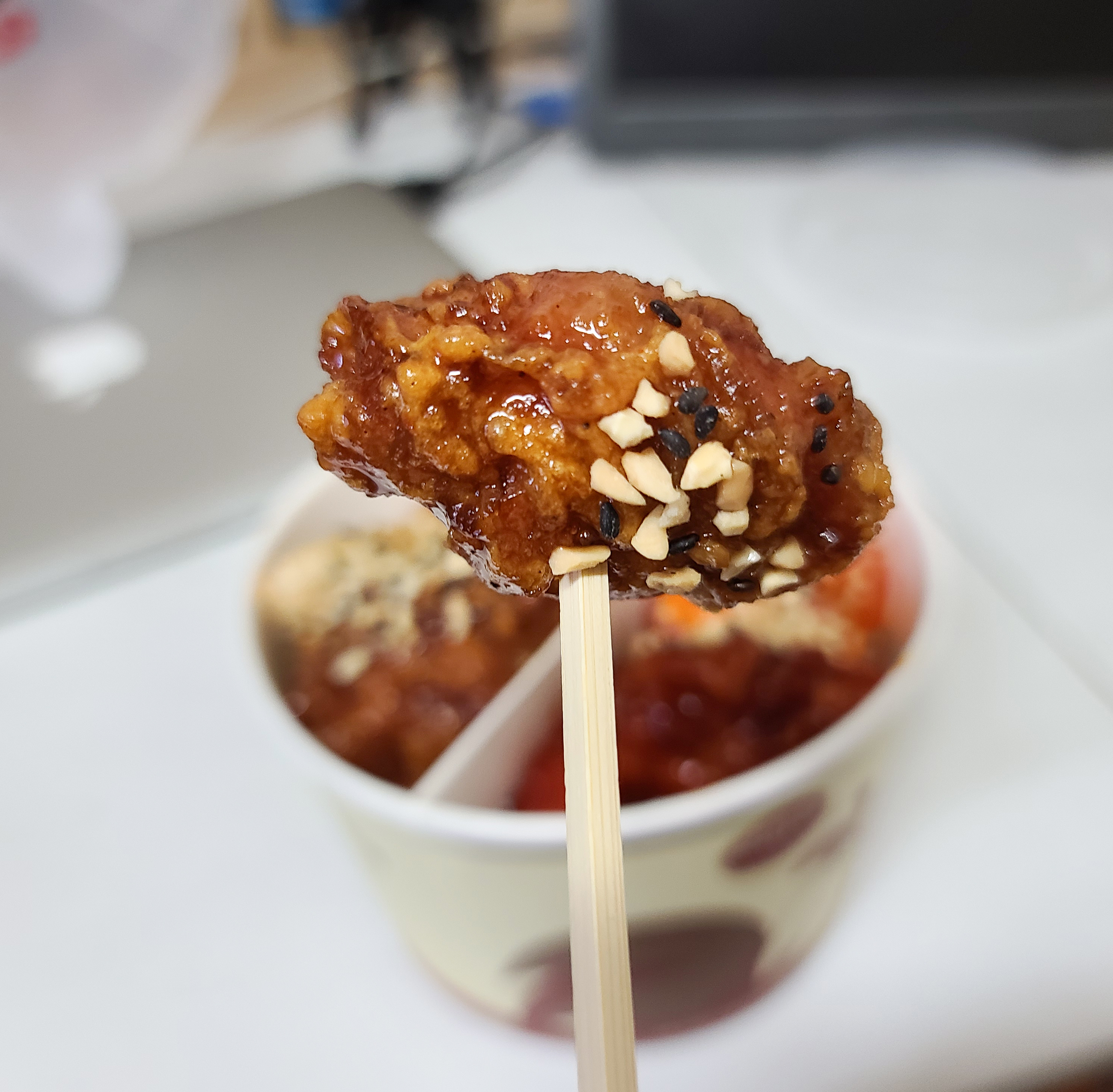 신사시장 인생 닭강정의 맛은 그냥 평범했습니다. 사실 맛있다고 하는 속초닭강정도 먹어보고, 인천닭강정, 단양닭강정까지 먹어보았는데 저는 오히려 닭강정은 부드러운 식감보다는 조금 더 소스가 진득한 느낌이 좋더라고요. 신림동 인생닭강정은 간식으로 사 먹기에 가격적인 부담이 없어서 좋았고 맛은 특징 없이 평범했습니다.
