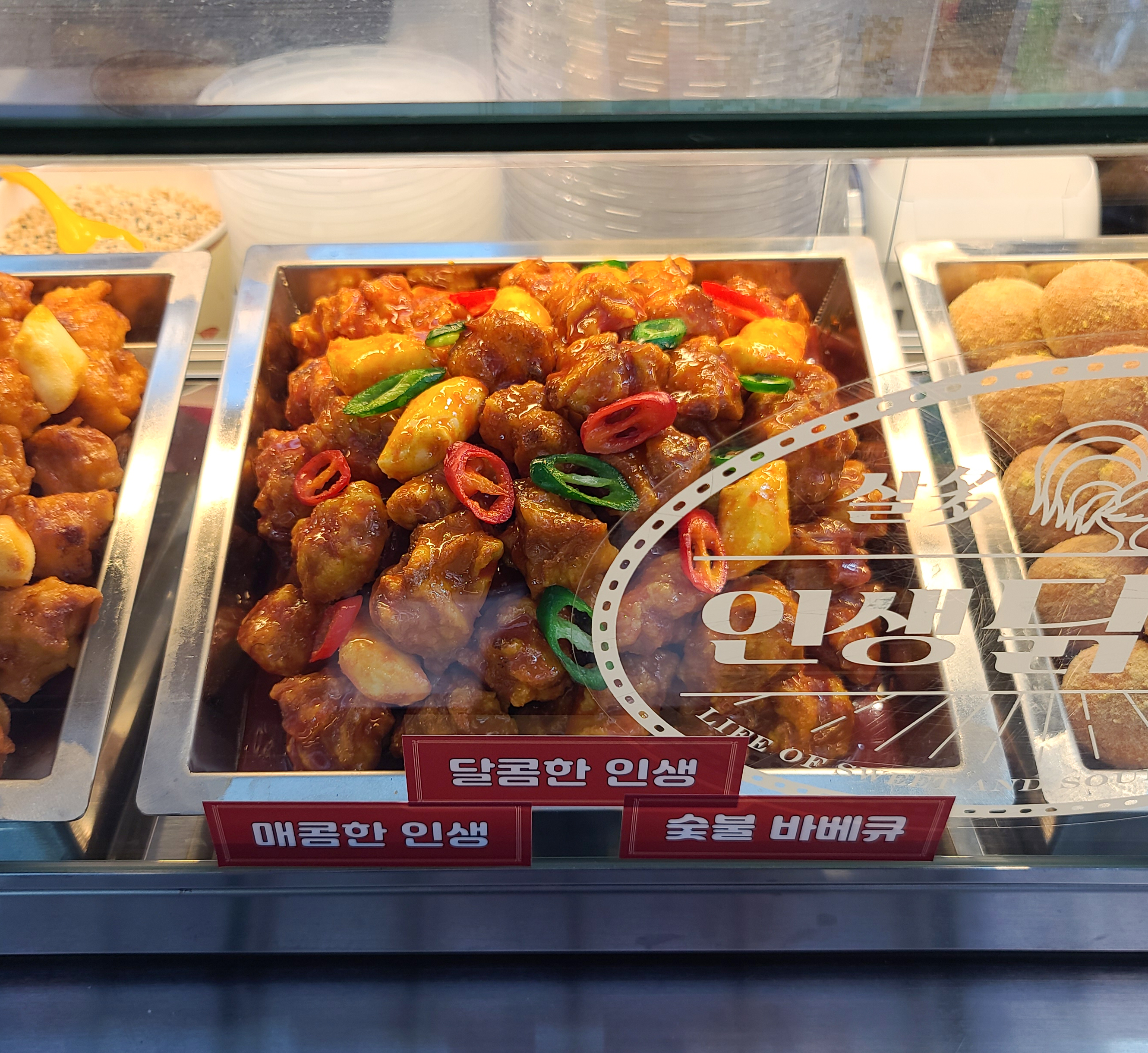 이 가게는 시장에 식재료를 사러 갔다가 돌아오는 길에 방문하게 된 곳입니다. 인생닭강정은 여러 가지 맛의 닭강정을 판매하는 전문점으로 용량도 혼자 먹기에 좋은 작은 크기부터 큰 크기까지 다양했습니다.