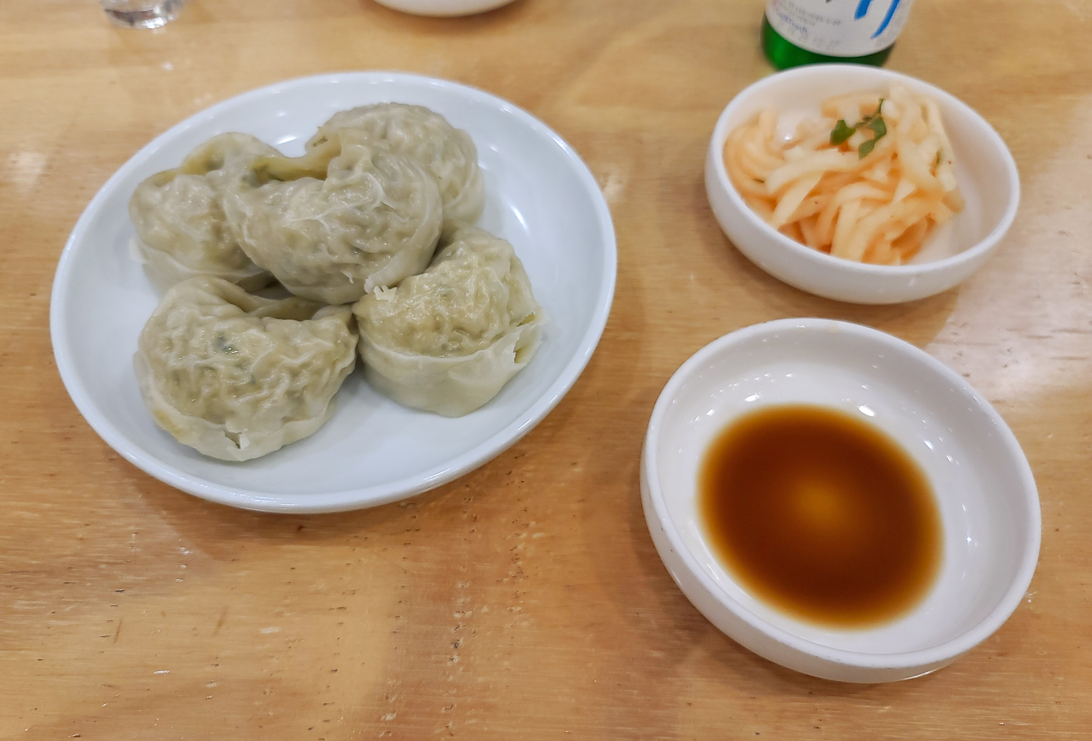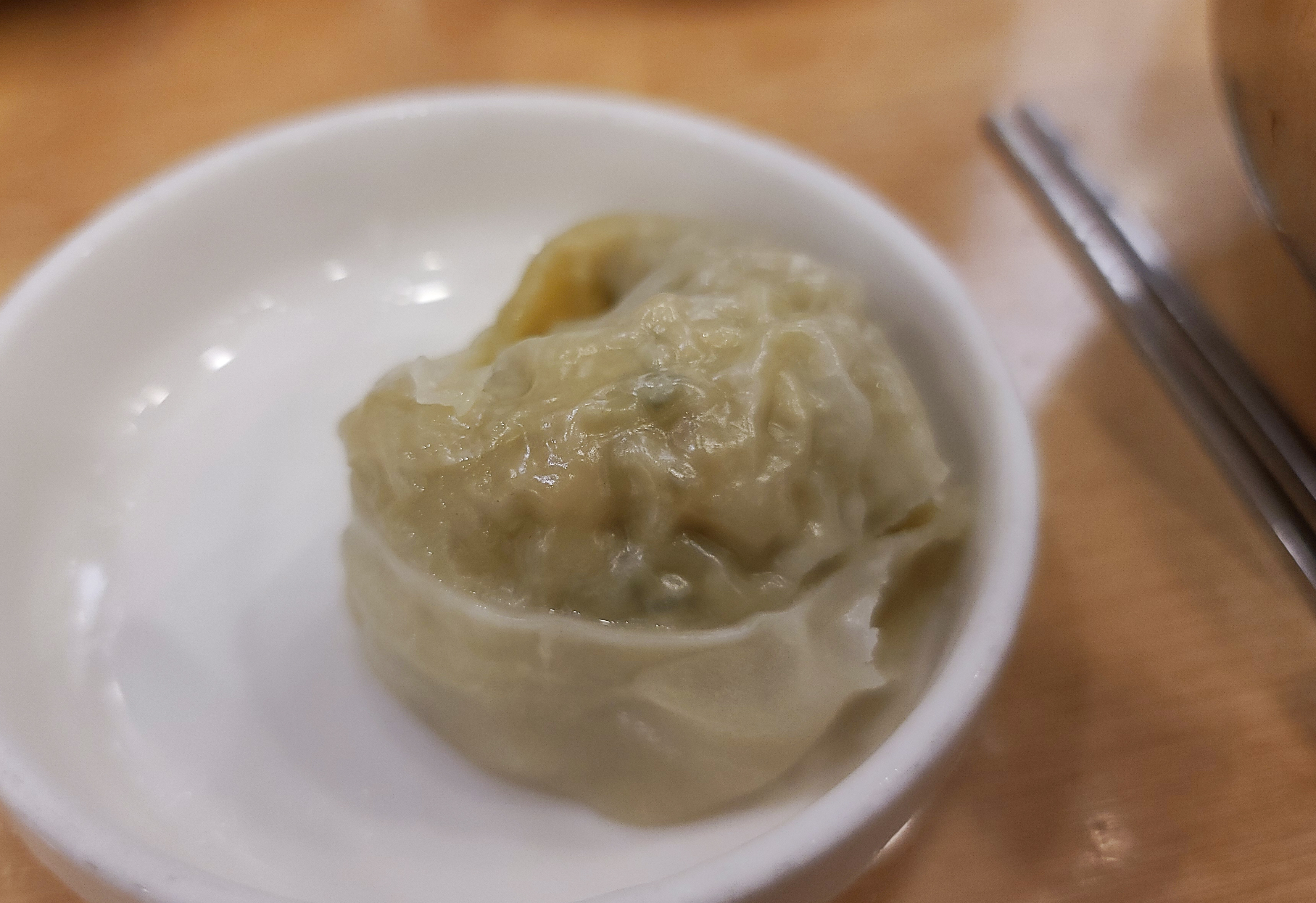 자리에 앉아서 주문한 지 2분이 지났을까 거의 주문과 동시에 만두가 조리되었는지, 금세 만두가 "쨘" 하고 나왔습니다. 요즘 비도 자주 오고 해서 따뜻한 간장 육수를 마시면서 만두를 먹기 시작했죠. 만두는 알이 크고 속이 꽉 차 있어서 한두 개만 먹어도 금세 배가 차더라고요.