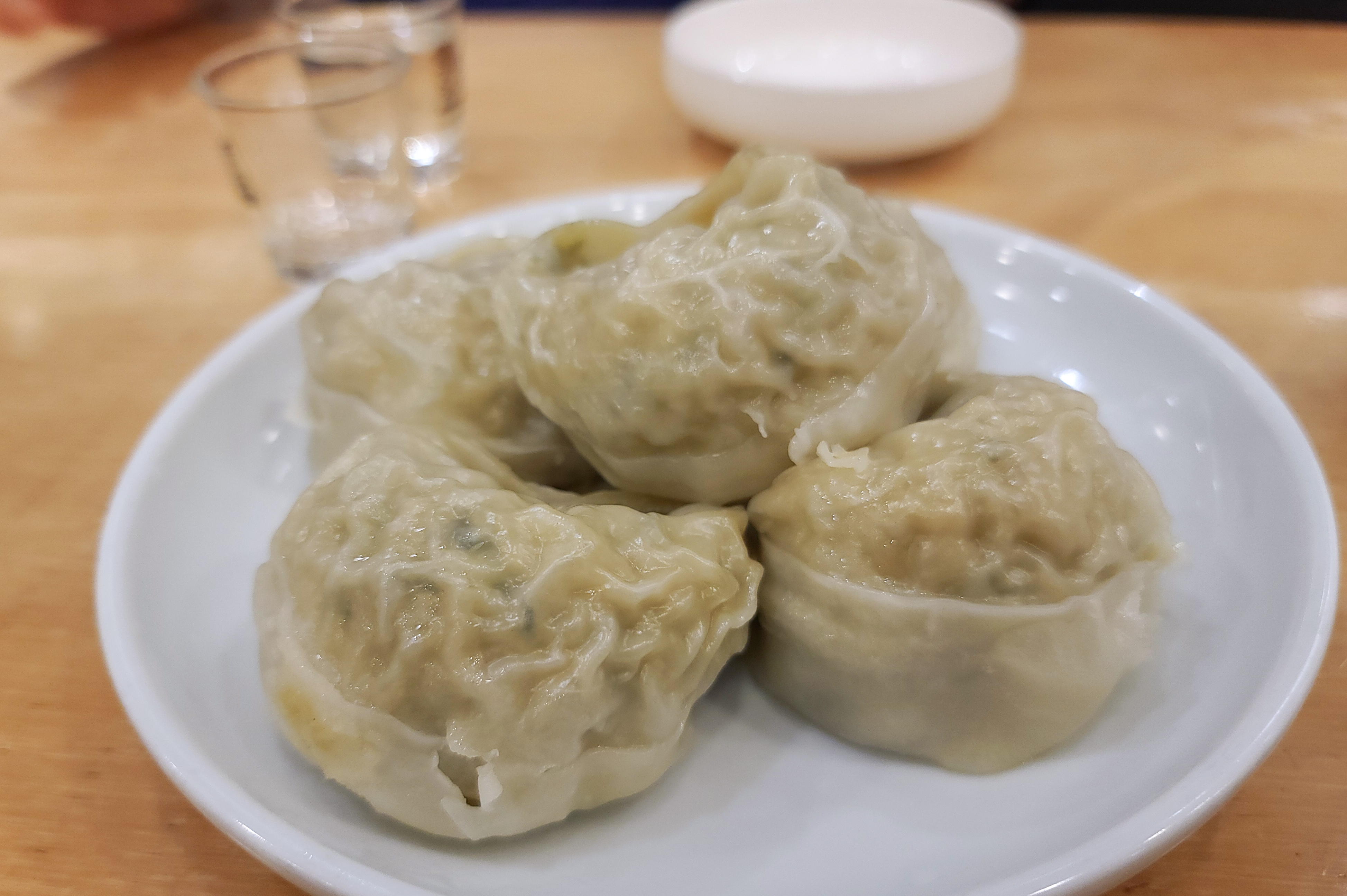 자리에 앉아서 주문한 지 2분이 지났을까 거의 주문과 동시에 만두가 조리되었는지, 금세 만두가 "쨘" 하고 나왔습니다. 요즘 비도 자주 오고 해서 따뜻한 간장 육수를 마시면서 만두를 먹기 시작했죠. 만두는 알이 크고 속이 꽉 차 있어서 한두 개만 먹어도 금세 배가 차더라고요.