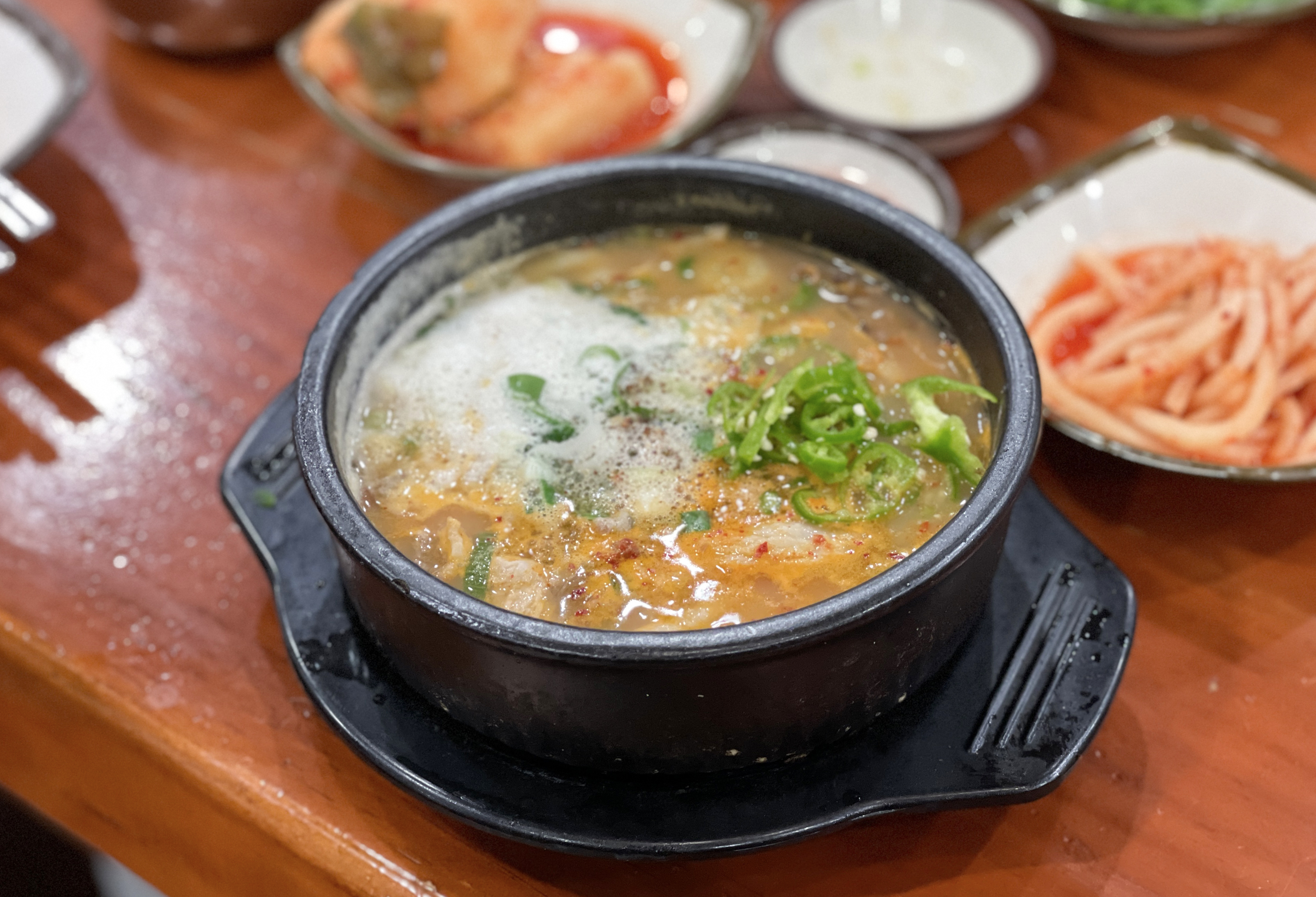 곧이어 주문한 순댓국(순대 빼기)이 나왔습니다. 저는 칼칼하게 먹고 싶어서 채 썬 청양고추와 부추를 곁들여 먹었습니다. 간은 새우젓을 이용해서 했고요. 순대국에 고기의 양은 많지는 않았는데 국물이 맛있어서 종종 찾게 되더라고요.