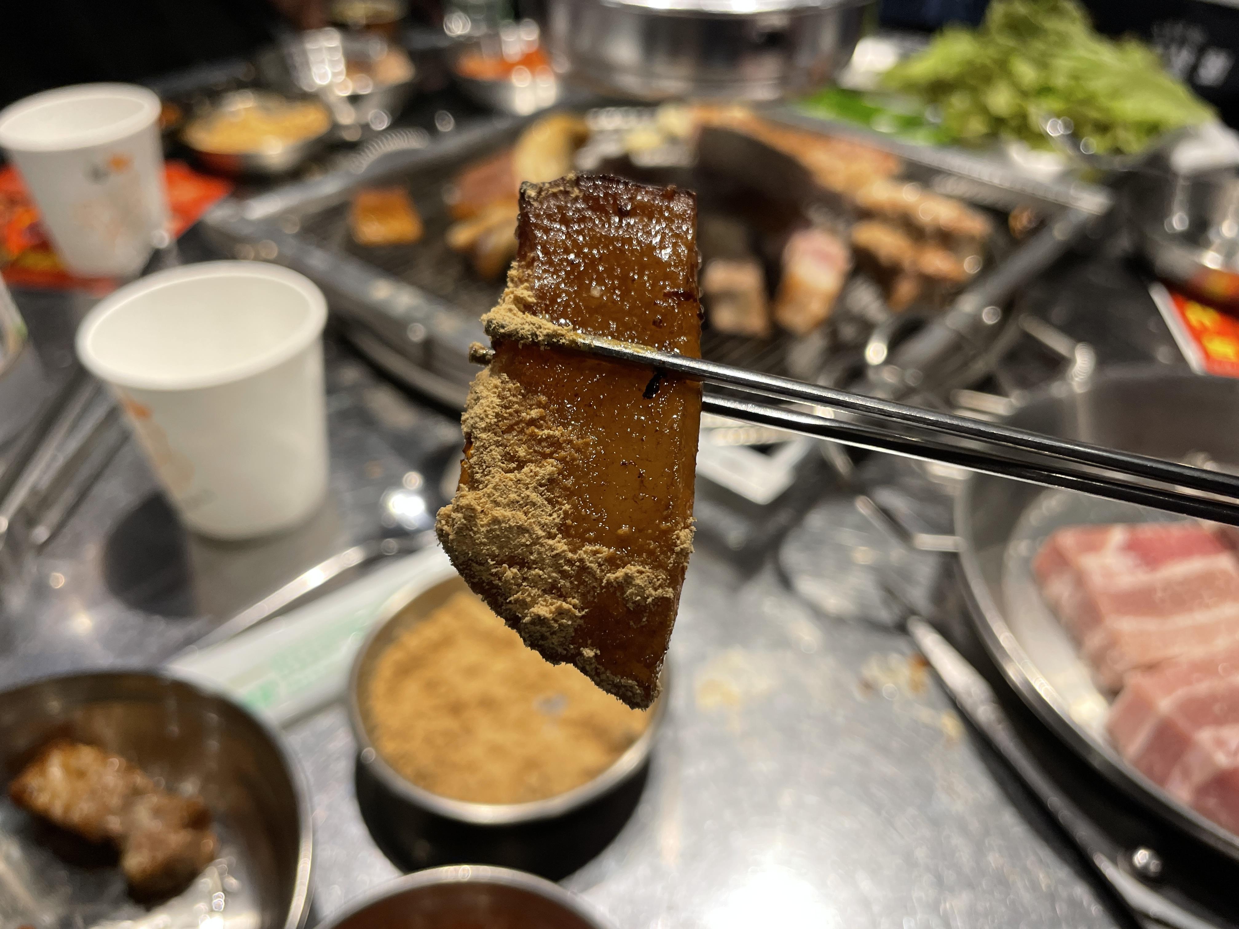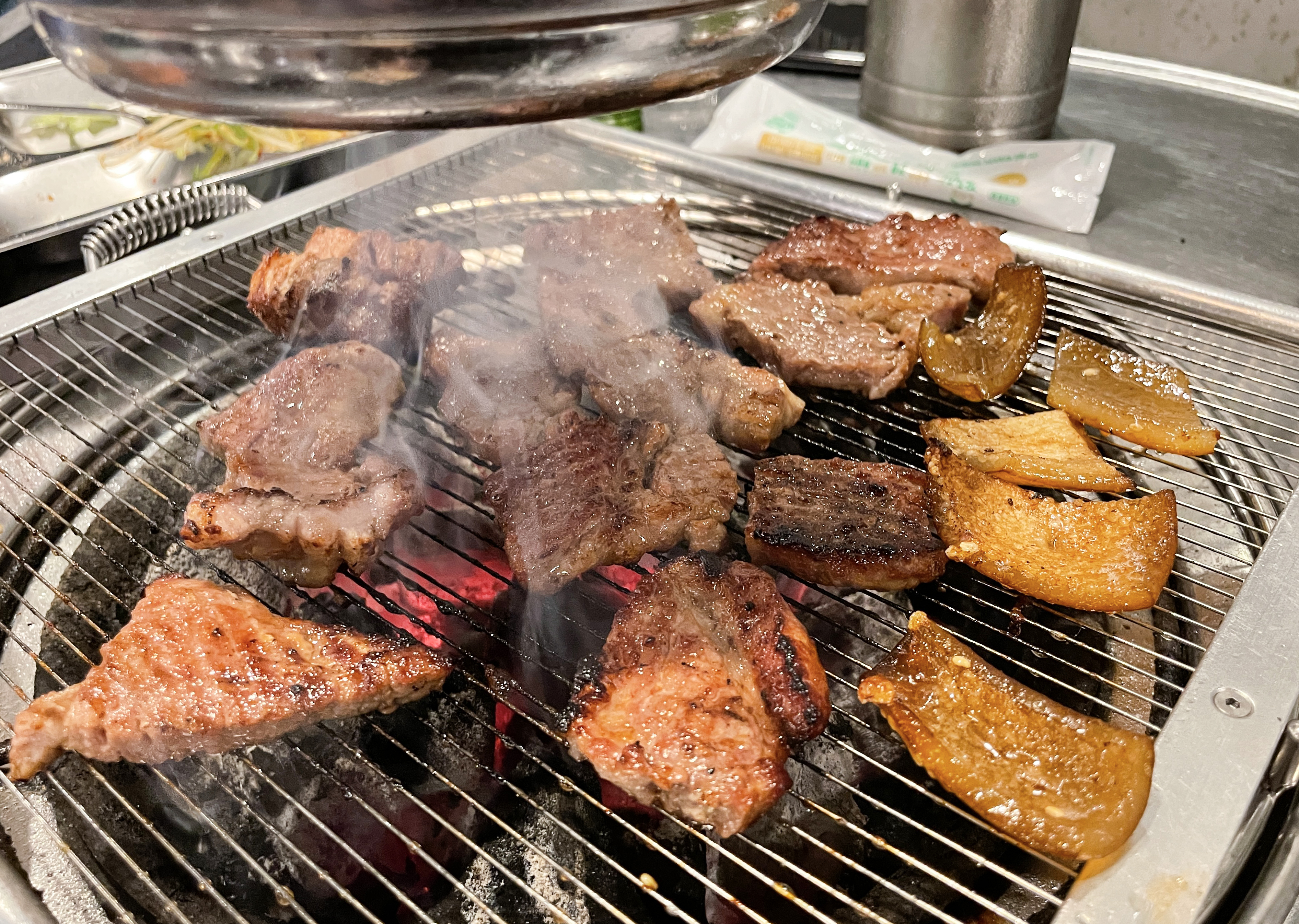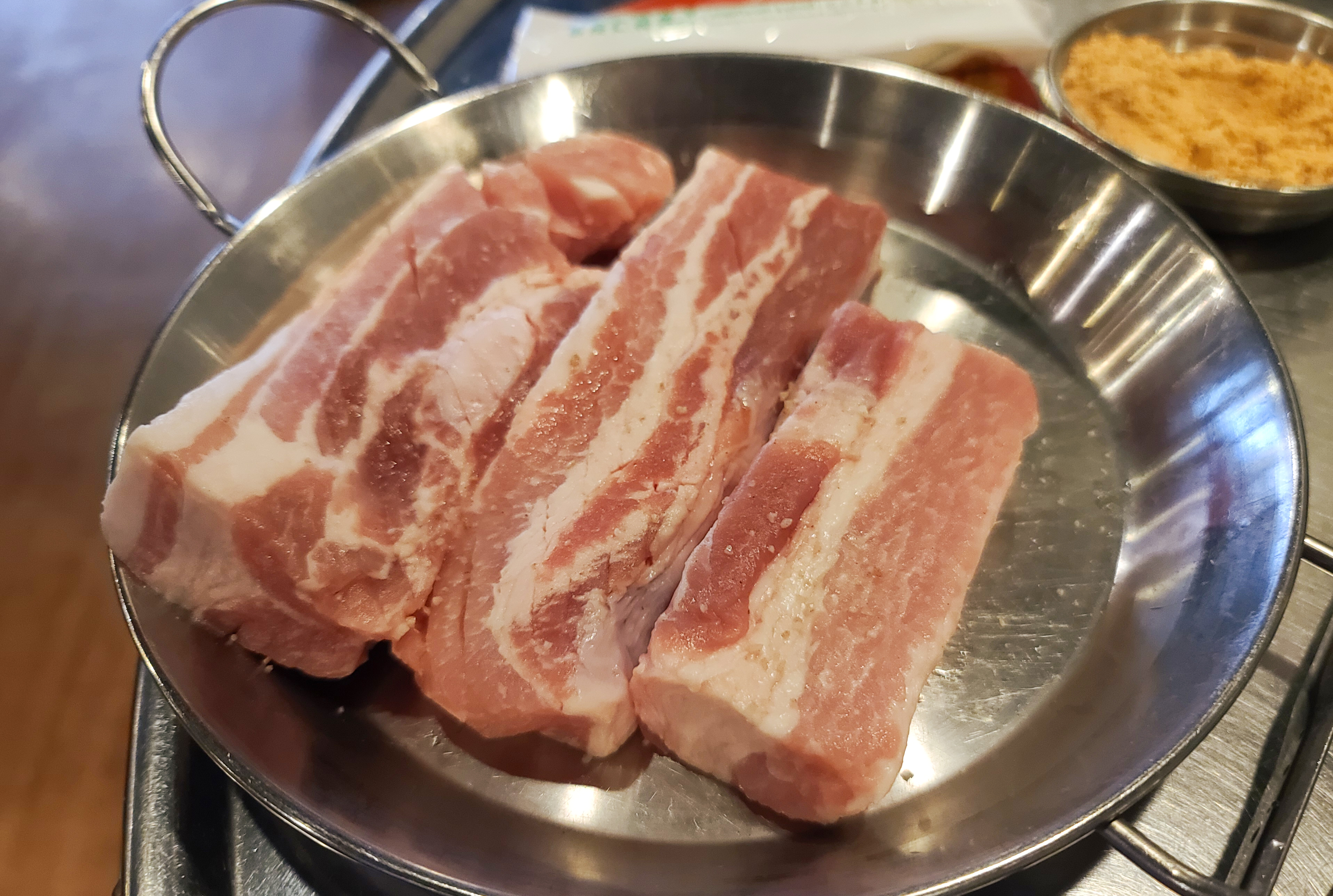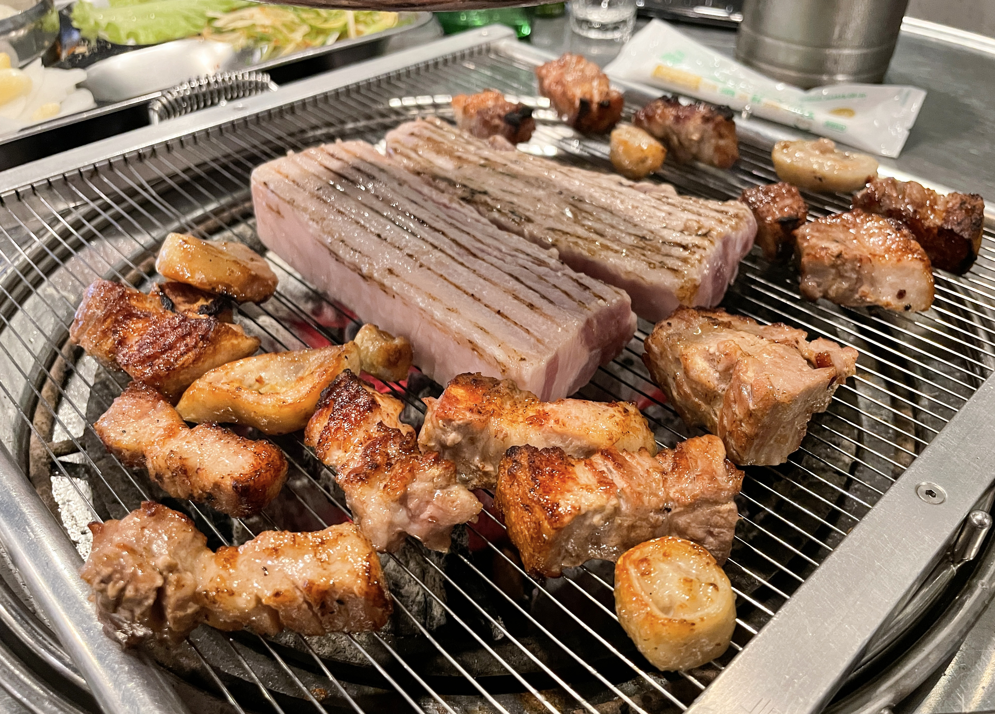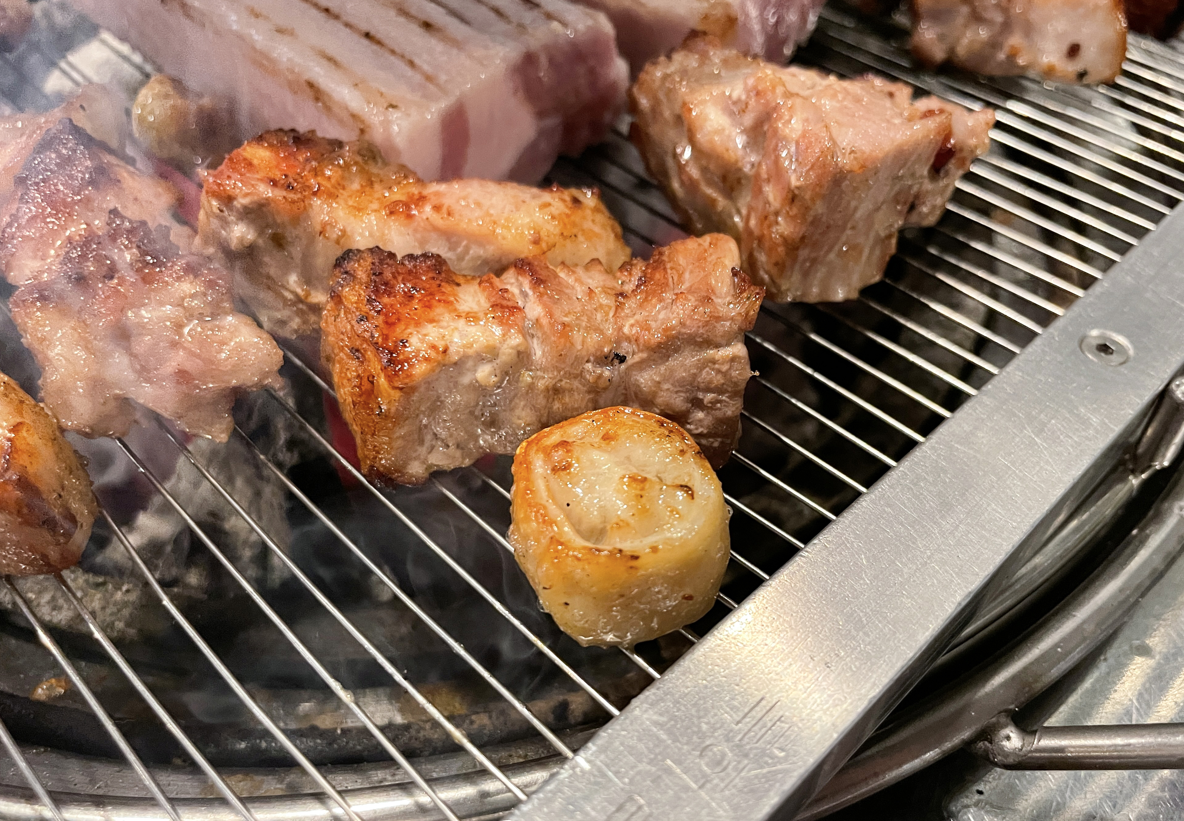 화로상회의 칼집을 낸 도톰한 두께의 삼겹살은 숯불에 익혀서 그런지 느끼하지도 않고, 숯불 향이 잘 배어들어 맛있었습니다. 화로상회를 처음 이용했을 때는 "고기 무한리필 가게인데 어떻게 이런 맛이 나와?" 하면서 놀랐습니다. 실제로 먹어보면 직원들이 직접 구워주는 프리미엄 고깃집과 비슷한 맛에 감탄할 수밖에 없겠더라고요.