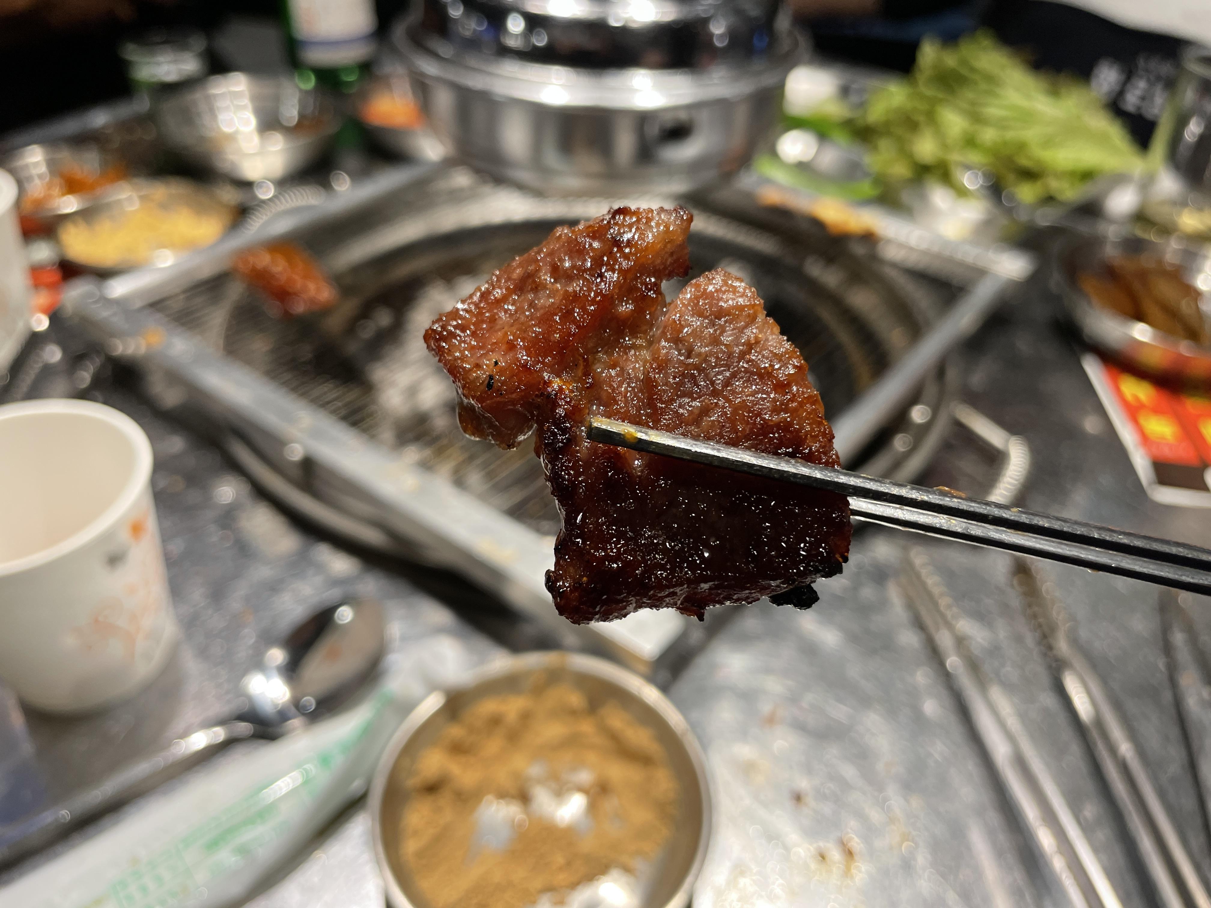 돼지갈비는 달달한 양념이 특징이었는데, 물론 돼지갈비의 갈빗살보다는 목살 위주로 제공하고 있지만 돼지갈비 무한리필을 전문으로 판매하는 가게와 견주어도 손색없을 정도로 맛이 괜찮았습니다. 껍데기나 막창도 같이 곁들여서 먹었는데 껍데기도 부드럽고 막창도 잡내가 안 나고 고소해서 먹을만하더라고요.