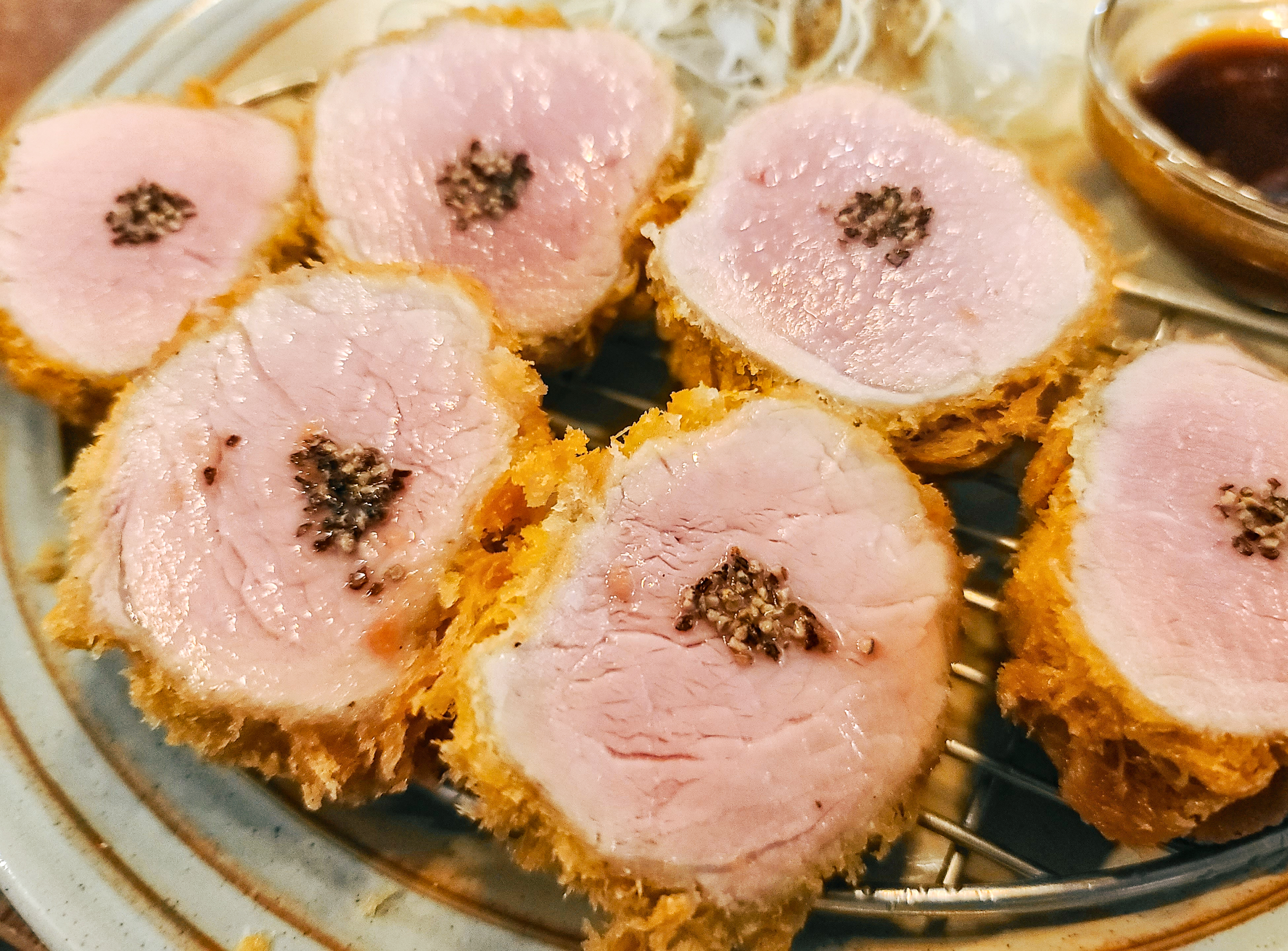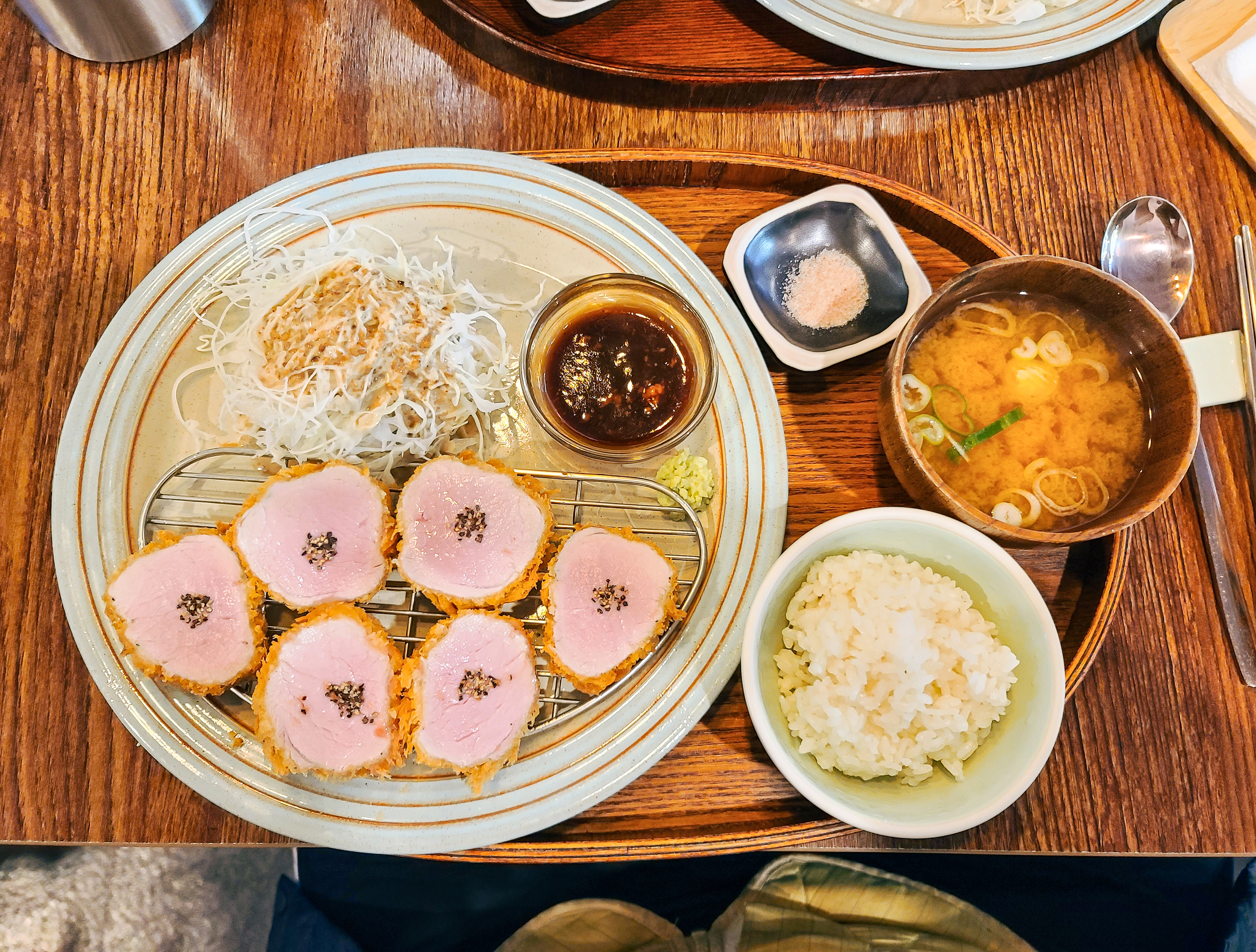 제가 주문한 카츠오도의 히레카츠는 돈까스는 분홍빛을 띄고 있었는데, 미오글로빈이 조리 시 산소와 결합하게 되면 옥시미오글로빈이 되어 선홍색 빛을 띠게 된다고 합니다. 제가 주문한 메뉴는 부드러운 식감과 풍부한 육즙이 특징인 안심 돈카츠였습니다.
