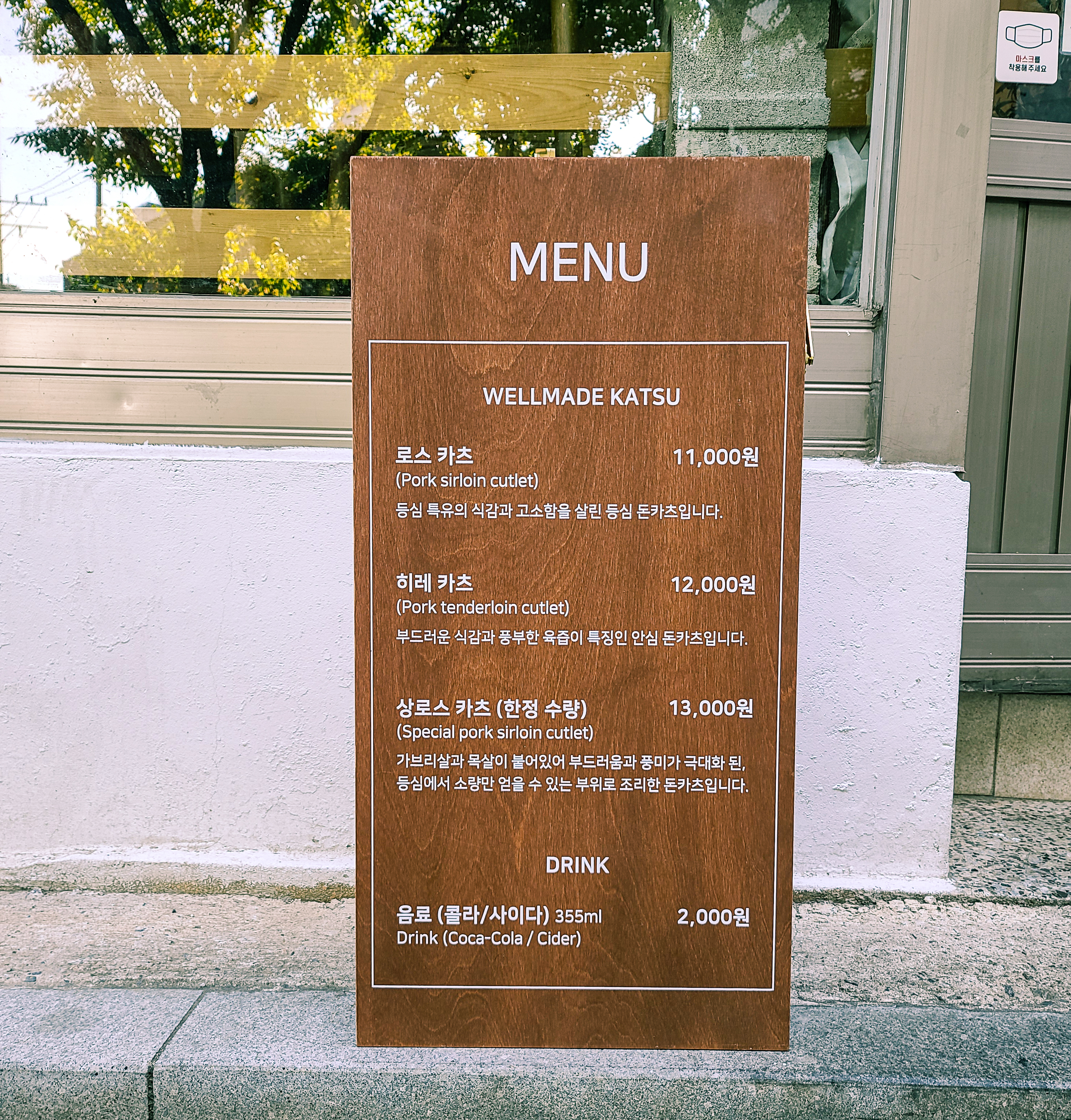이번에는 작정하고 신림동 돈까스 맛집 카츠오도에 방문하기 위해 점심시간 근처에 딱 맞춰서 방문했습니다. 다행히 가게는 영업 중이었고, 카츠오도 내 손님들도 많이 있는 모습을 볼 수 있었습니다. 가게 밖 메뉴판이 놓여있어서 메뉴를 미리 확인할 수 있도록 한 점도 좋았습니다.