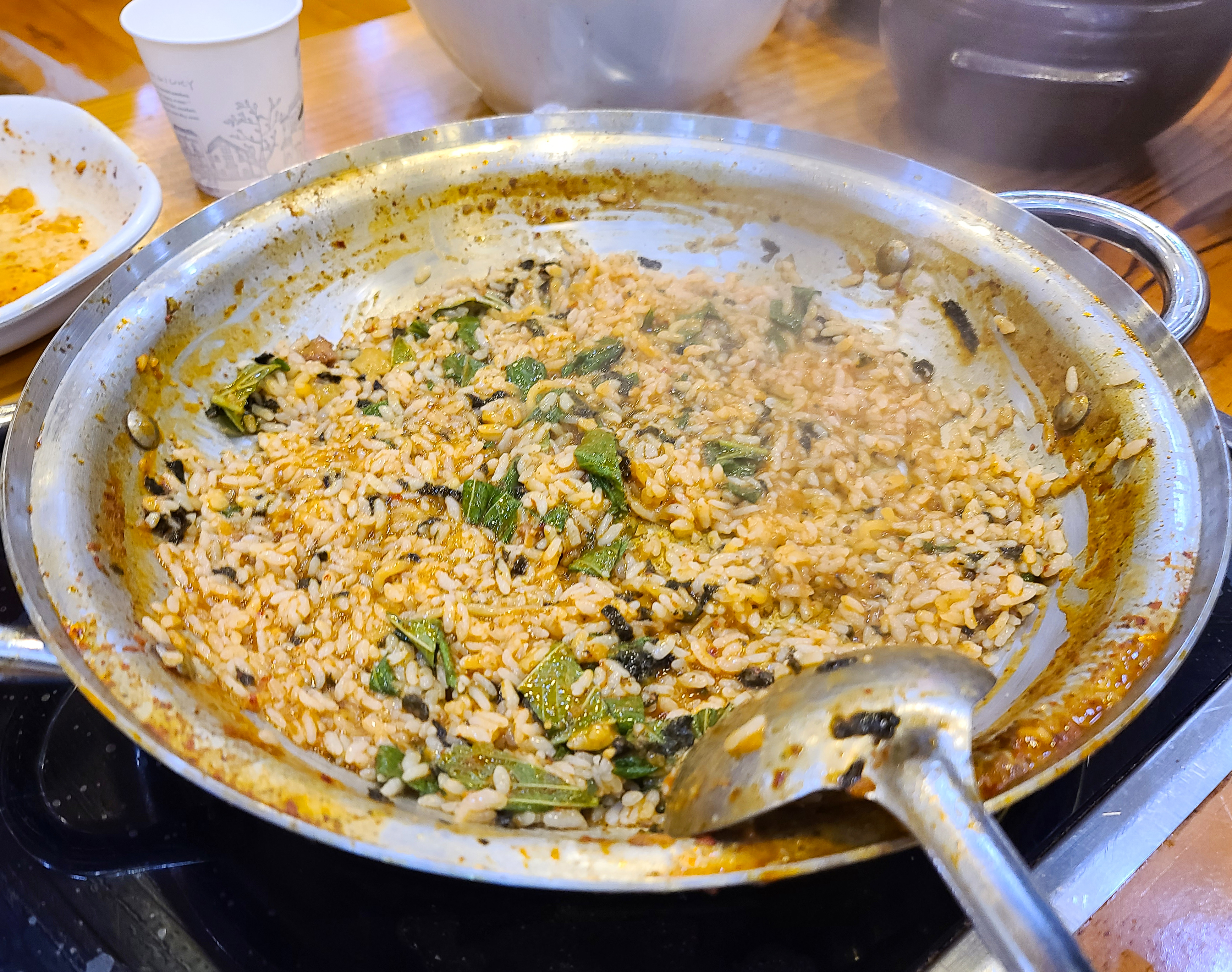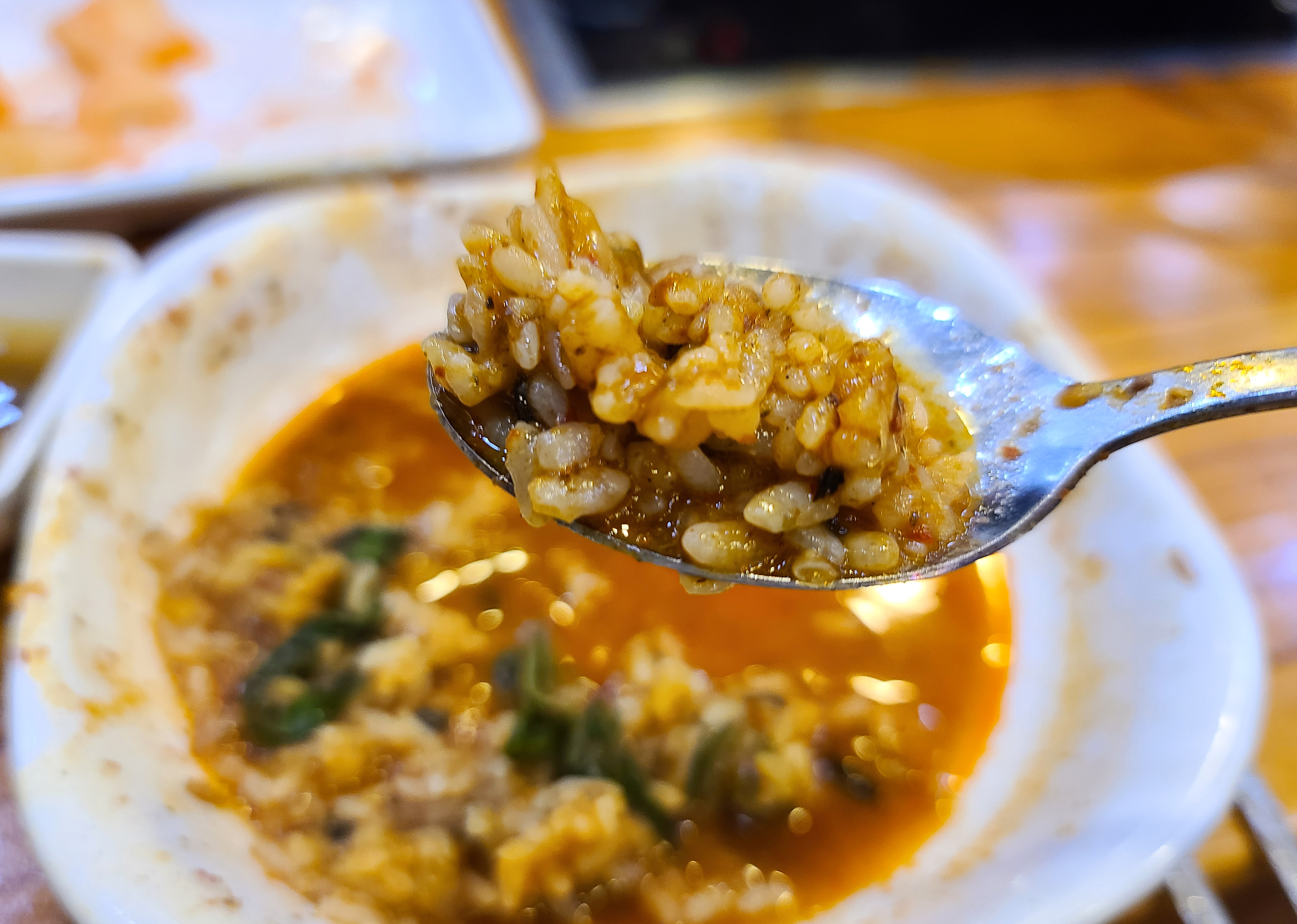 감자탕 전골을 먹다가 남은 국물에 라면사리도 추가해서 먹고, 밥도 볶아서 먹었습니다. 저는 개인적으로 라면보다는 밥을 더 선호해서 볶음밥을 더 많이 먹었던 것 같습니다. 볶음밥은 별다른 재료는 없었고, 깻잎과 김가루로 맛을 낸 볶음밥이었는데 맛있는 감자탕도 먹고 볶음밥까지 볶아서 먹으니 배가 꽤 불러오더라고요. 크고 널찍한 가게와 합리적 가격에 맛있는 감자탕을 먹을 수 있었던 김포 '하남정' 맛집으로 추천드립니다.