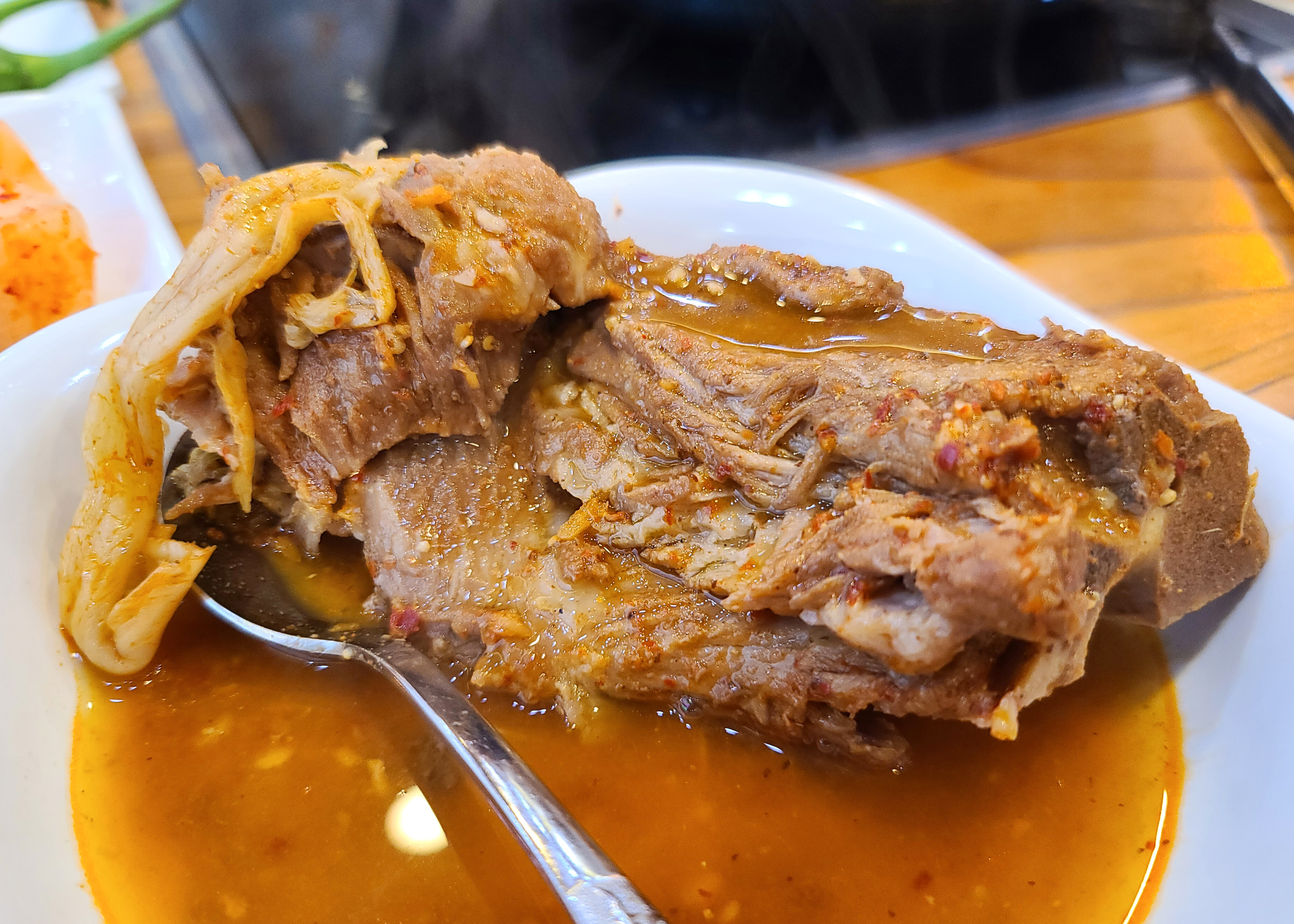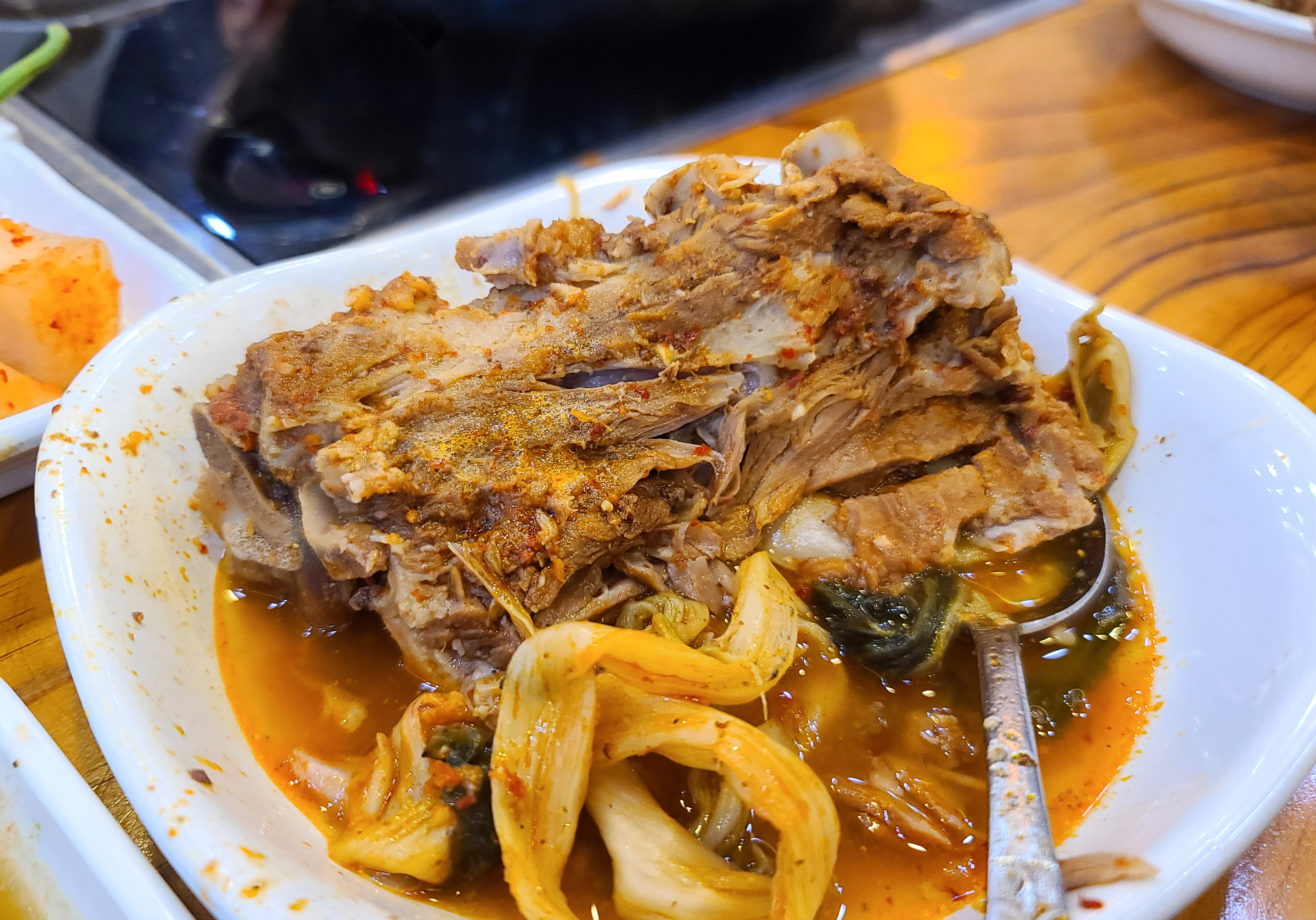 제가 먹은 감자탕 뼈의 모습입니다. 자잘하고 먹기 불편한 부위가 아니라 대부분 큼직큼직하고 살코기가 많이 붙어있는 먹기 편한 부위로 제공되었습니다.