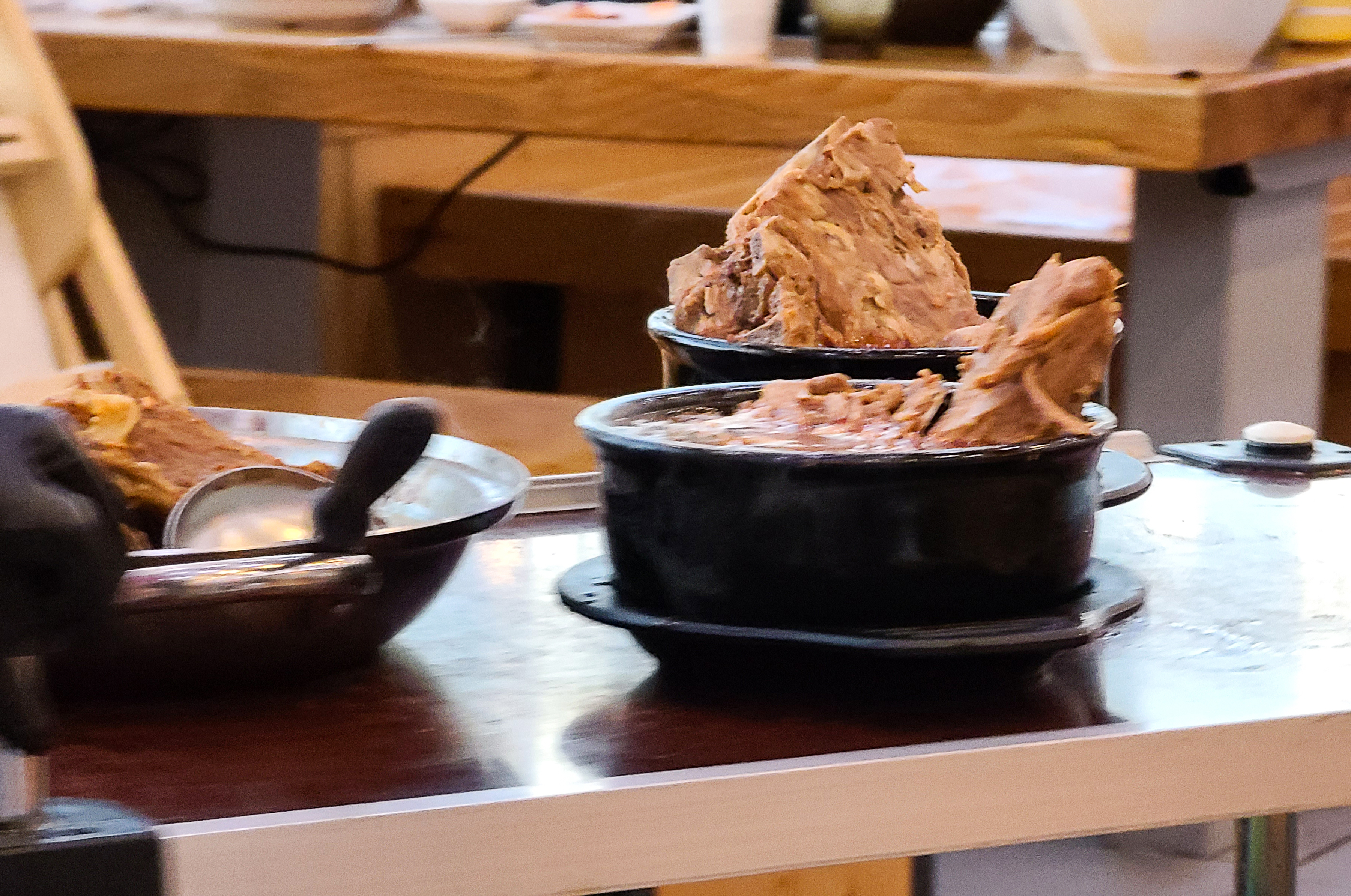 감자탕 맛집답게 대부분의 손님들은 감자탕이나 뼈해장국을 주문했고, 다른 손님이 주문한 뼈해장국을 얼핏 살펴보니 고기의 크기가 꽤 실하게 들어있는 것을 확인할 수 있었습니다. 물론 저희가 주문한 감자탕도 꽤나 큰 고기들이 들어있는 모습을 볼 수 있었습니다.