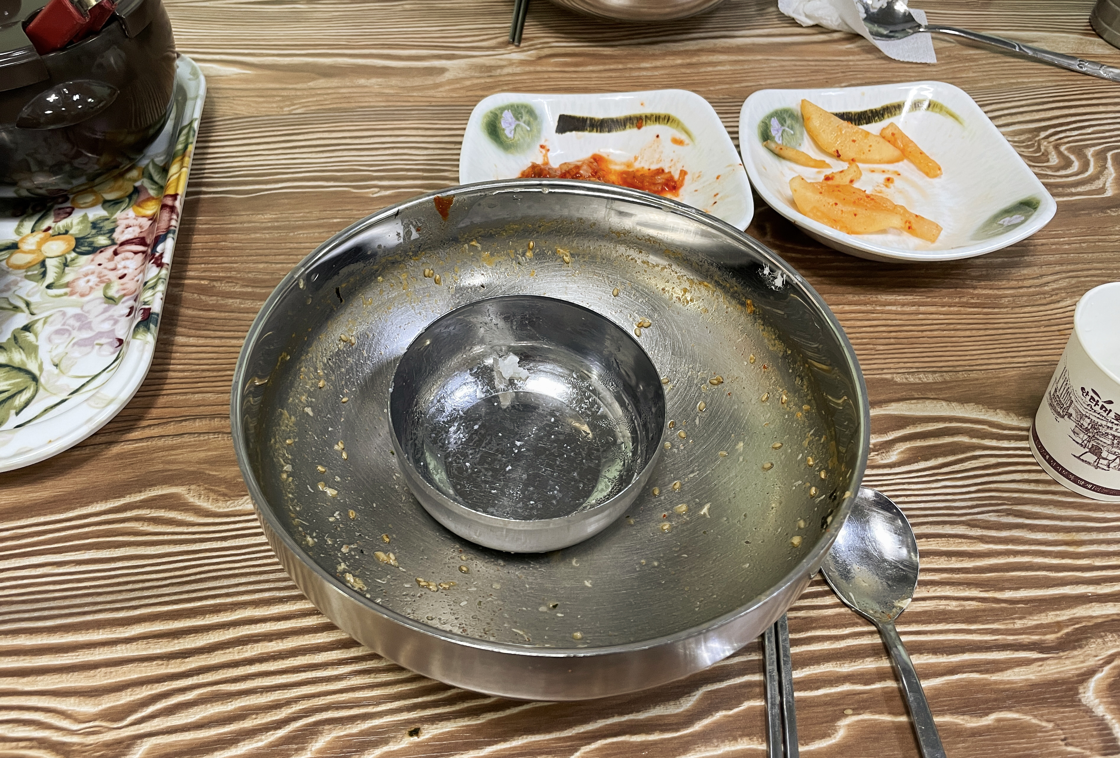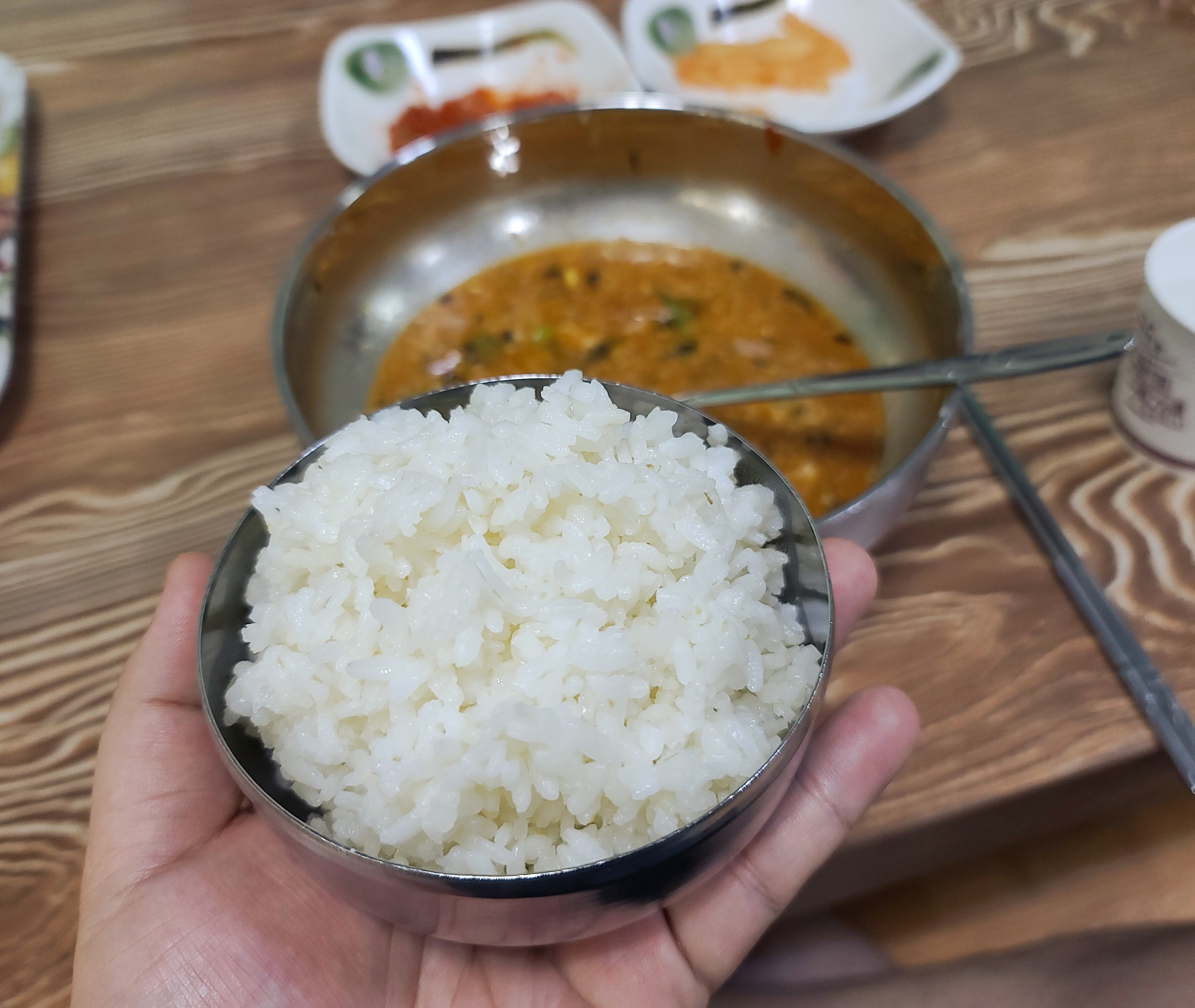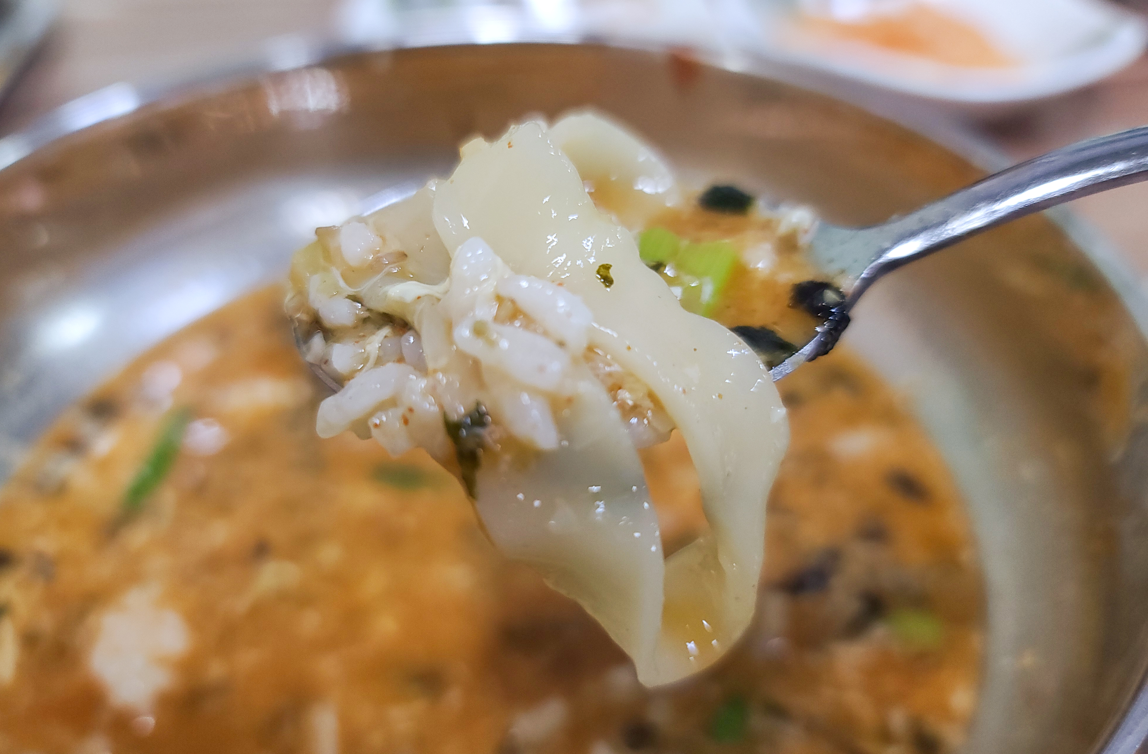 칼국수를 먹다가 국물이 맛있어서 밥도 주문해서 지인과 반씩 나눠서 밥을 말아서 먹었습니다. 남은 칼국수 국물에 밥을 말아서 먹으니 든든하고 배부르게 식사할 수 있었습니다.