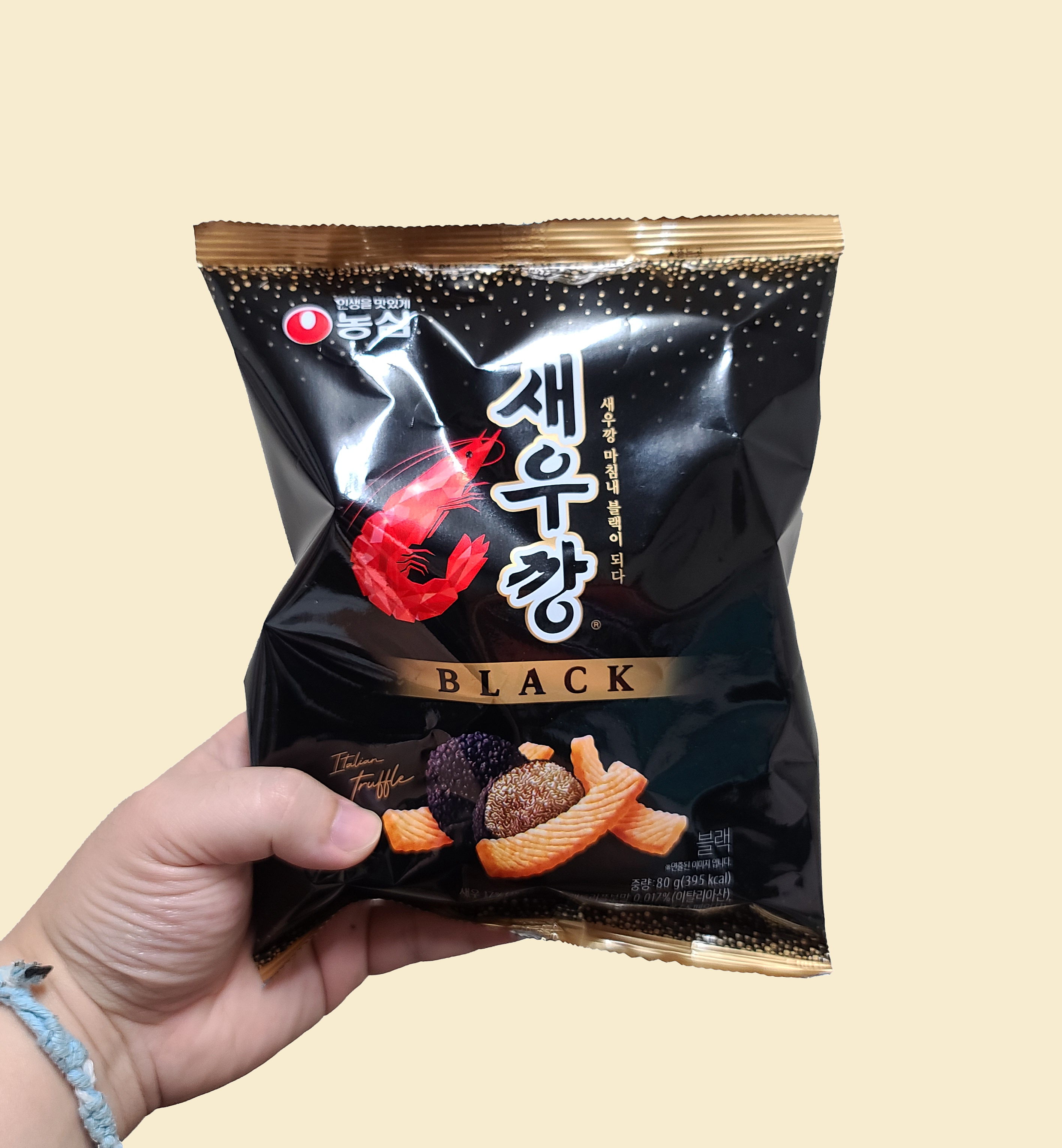 농심 새우깡 블랙의 모습은 이렇습니다. 여러 블로그나 소셜 미디어를 통해 알게 된 바와 같이 트러플의 향이 진하게 느껴졌고, 새우깡 과자의 넓이가 넓어진 것 같더라고요. 새우깡 블랙의 향은 집에서 사용하고 있는 트러플 오일의 향과 비슷했습니다. 그럼 이제 맛도 살펴볼까요?