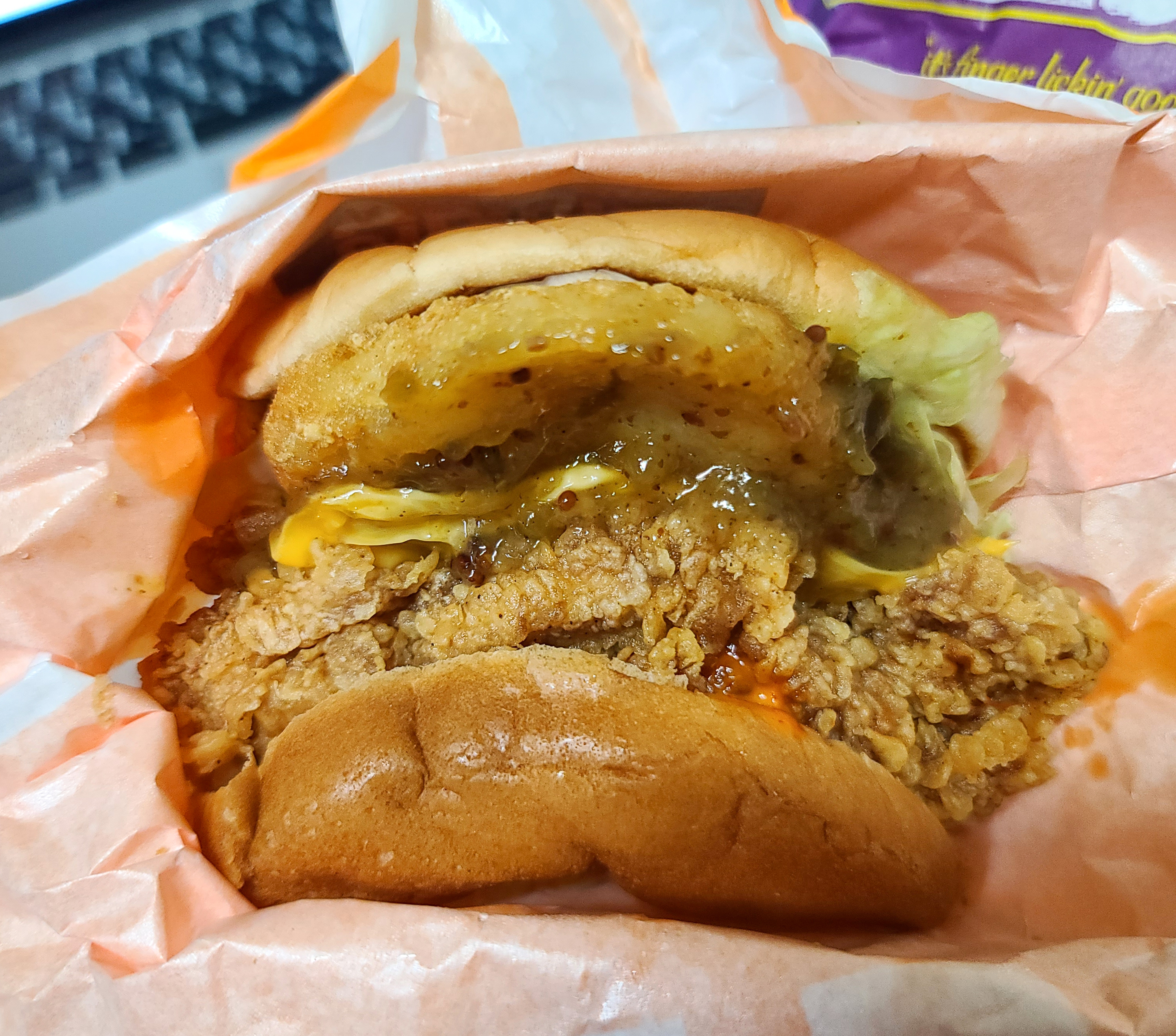 KFC 커넬 고스트헌터버거는 일단 징거버거와는 달리 각종 소스와 부드러운 닭다리살 패티가 포함되어 더 맛있었던 것 같습니다. 갈릭할라피뇨랠리시 소스와 고스트페퍼, 해시브라운이 들어가 양도 많고 나름 매콤해서 맛있었습니다. 다음에 또 나온다면 구입의사가 있는 제품이었습니다.(ㅋㅋ)
