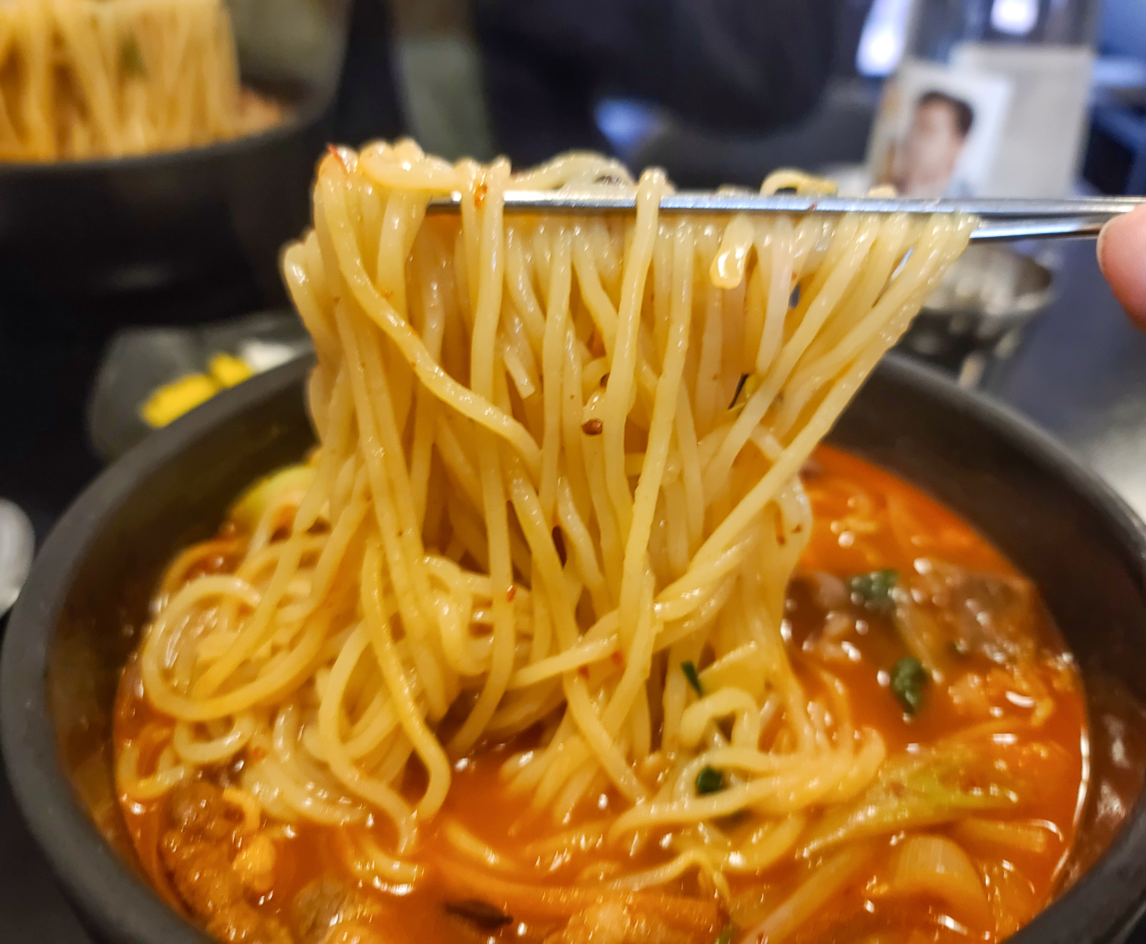 제가 느꼈을 땐 차돌짬뽕은 불맛을 인위적으로 내지 않고, 자연스러운 불맛을 만들어서 그런지 불맛이 강렬하지는 않고 부드러웠습니다. 앞서 설명드린 것처럼 면에 별도의 첨가제를 넣지 않아서 약간 퍼진듯한 식감이 있었습니다. 색은 선명한 붉은색이었는데 보기보다는 맵지 않았습니다.