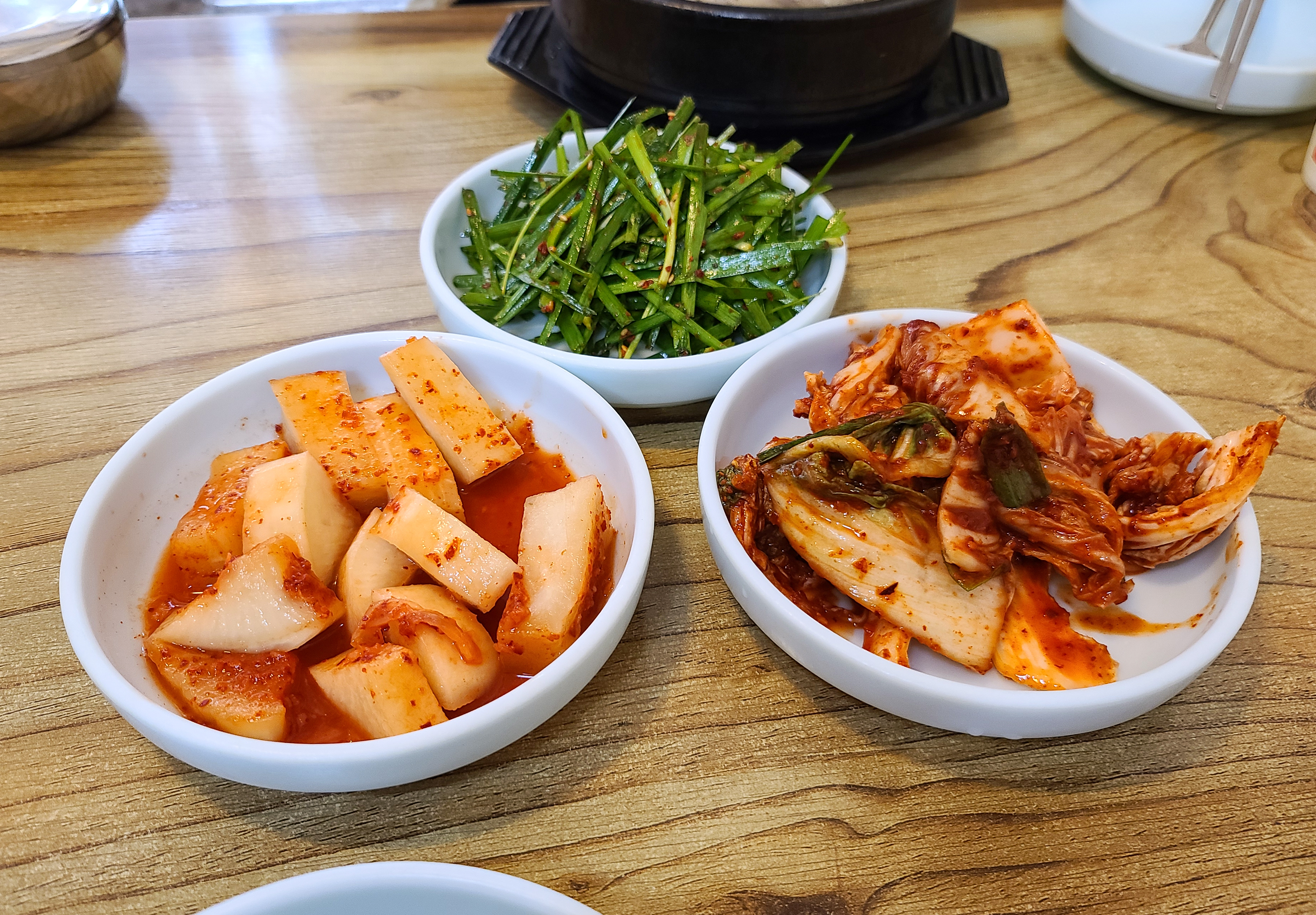 그래도 가게의 인기를 실감한 것은 확실히 재료가 소진되어 판매를 못하는데도, 계속 손님이 대기하고 영업 중인지 물어보셨다는 점입니다. 다행히 저는 간발의 차이로 식사를 할 수 있었고, 봉천동의 가성비 갈비탕 맛집에서 드디어 식사를 하게 되었습니다. 육안으로 봤을 때 갈비탕은 따로 특별한 점은 못 느꼈고, 부추무침과 깍두기, 배추김치가 반찬으로 함께 제공되었습니다. 김치는 매일같이 담그시는지 가게 입구에 배추가 여러 박스 쌓여있더라고요.