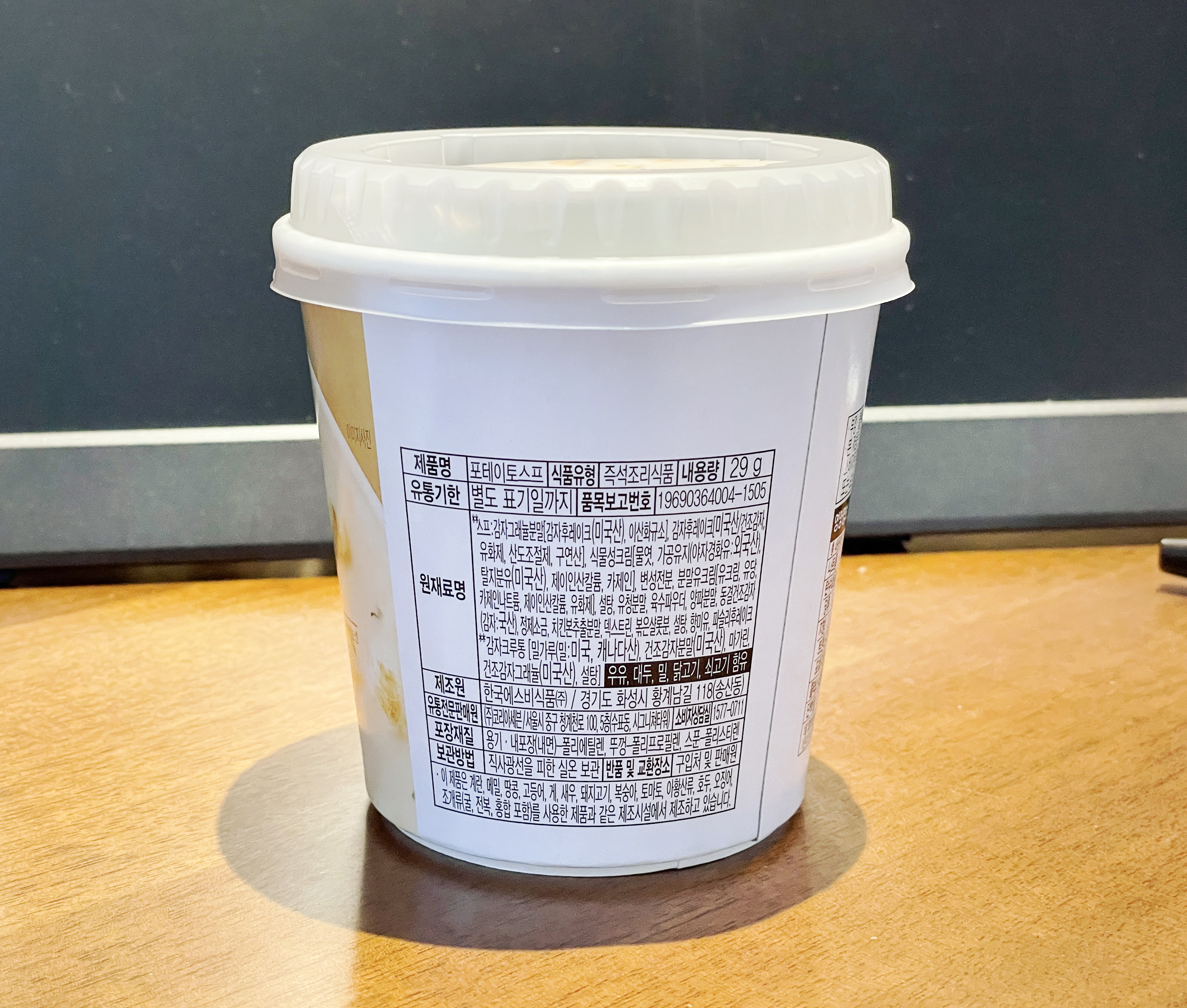 세븐일레븐 포테이토스프는 요즘같이 영하권으로 떨어지는 추운 날씨에 먹기 좋은 메뉴로 조리하기 간편하기도 하고, 한 끼 식사대용으로 손색없는 메뉴였습니다. 내용물 29g 에 열량은 110kcal 였고, 한국에스비식품 이라는 곳에서 만든다고 합니다.