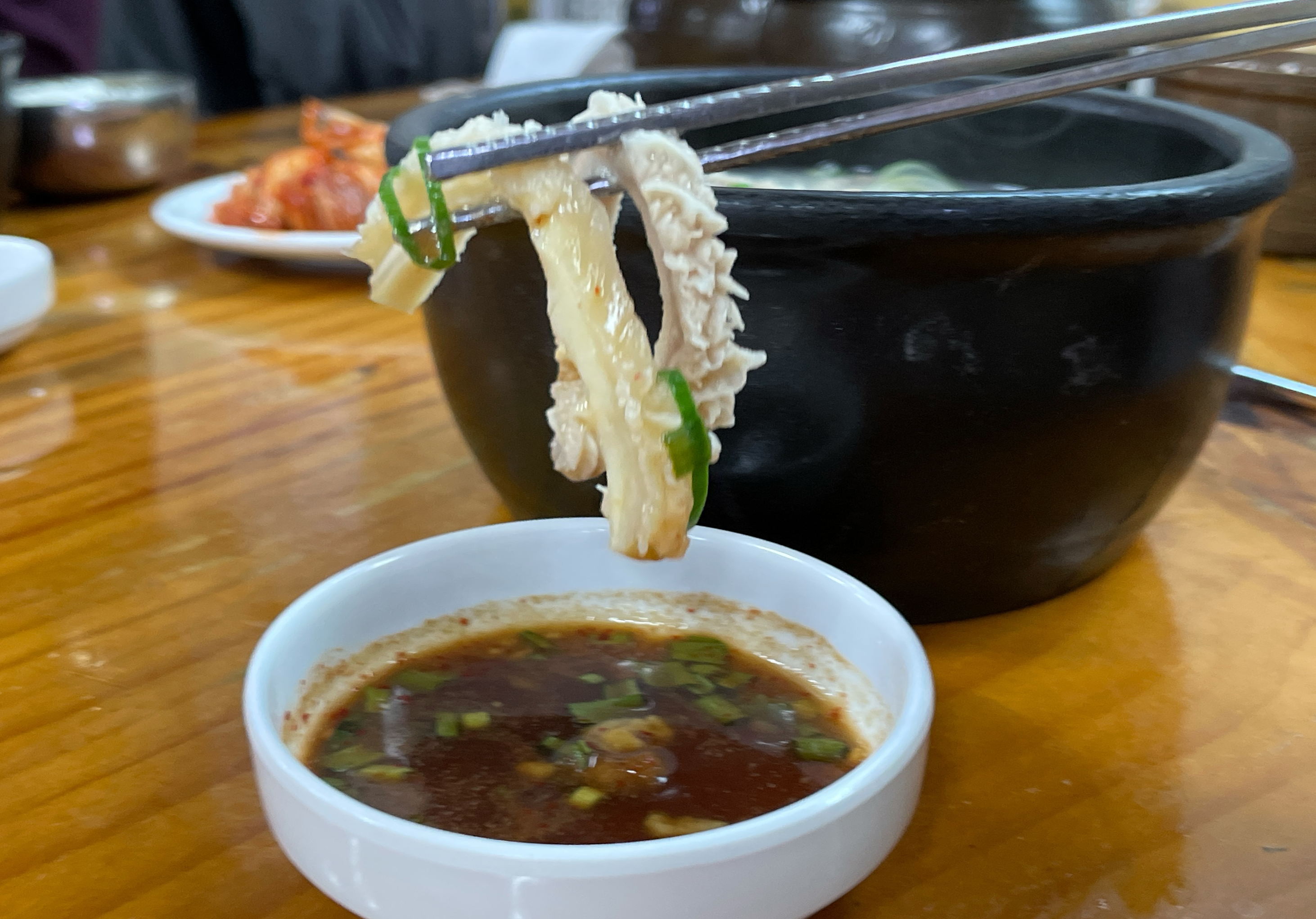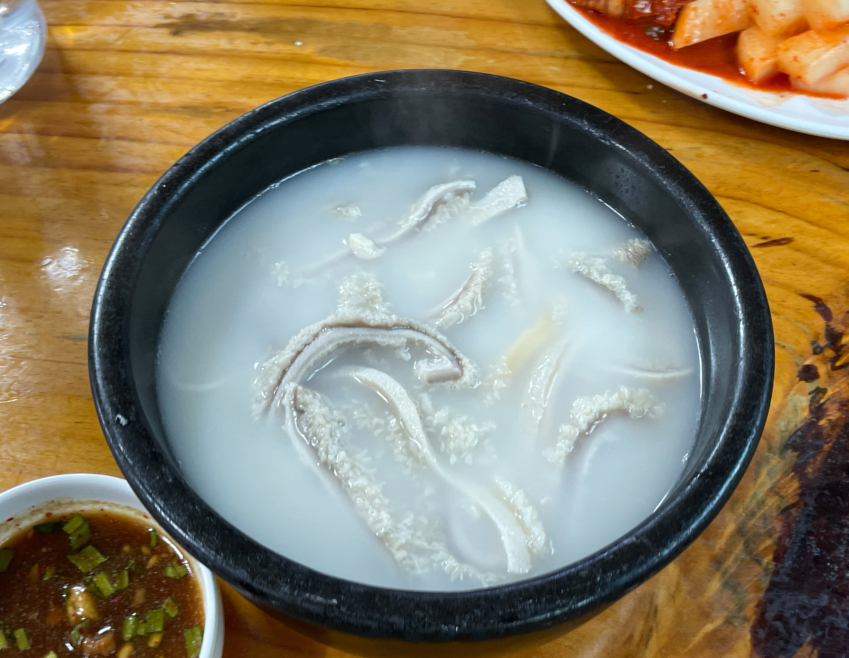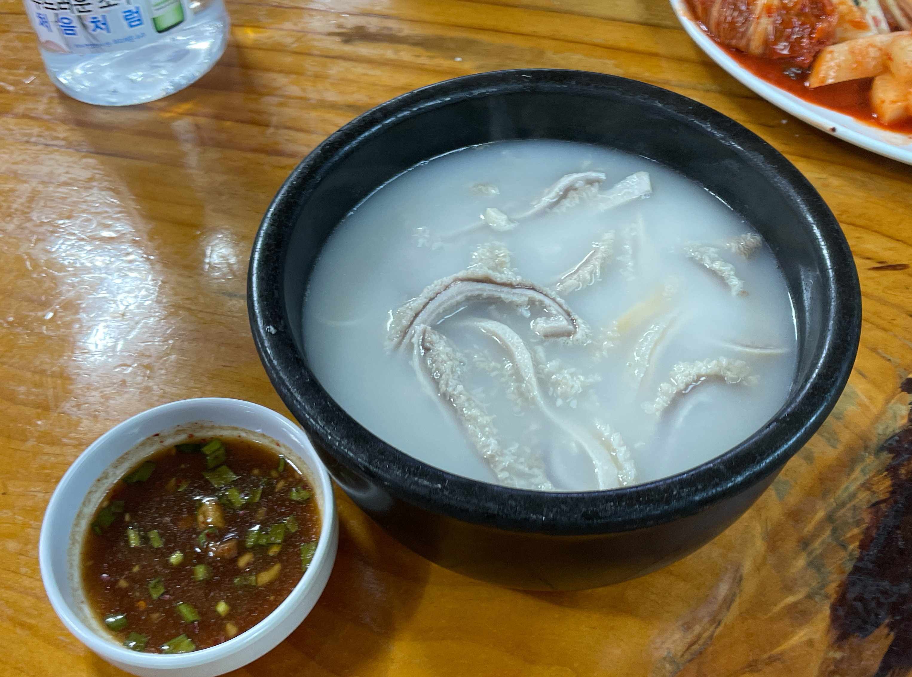 저는 파를 설렁탕에 넣어주었고, 소면과 함께 소 양을 건져내어 같이 제공된 소스에 찍어서 먹었습니다. 야들야들하면서 쫄깃한 식감의 소의 양은 본가설렁탕의 가장 큰 매력인 것 같습니다.