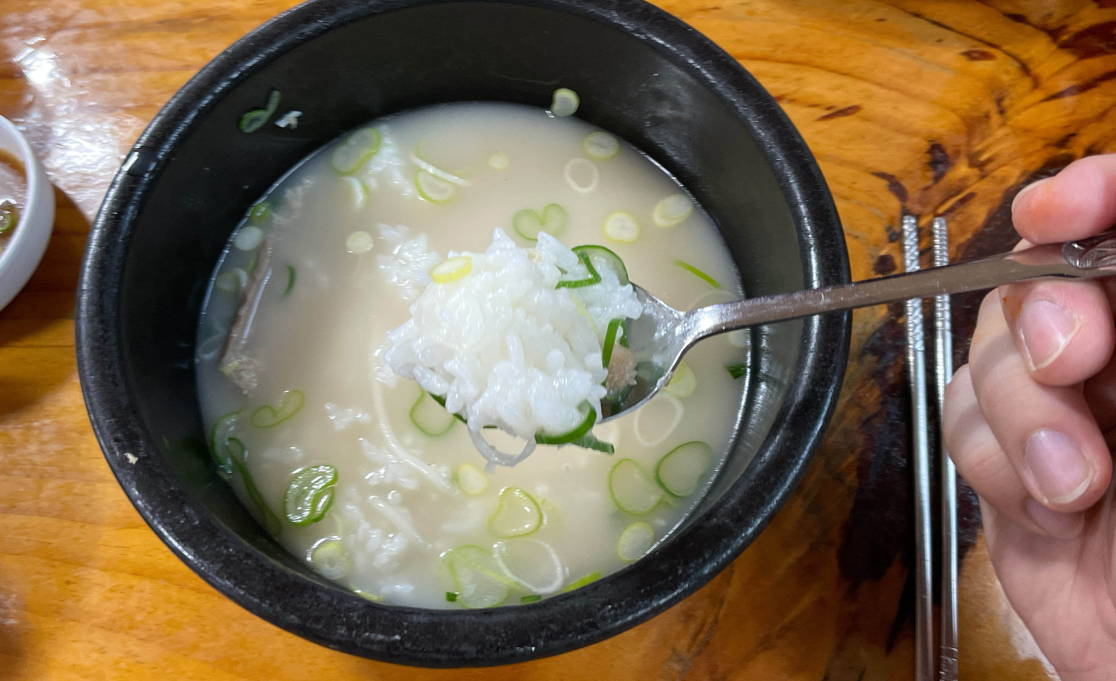 저는 원래 국물에 밥을 잘 말아먹지 않지만, 요즘 블로그에 더 맛있어(?) 보이기 위해서 밥을 말아먹는 사진도 찍기 위해 일부러 밥을 덜어내어 먹는 모습도 찍게 되더라고요. 결론은 본가설렁탕은 밥을 말아먹어도, 따로 먹어도 맛있는 것 같습니다. 하지만 미리 밥을 말아서 먹으면 밥이랑 내용물들이 뒤엉켜 먹기 불편하더라고요. 건더기를 어느 정도 먹은 다음 밥을 말아서 드시는 것을 추천드립니다.(ㅋㅋ)
