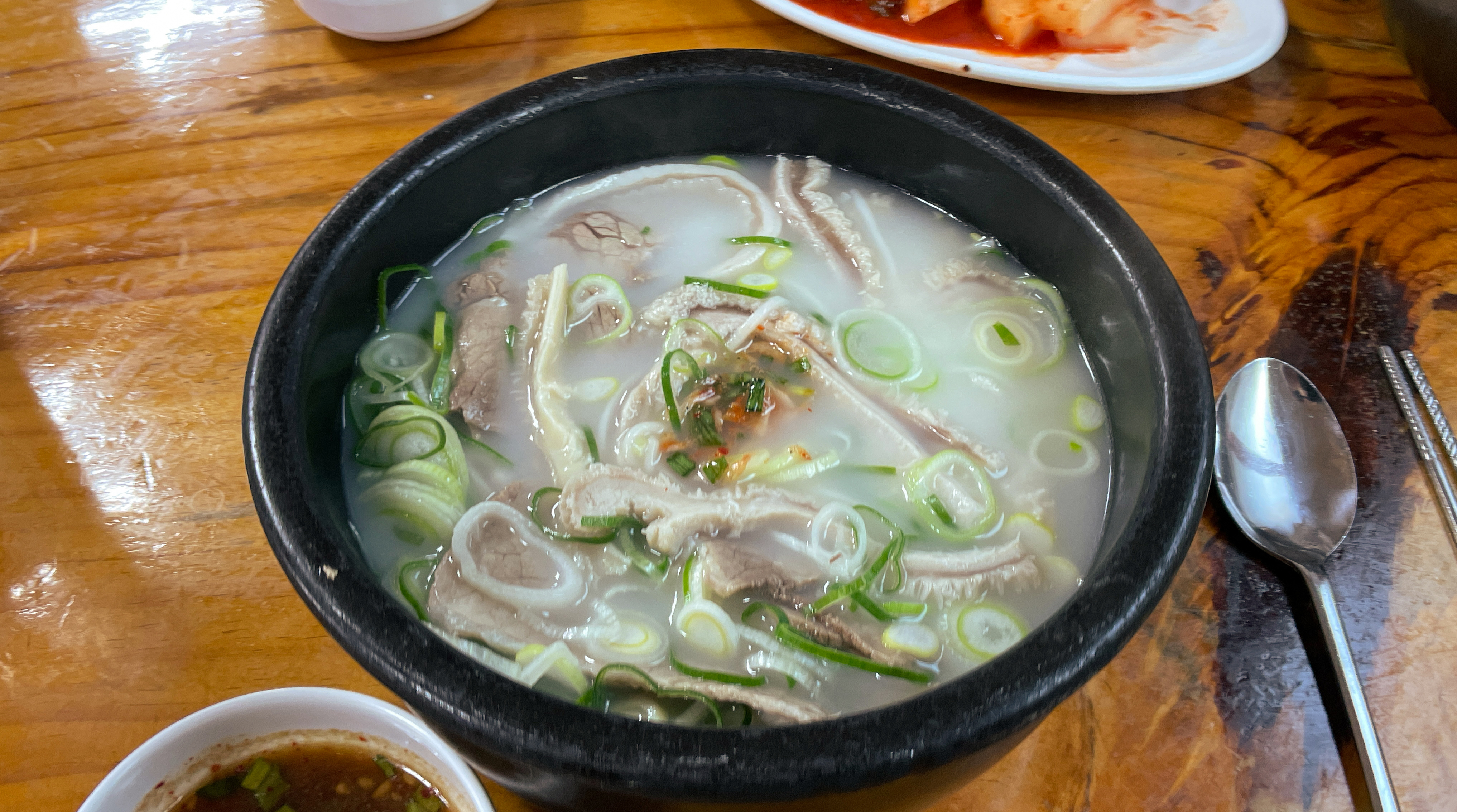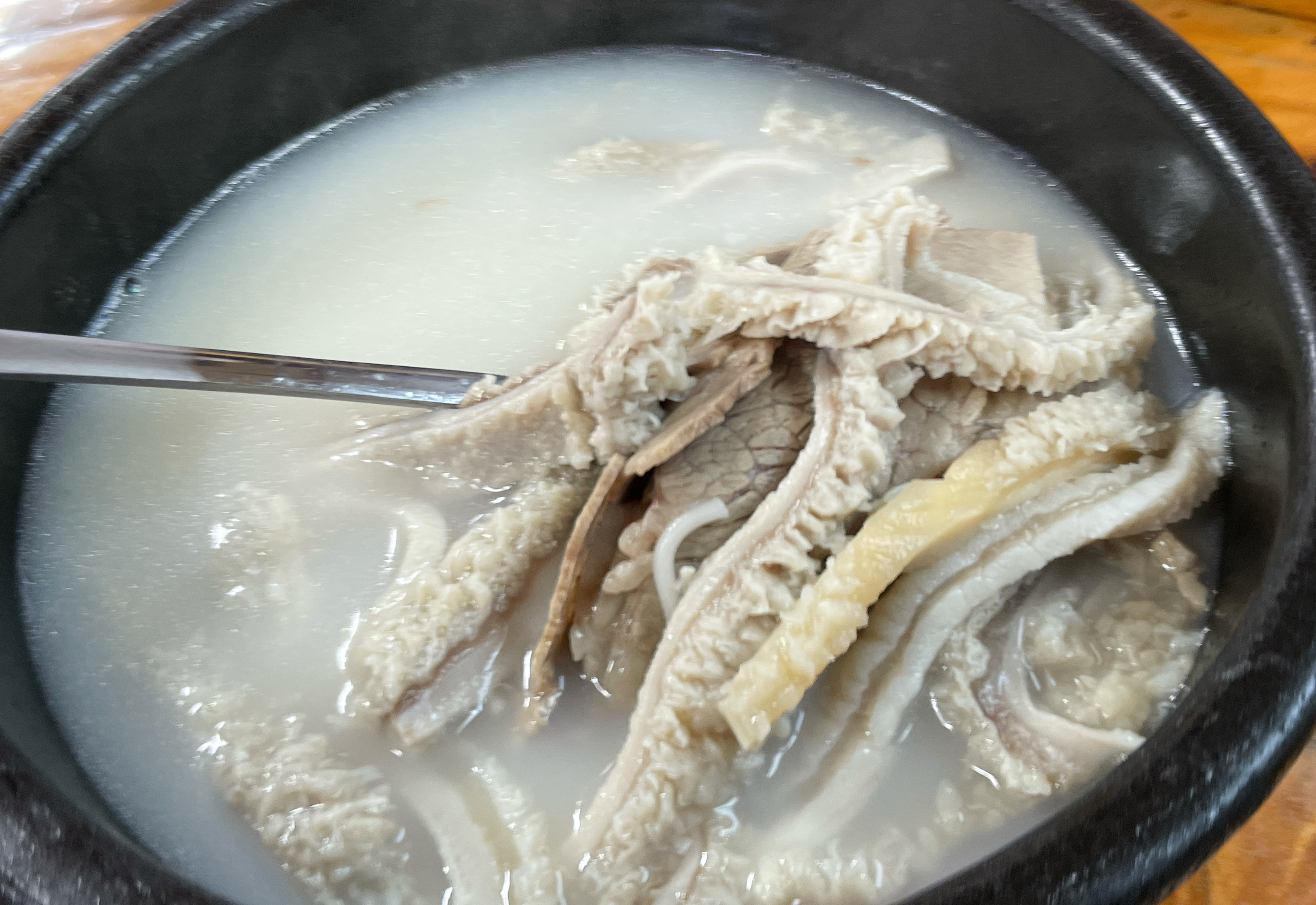 본가탕의 모습은 이렇습니다. 쫄깃한 식감의 소의 양이 양지고기와 함께 들어있는 모습을 볼 수 있었고, 부드럽고 구수한 국물이 먹기 좋았습니다. 기호에 따라서 새우젓, 소금, 파와 김치 등을 곁들여 먹을 수 있었습니다.