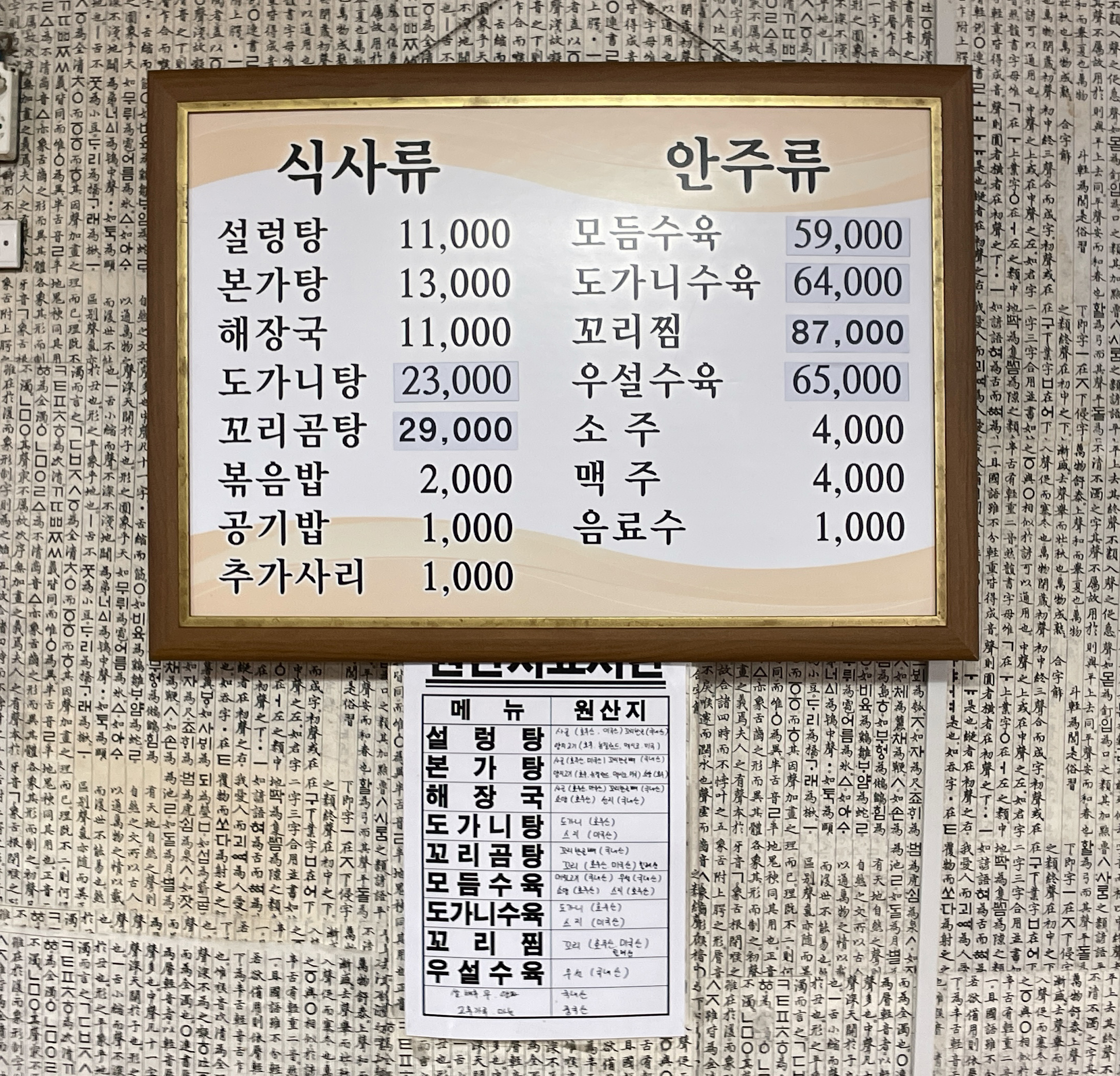 본가설렁탕의 메뉴는 설렁탕, 본가탕, 해장국, 도가니탕, 꼬리곰탕, 모듬수육, 도가니수육, 꼬리찜, 우설수육 등이 있었습니다. 저는 항상 소의 양이 들어있는 본가탕을 먹는 편이고, 기본적인 설렁탕은 소의 양이 빠진 양지고기가 들어간 설렁탕이라 보시면 됩니다.