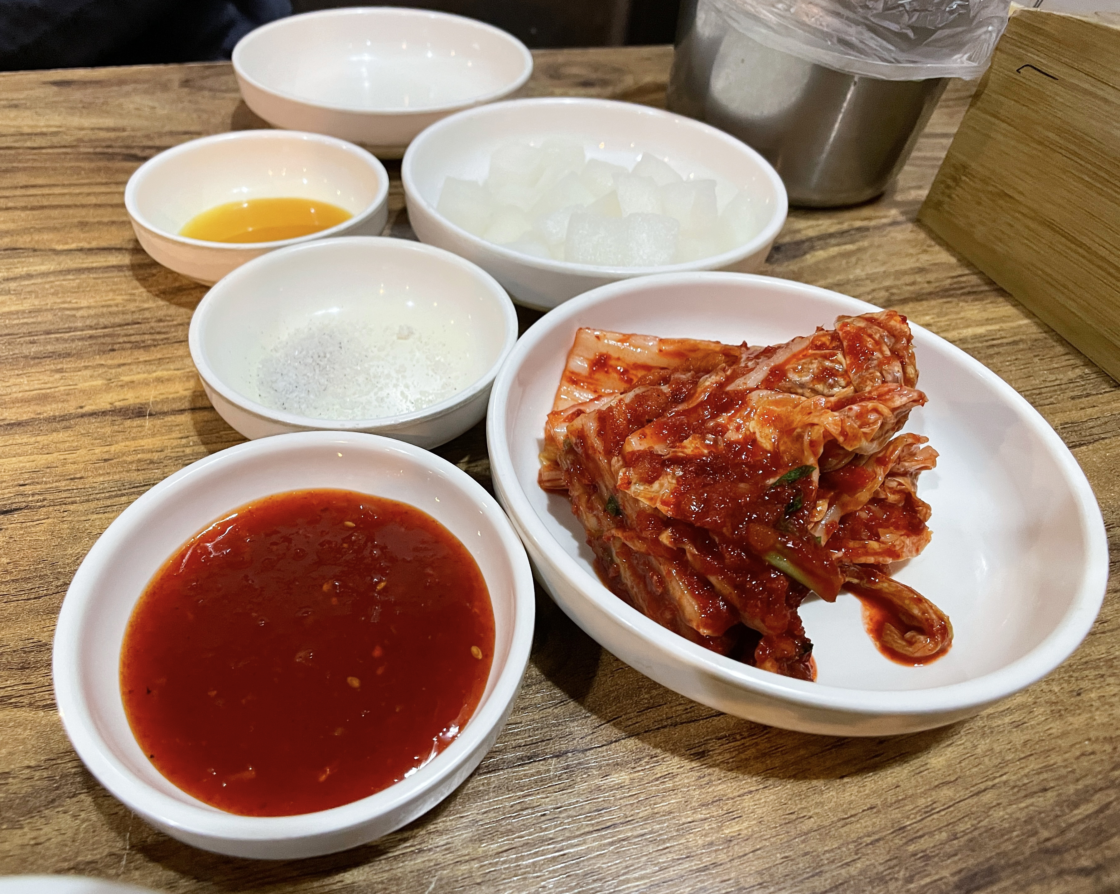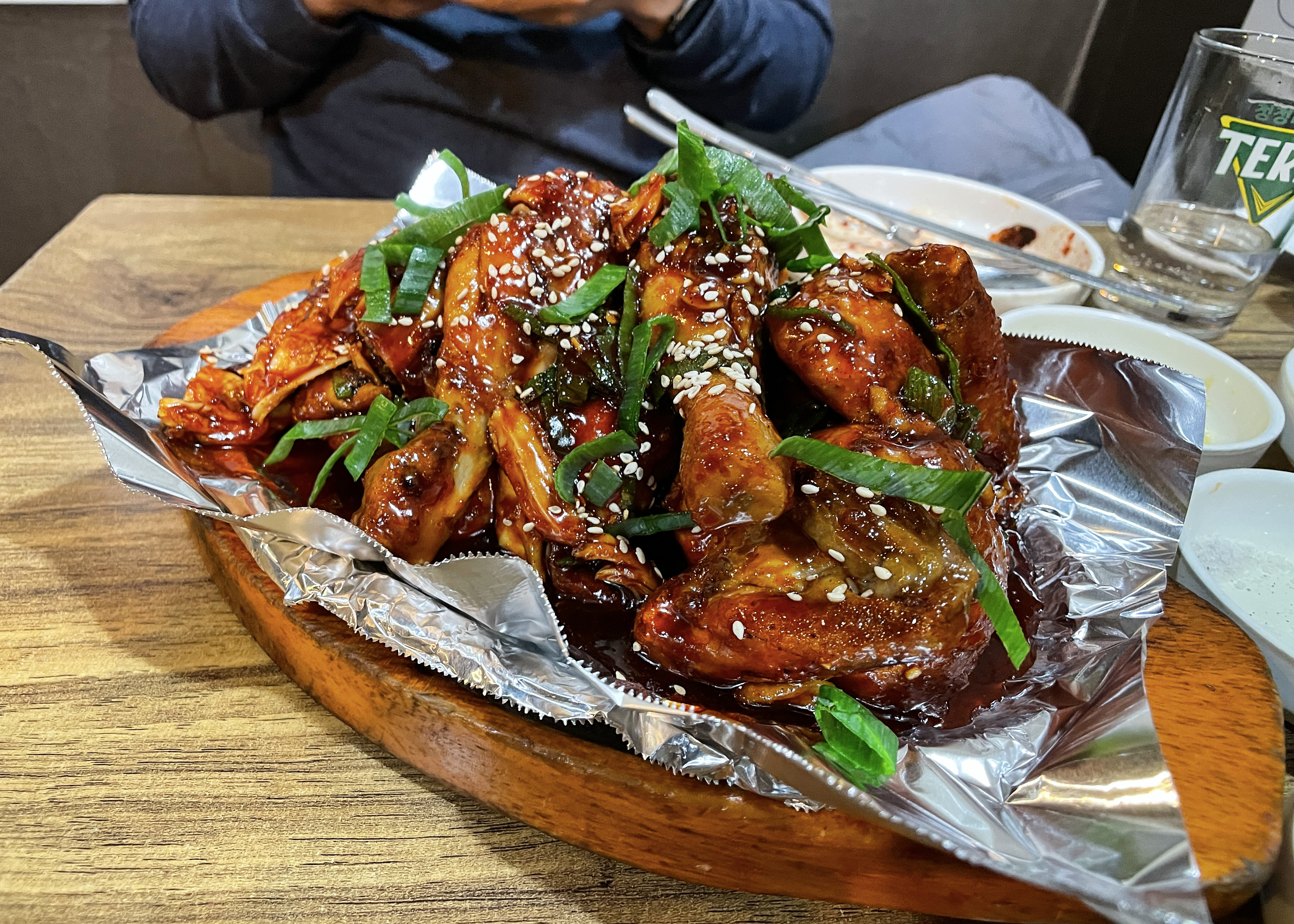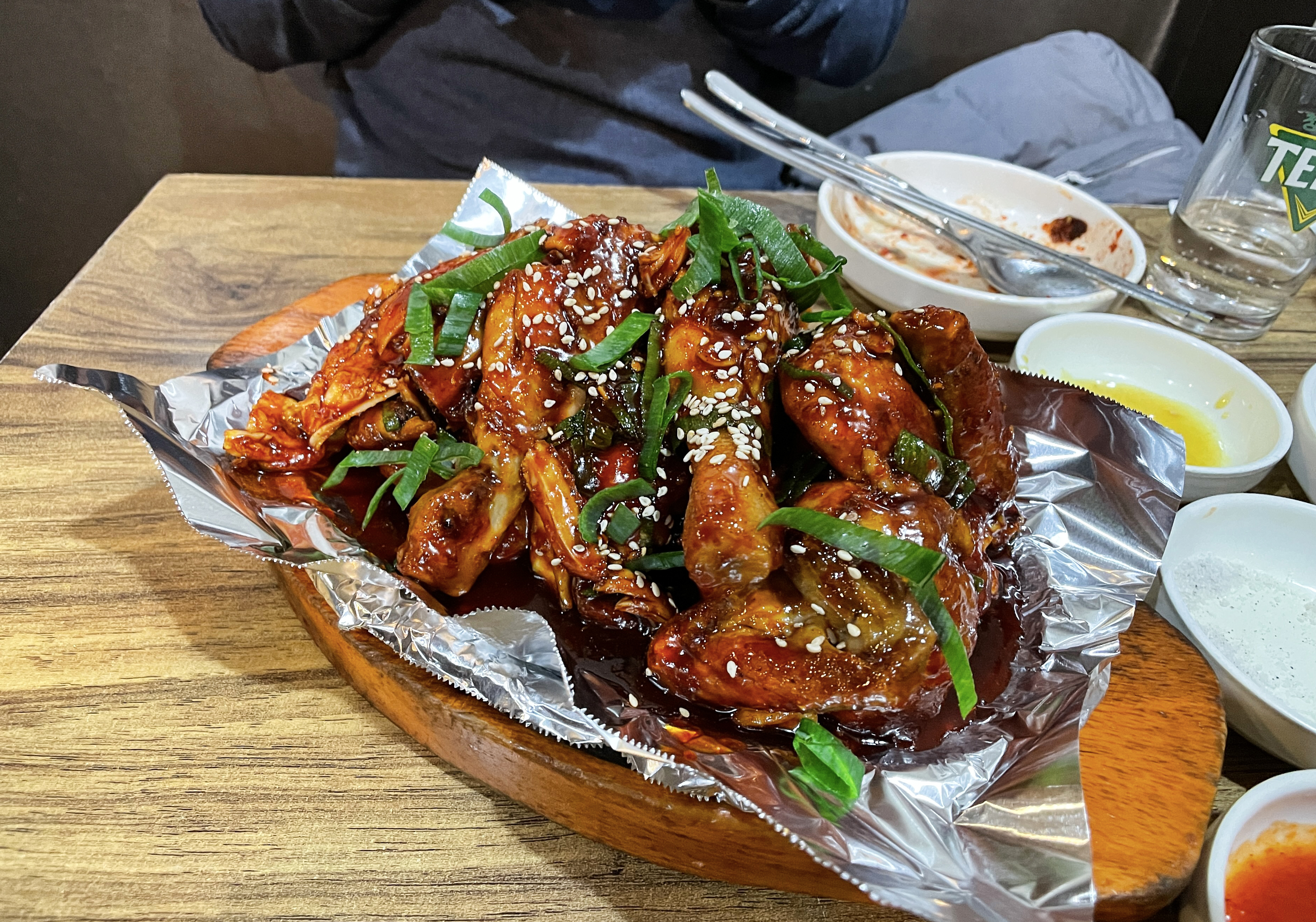 한남동 한방통닭의 크기는 2명이서 먹기에는 조금 적은 듯했고, 1인 1닭 하면 양이 조금 남는 수준이었습니다. 그냥 먹어도 쫀쫀한 식감에 맛있었지만, 배추김치와 같이 곁들이면 느끼함도 줄여주고 맛있게 먹을 수 있었습니다.