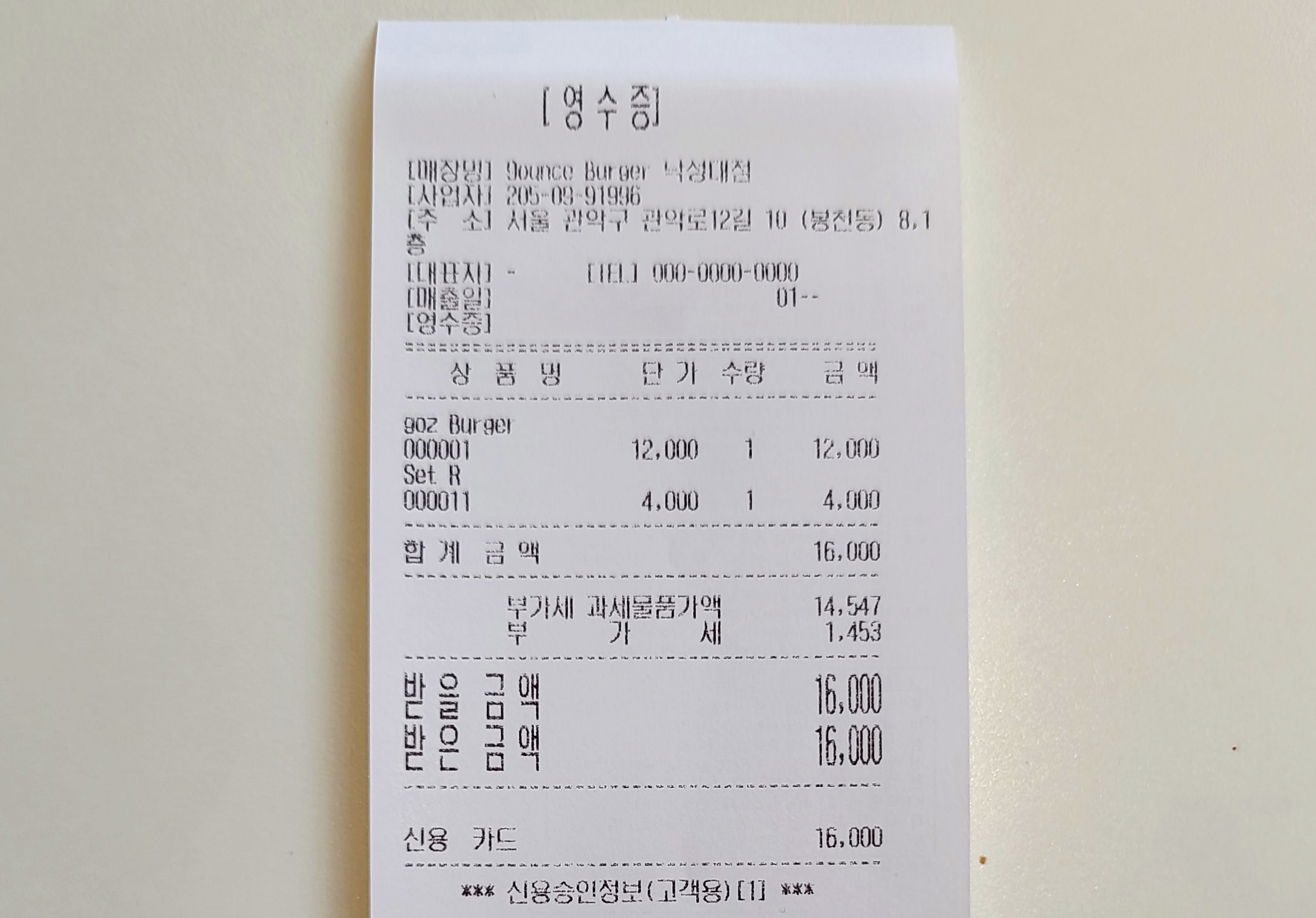 식사를 마치고 계산을 하려는데, 사탕과 초콜릿이 담겨있는 통이 보이더라고요. 가져가도 되는건지 물어보니 "많이 가져가셔도 된다" 고 해서, 초콜릿과 사탕을 골랐습니다. 나인온스버거에서 식사한 총비용은 9온스버거와 세트구성을 포함 16,000원이 나왔습니다. 샤로수길 수제버거 맛집 나인온스버거의 가격이 저렴한 편은 아니지만, 한번쯤 먹어볼만 한 것 같습니다. 다음에 이용한다면 치즈가 잔뜩 올라간 포시즌버거를 도전해보고 싶네요.(ㅋㅋ)
