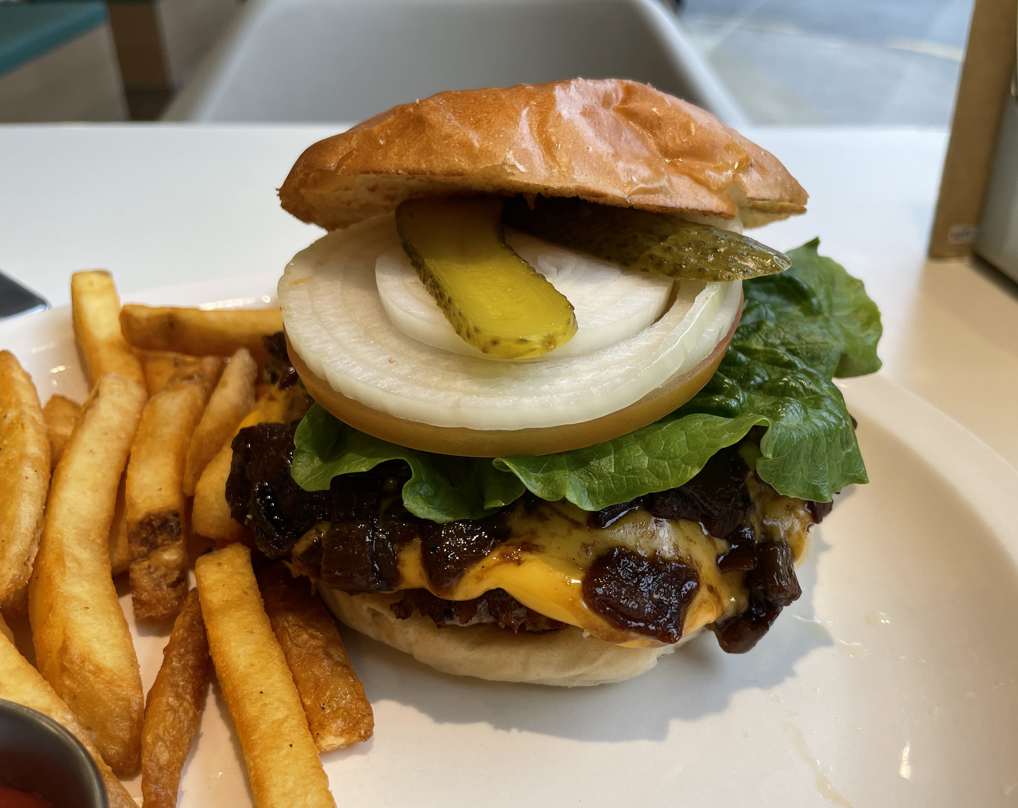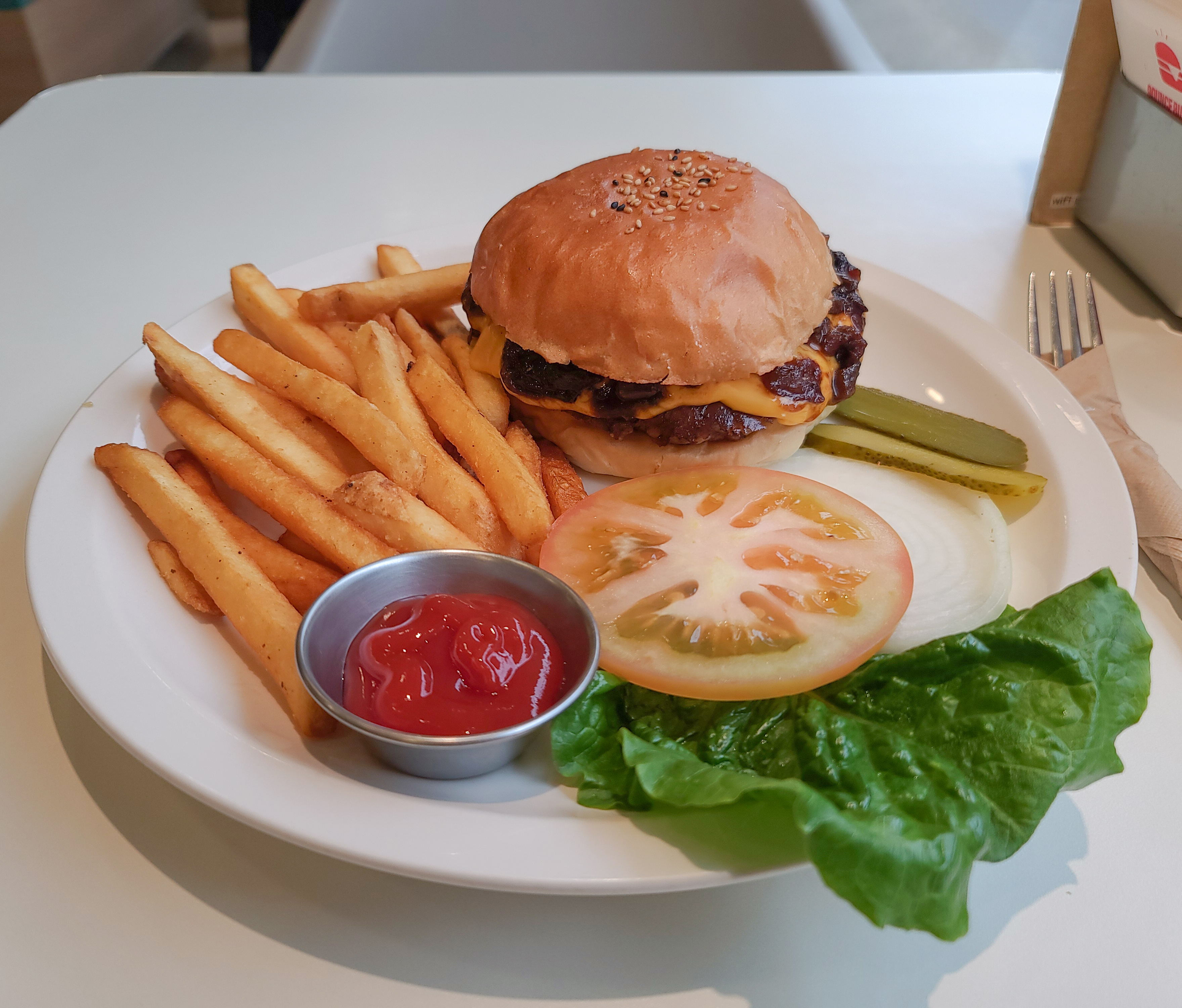 그래도 카라멜라이즈드 한 양파가 들어가서 부드러운 느낌이 있었고, 소고기 패티 위 치즈가 잘 녹아들어 고소한 맛이 있었습니다. 감자튀김은 웨지와 레귤러를 고를 수 있었는데, 저는 레귤러가 더 바삭하고 먹기 편해서 레귤러 감자튀김을 선택했습니다.