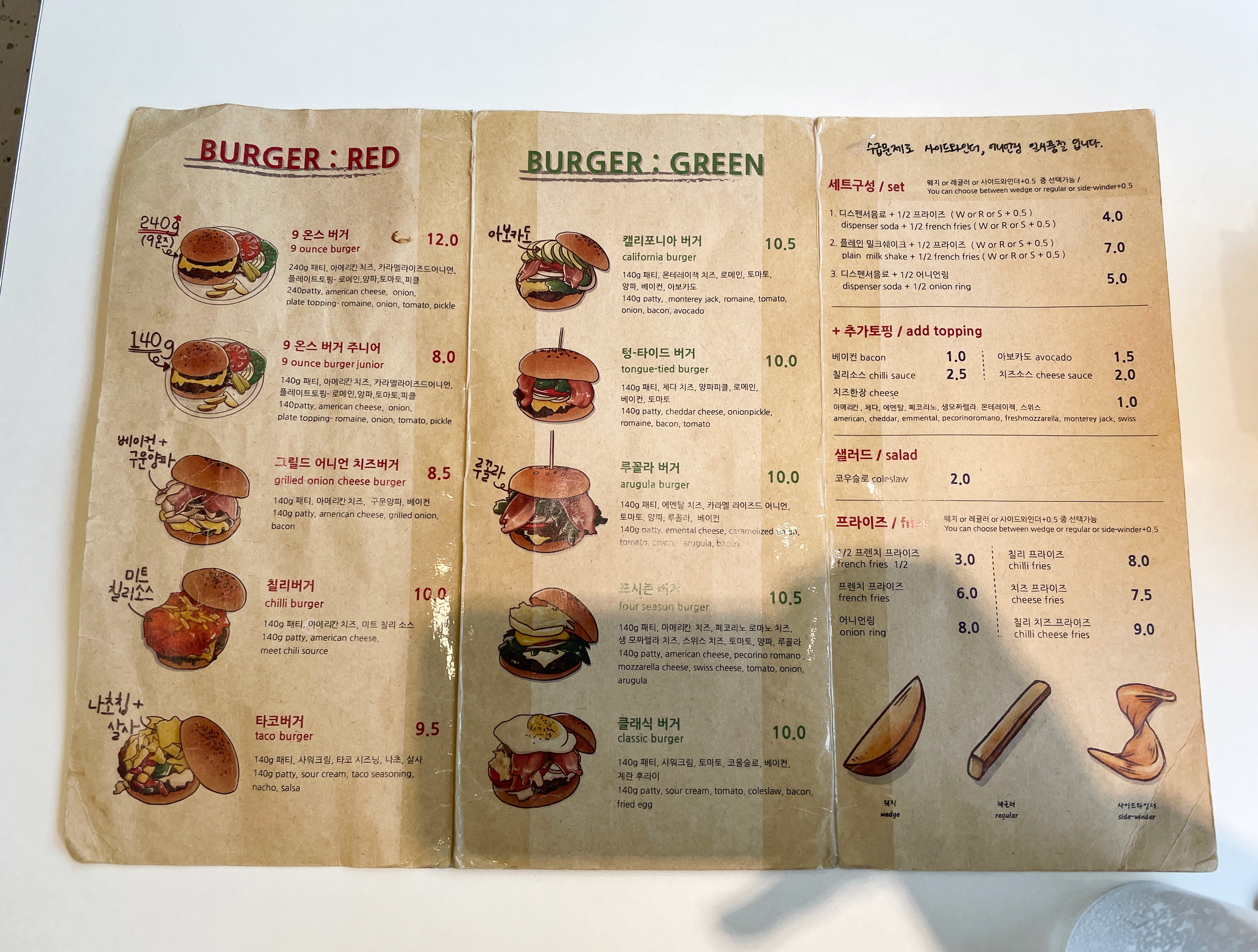 아무튼 8.47oz 무게의 패티가 들어간 수제버거는 고기와 구운양파, 치즈를 뺀 채소들을 직접 기호에 맞게 추가해서 먹을 수 있어서 좋았습니다. 오이를 좋아하지 않는 분은 피클을 제외하고 토핑해서 먹을수도 있고, 양파나 토마토도 기호에 맞게 넣고 뺄 수 있어서 좋았습니다.